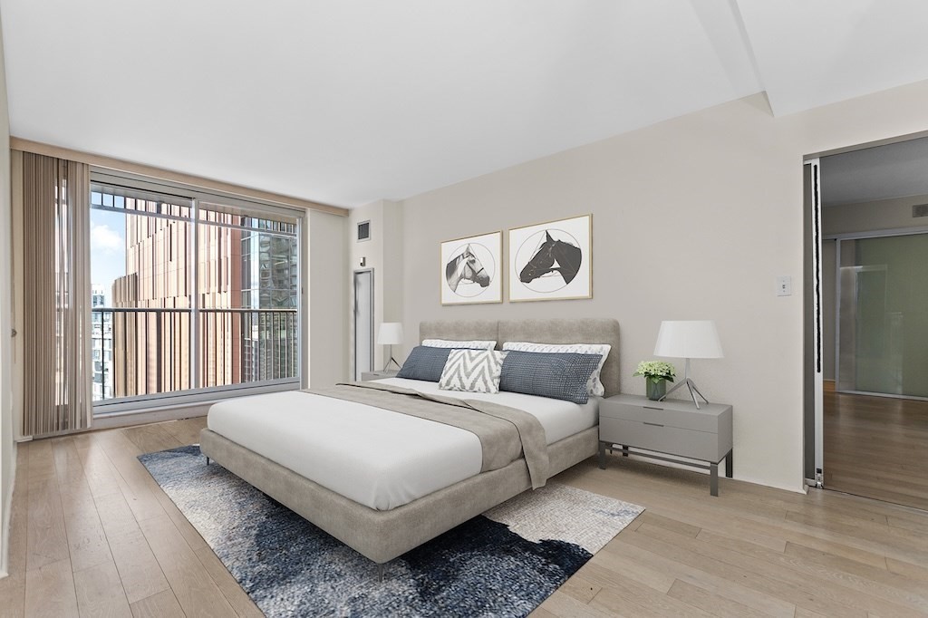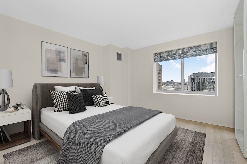 Stunning Two Bed, Two Bath Condo with Double Balcony! Beautifully designed residence featuring wood floors and floor-to-ceiling sliding glass doors in living room and master bedroom. Custom designed kitchen with cabinetry, granite countertops, and a built-in wine refrigerator. Abundant storage space in this unit. Bathrooms have Porcelanosa fixtures and heated tile floors for ultimate comfort. Ideal for investors or end users alike, this unit includes one valet parking space.. Unit is virtually staged. Building amenities include 24/7 concierge and valet parking,on-site property management,gym with lap pool and hot tub,movie room, gathering and event room, complimentary shuttle service, laundry dryclean pick up and drop off. Beautiful North Point Park in front of the building. Whole Foods close by. Steps to Charles River and Cambridge Crossing!
