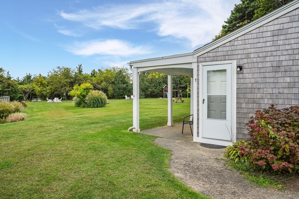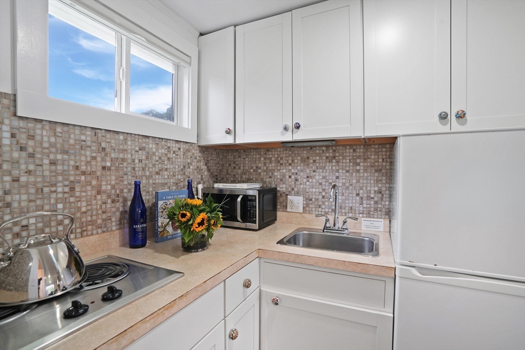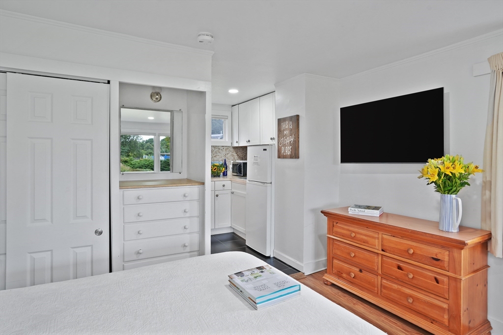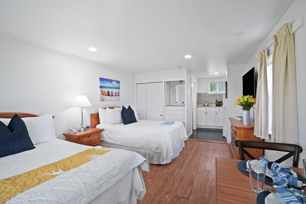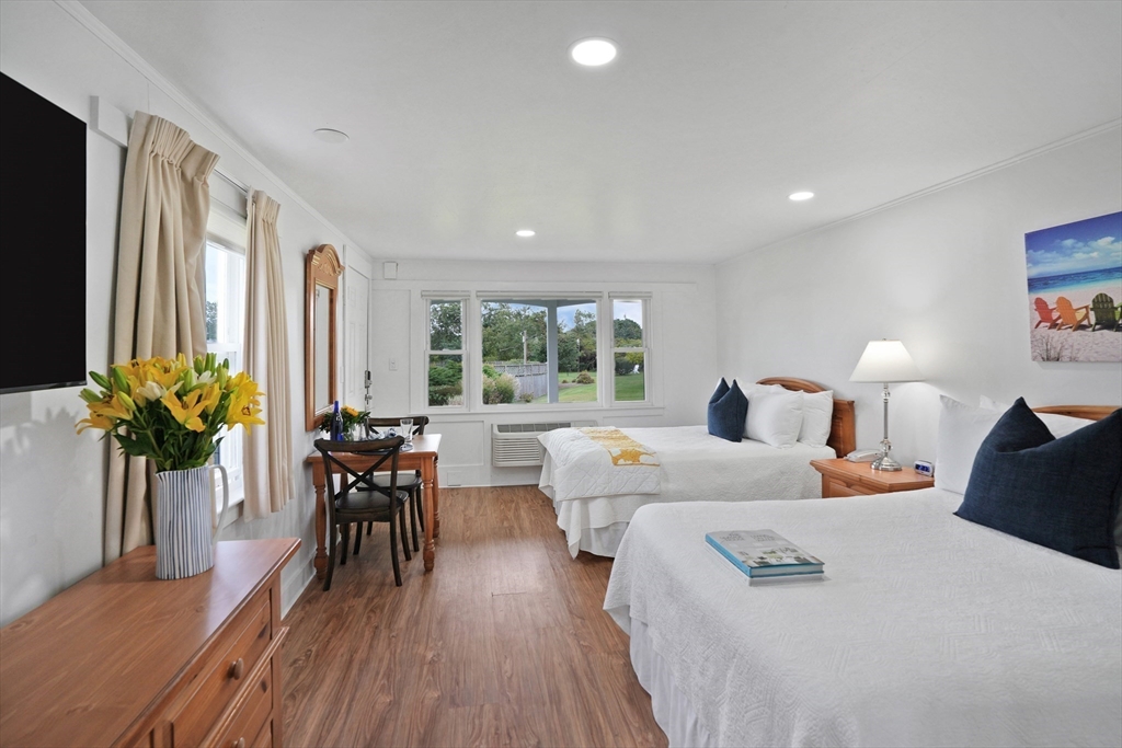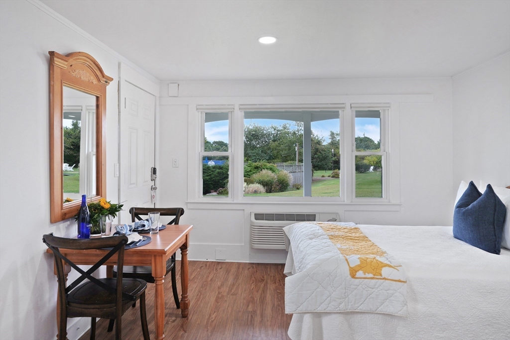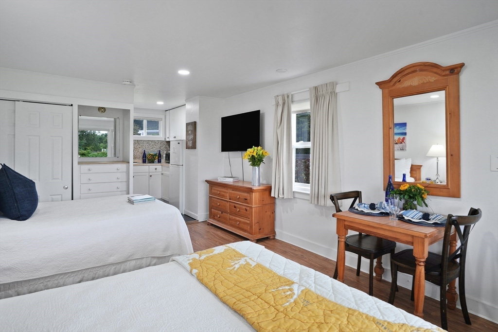 Turnkey Coastal Retreat at Island Inn! Welcome to a thoughtfully maintained studio condo nestled in one of Oak Bluffs’ most convenient and scenic settings. This cozy end unit offers effortless Vineyard living with a light-filled interior, a practical layout, and easy access to all the essentials of a beachside lifestyle. Step inside to find vinyl plank flooring in the bedroom, tile flooring in the bath and kitchen, and a covered porch overlooking beautifully landscaped common grounds. The compact kitchen includes a two-burner electric cooktop, refrigerator, and stock cabinetry—perfect for vacation stays or seasonal living. The Island Inn community is rich in amenities, offering a swimming pool, tennis courts, and meeting rooms, all just minutes from the public beach, Noman’s Restaurant, and Farm Neck Golf Course. With a lawn and pool view, shared green space, and open gravel lot parking, this unit offers comfort, convenience, and charm.