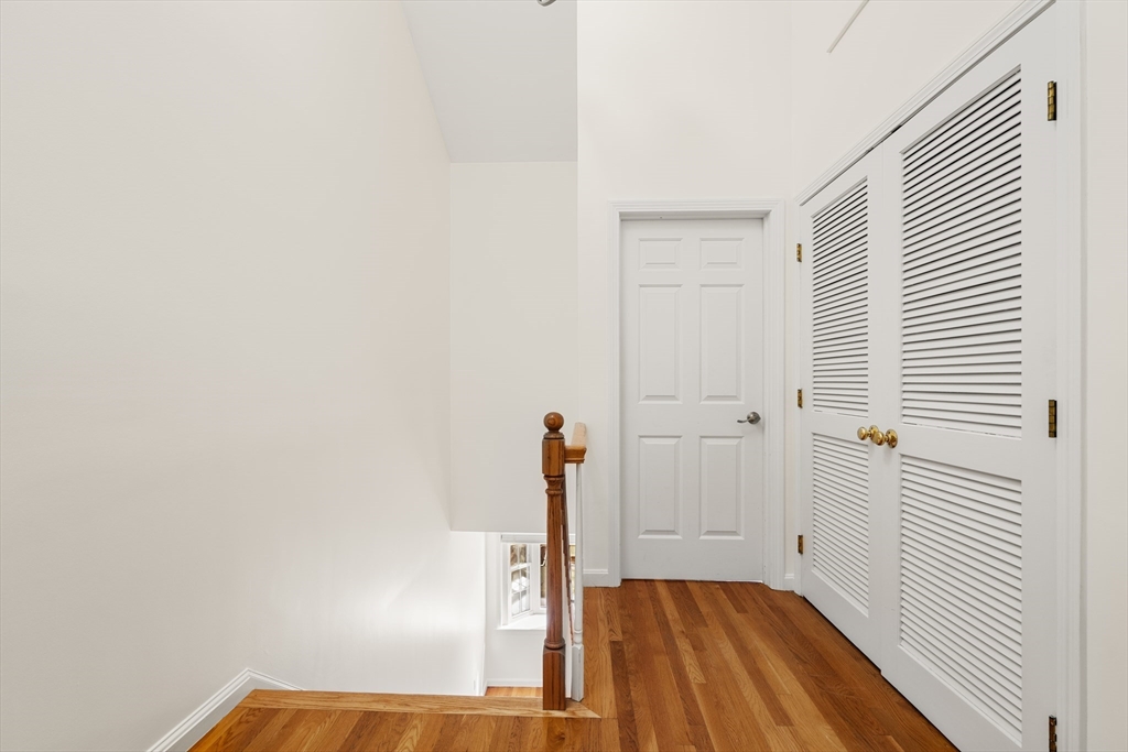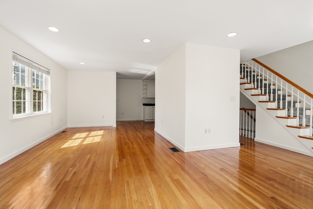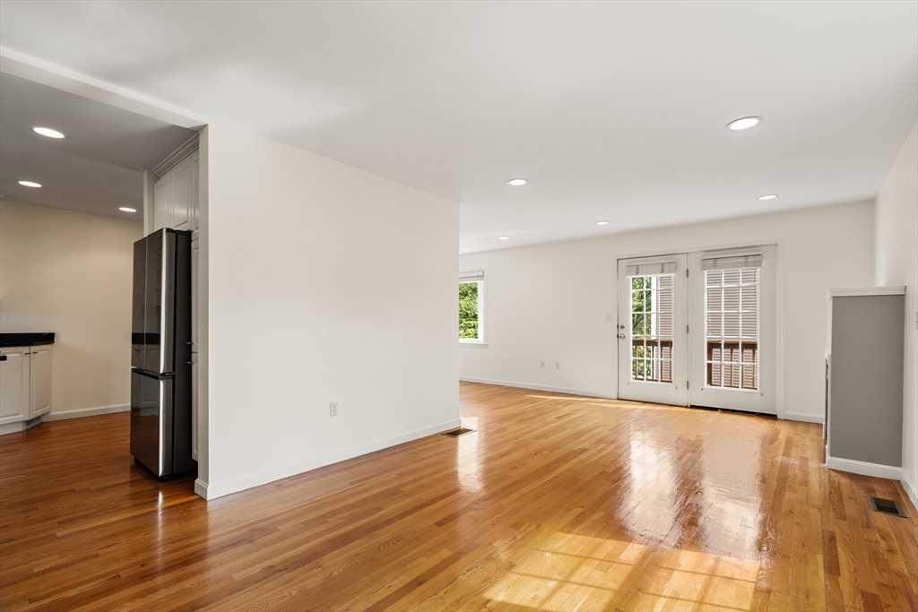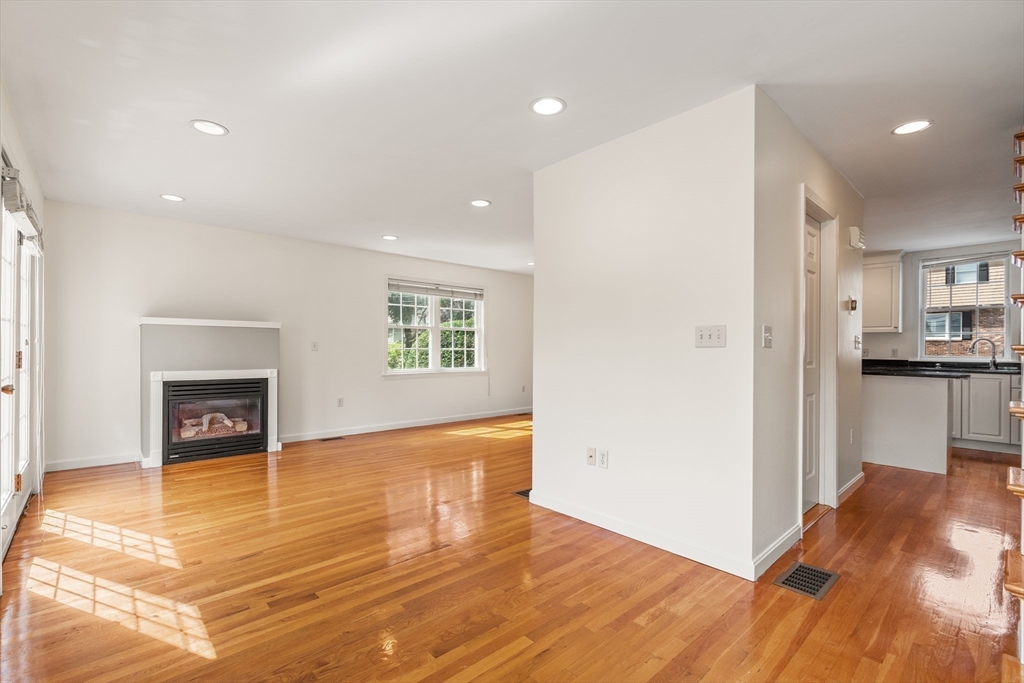 MOVE RIGHT INTO THIS PRISTINE END UNIT IN DESIRABLE TERRACES CONDOMINIUM COMPLEX! This 3 bedroom, 3.5 bath home with open floor plan, hardwood floors, central air conditioning and garage parking is convenient to 95, Cambridge and Boston! The main level features an updated kitchen with granite counter tops and stainless steel appliances, dining room, gas fireplace, living room with access to a private deck, and a powder room. The open floor plan allows for seamless flow between the living, dining, and kitchen areas, creating a comfortable and inviting atmosphere. The second level will impress with a spacious cathedral ceiling primary bedroom suite with palladium window, master bath, walk in closets, an additional spacious bedroom and bath, and in unit laundry. The lower level greets you with a welcoming foyer and garage access along with the first floor ensuite bedroom and full bath. The home is Pet friendly! (one dog or cat under 50 lbs).