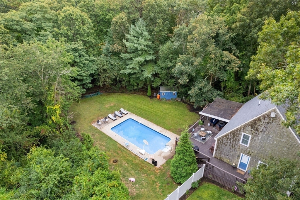 This stunning "Swales Farm" Saltbox Colonial blends timeless charm with modern flair, nestled on a peaceful lot just minutes from downtown, the town harbor, and Route 3. Enjoy the perfect balance of privacy and convenience. The open floor plan features gleaming hardwood floors flowing seamlessly through the kitchen, living room, and dining area. This 3 bed, 2 full baths includes a partially finished walk-out lower level offering flexible space ideal for a home office, gym, or additional bedroom. The roof is approximately five years old and all but a few of the windows have been replaced within two years. Step outside to your own private oasis: a spacious deck overlooking a fenced backyard with a beautiful in-ground pool—perfect for weekend relaxation or festive holiday gatherings. This property is a rare find that combines elegance, comfort, and location in one exceptional package. Where backyard bliss meets neighborhood charm. Welcome Home!