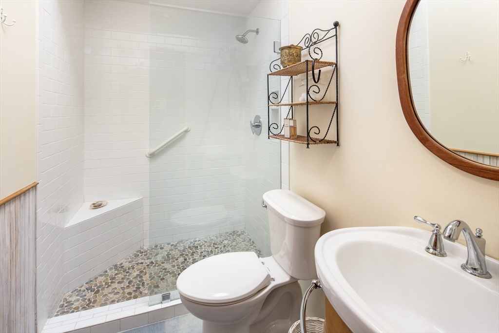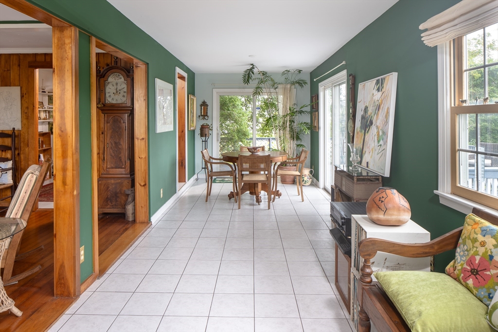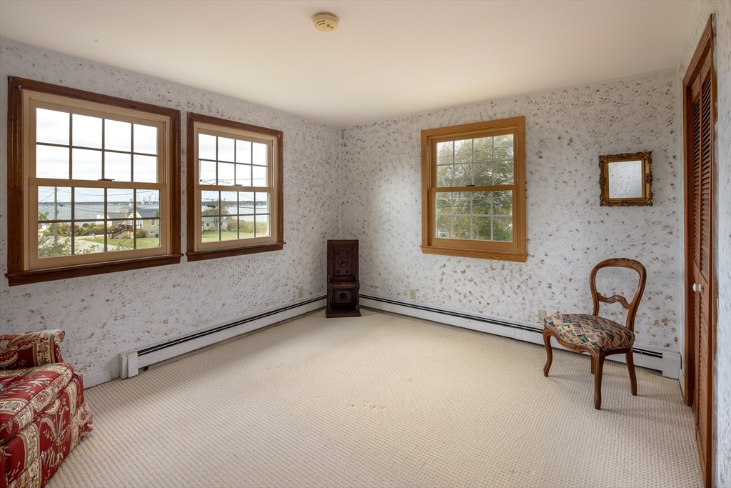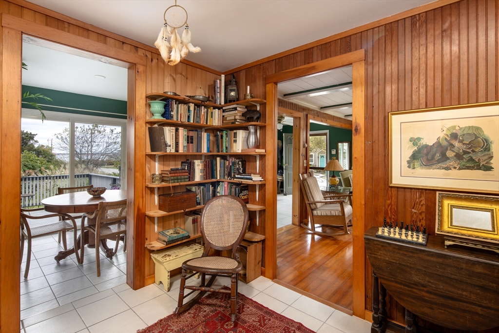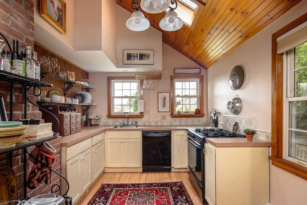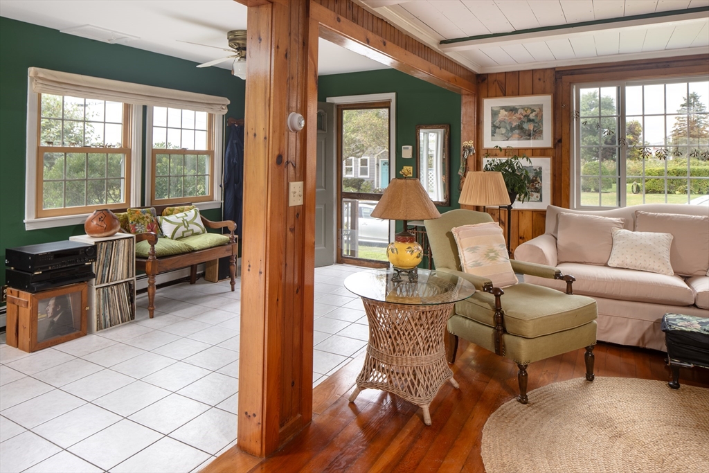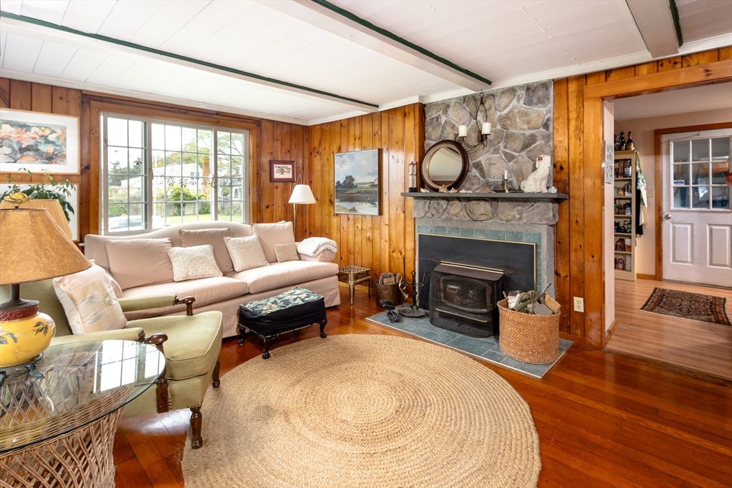 Charming 2-bedroom, 2 bath year-round cottage with water views and easy access to the beach at the end of the street. Enjoy the warmth of the wood burning stove in your cozy living room with its wood clad walls and wood floors. You’ll find sun-filled rooms in the open and airy living and dining spaces which flow into the efficient kitchen with its shaker cabinets, vaulted-ceiling with skylights, and open shelving. A small anteroom can do double duty as a first-floor guest room or is ideal for a home office set-up. Head upstairs to two bedrooms and a beautifully updated full bath. One bedroom has its own balcony with panoramic views and a cork floor, while the other large bedroom has newer berber carpet and water views as well. A good size yard has mature plantings and when you’re not gardening, relax on the porch and take in the view. This charming home offers close proximity to all the things that make Fairhaven so desirable – water access, beaches, shops, restaurants and more.