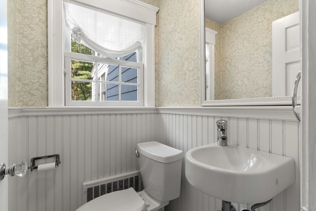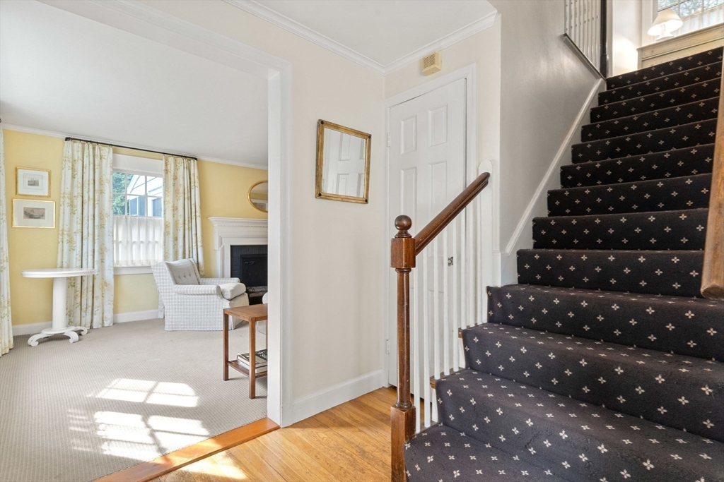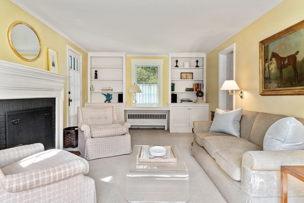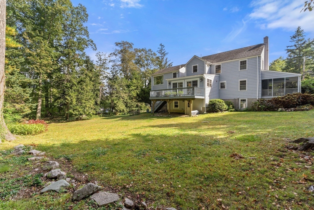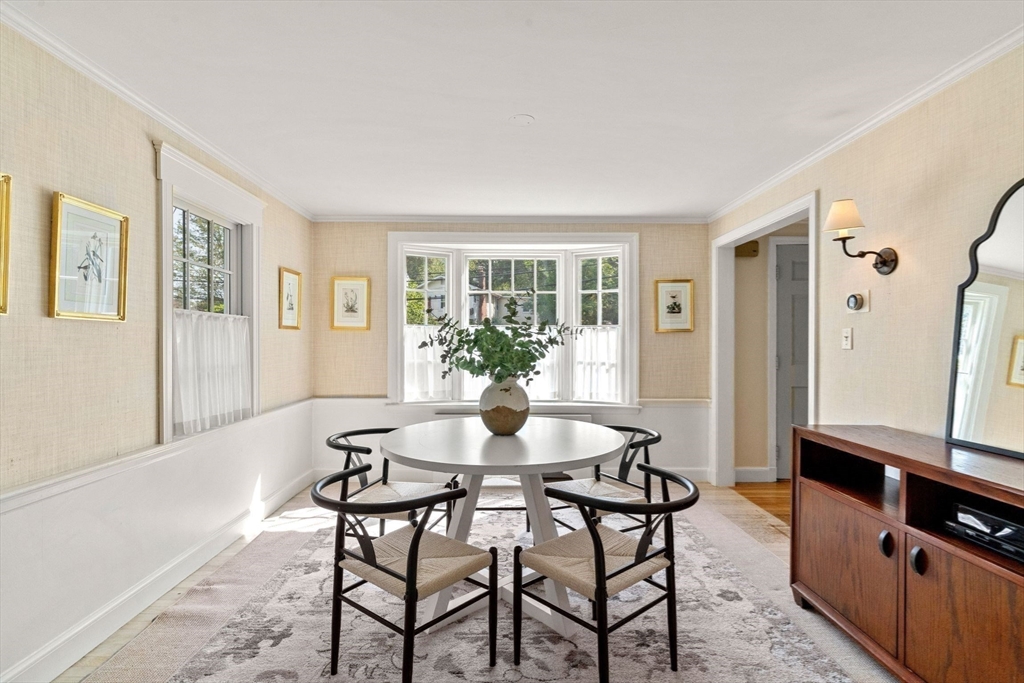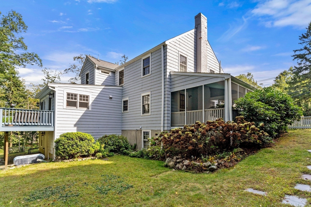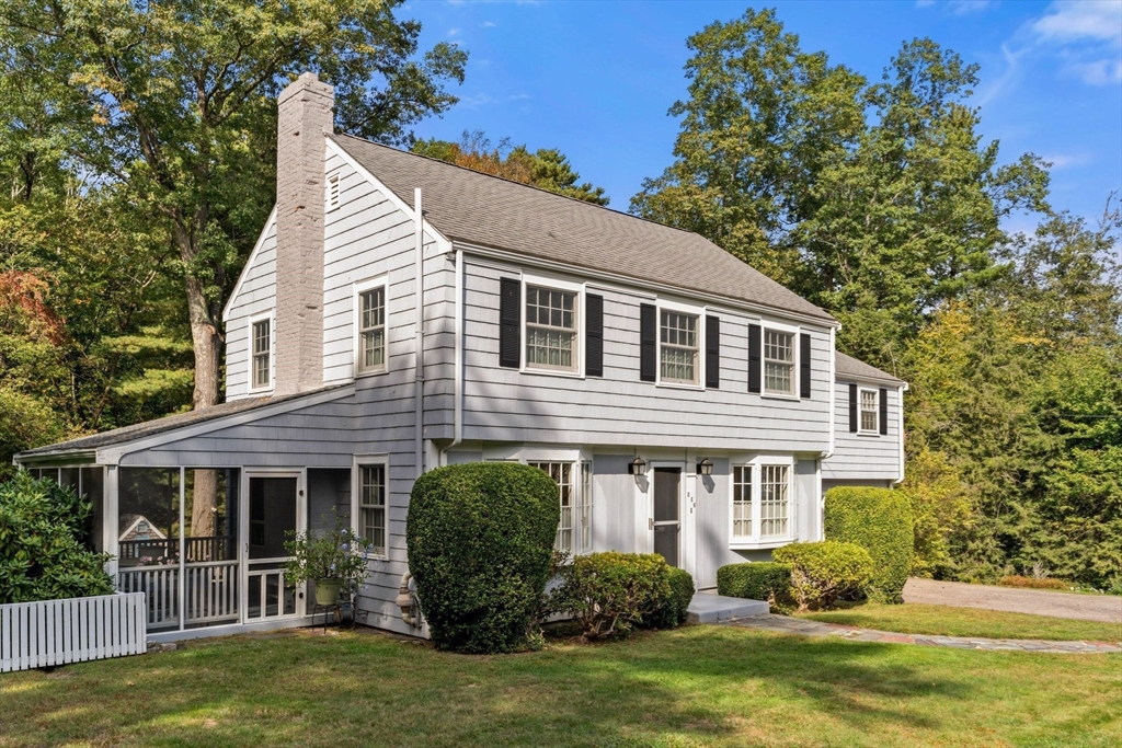 Move right in to this charming 4 bedroom 2.5 bath Colonial in desirable Islington location. Stunning original millwork, custom built-ins & hardwood floors throughout the home. Sun filled front to back living room w/ fireplace & custom bookcases, leads to sunroom. Dining room opens to expanded kitchen w/ oversized island featuring marble & honed granite counters, ss appliances, pantry, eat-in nook, double sliders out to deck overlooking the lush private yard. Half bath & mudroom w/ separate entrance complete the first floor. Over the garage is an ensuite w/ spacious bedroom, stunning full bath & deep closet. Second floor features primary bedroom with window seat & two closets, two additional bedrooms, one w/ walk-in closet and exquisite full bath w/ custom double vanity & marble basketweave flooring.Lower level with mechanical room, laundry, playroom & walk out storage room to backyard. Minutes to commuter rails, highway, Legacy Place, Islington Center & Hale trails.