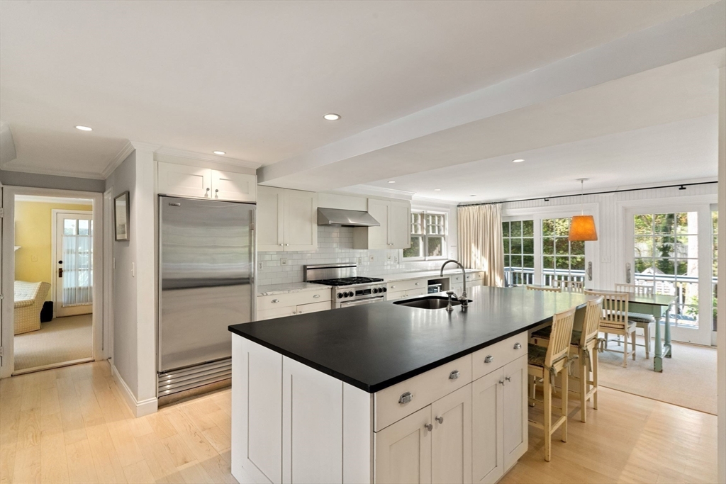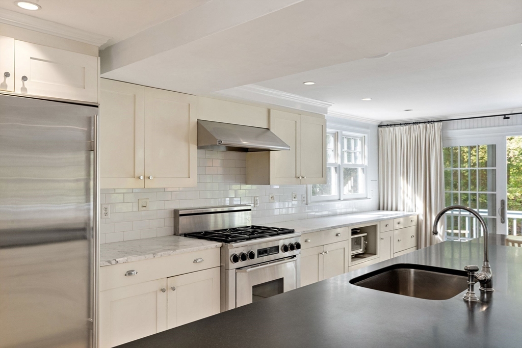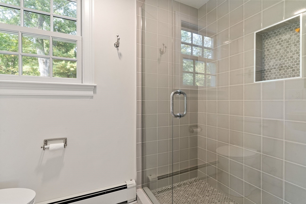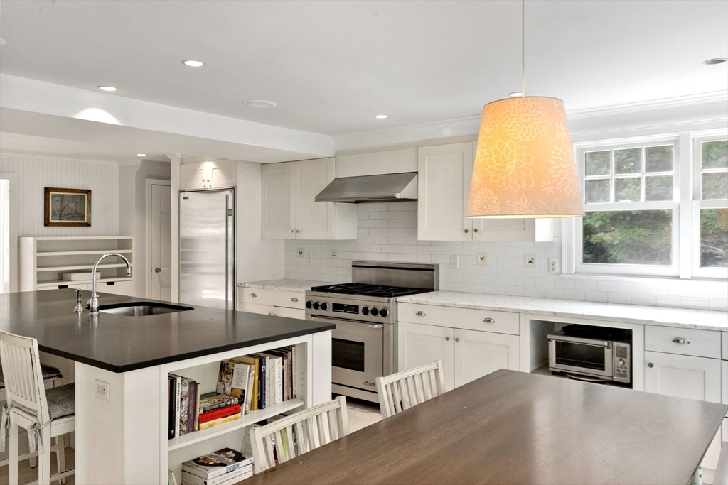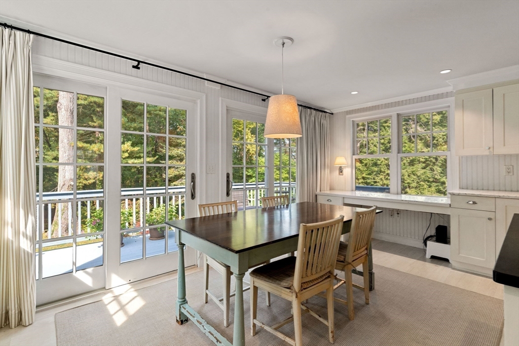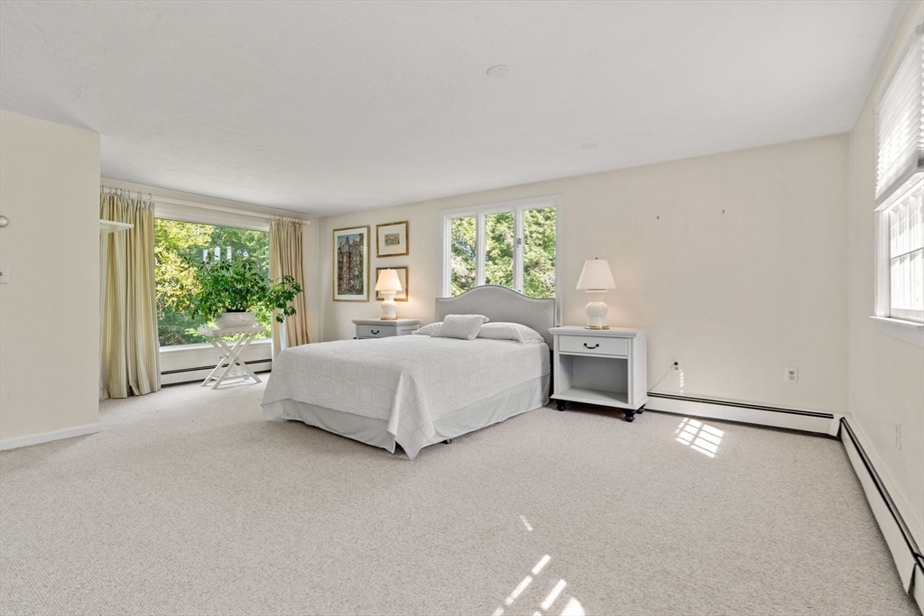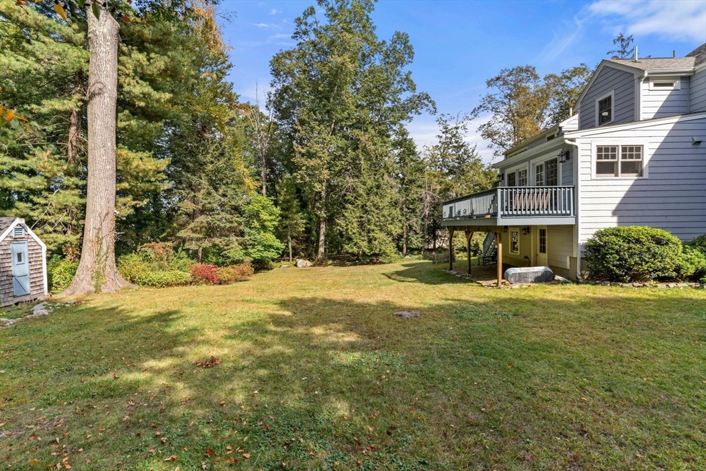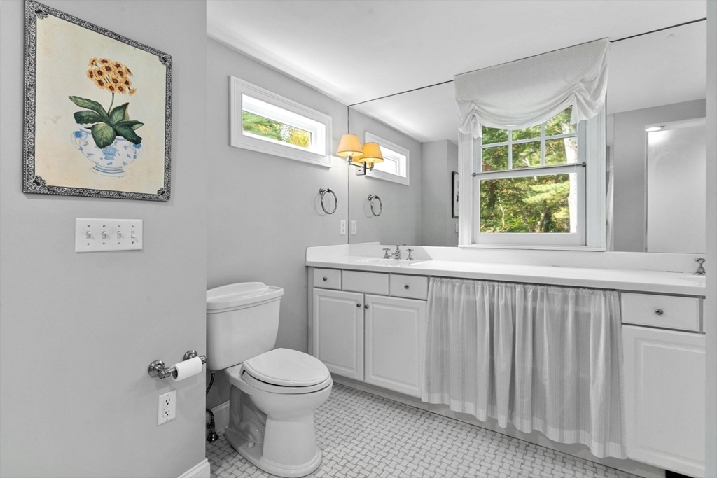 Move right in to this charming 4 bedroom 2.5 bath Colonial in desirable Islington location. Stunning original millwork, custom built-ins & hardwood floors throughout the home. Sun filled front to back living room w/ fireplace & custom bookcases, leads to sunroom. Dining room opens to expanded kitchen w/ oversized island featuring marble & honed granite counters, ss appliances, pantry, eat-in nook, double sliders out to deck overlooking the lush private yard. Half bath & mudroom w/ separate entrance complete the first floor. Over the garage is an ensuite w/ spacious bedroom, stunning full bath & deep closet. Second floor features primary bedroom with window seat & two closets, two additional bedrooms, one w/ walk-in closet and exquisite full bath w/ custom double vanity & marble basketweave flooring.Lower level with mechanical room, laundry, playroom & walk out storage room to backyard. Minutes to commuter rails, highway, Legacy Place, Islington Center & Hale trails.