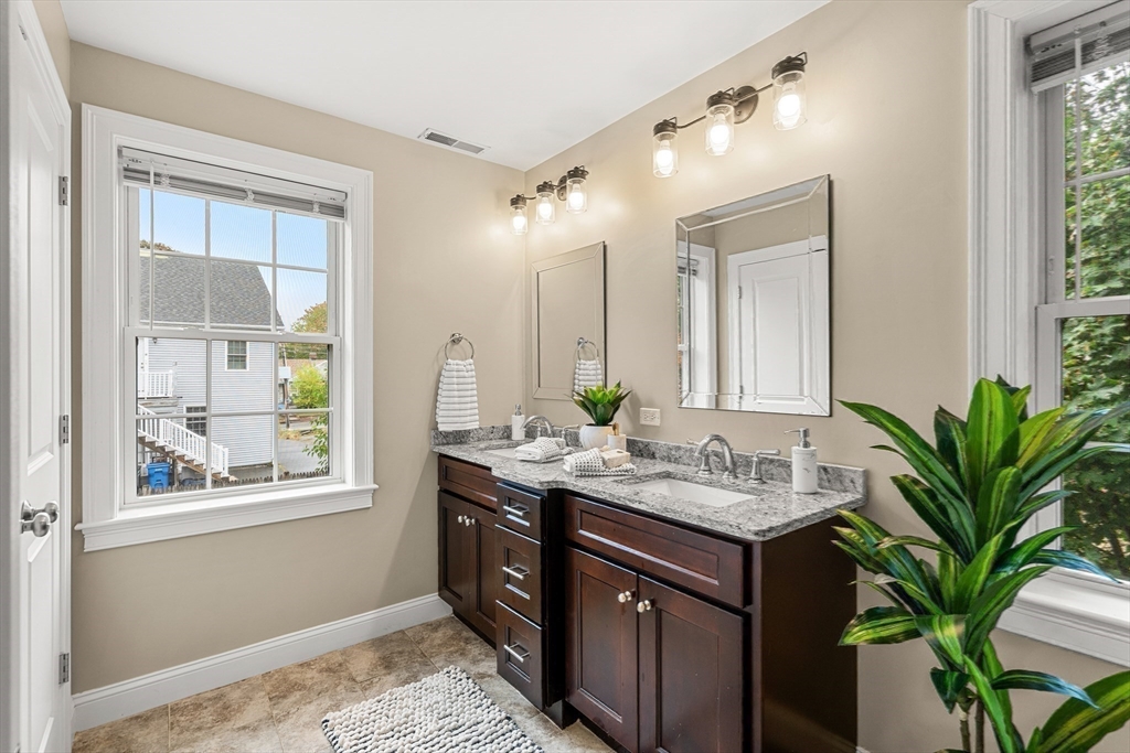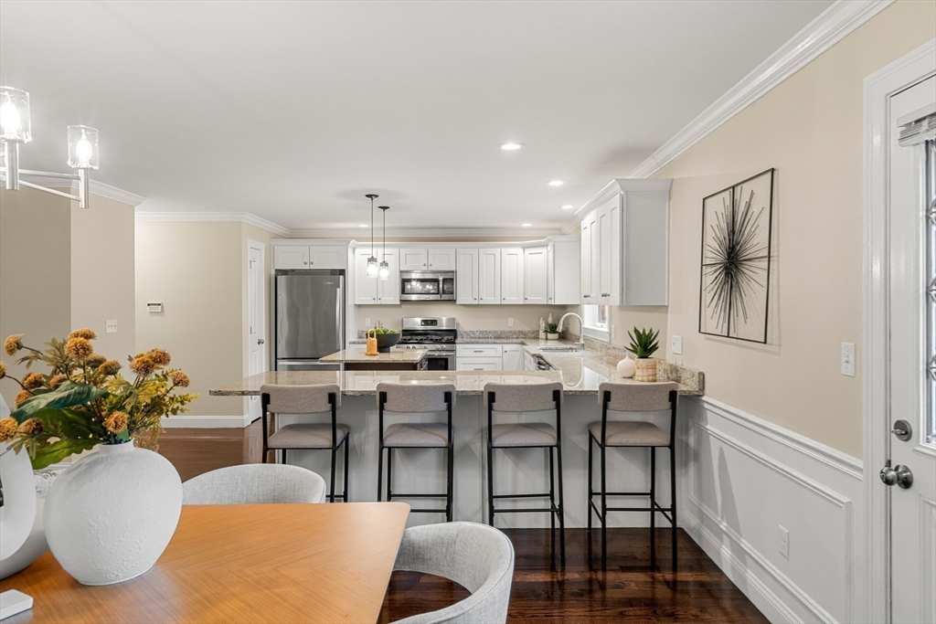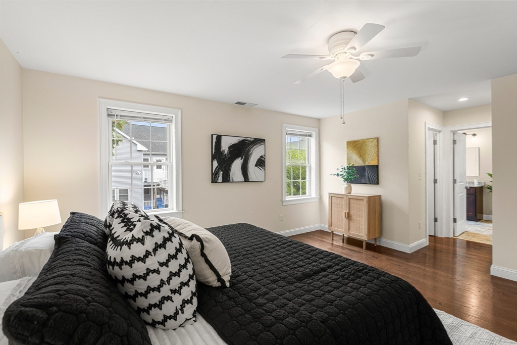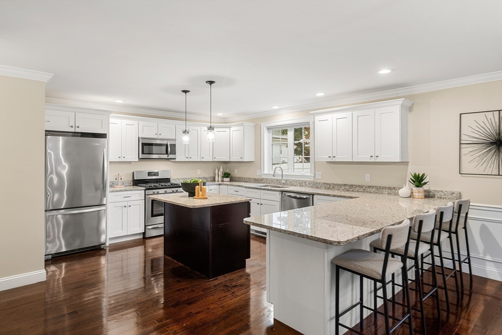 LAKESIDE LUXURY! Just steps from the lake, downtown, and commuter rail, this unrivaled 4 bedroom, 3.5 bath Executive-Style Townhome spans three levels of sun-filled living. Elegantly designed with an open floor plan, it showcases gleaming hardwood floors, a gas fireplace, and exquisite custom millwork. The well-appointed kitchen, featuring granite countertops, a center island, breakfast bar, and stainless steel appliances, is ideal for entertaining or everyday living. The primary suite boasts dual walk-in closets and a private bath, complemented by two additional bedrooms, a full bath, and convenient laundry. A versatile third floor offers a second primary suite, bonus space, or home office, complete with a walk-in closet and a ¾ bath. Set on a quiet side street with a fenced yard, patio, and attached garage, this home effortlessly combines refined style, modern convenience, and an unparalleled lakeside lifestyle - perfect for relaxing and enjoying all that Wakefield has to offer.