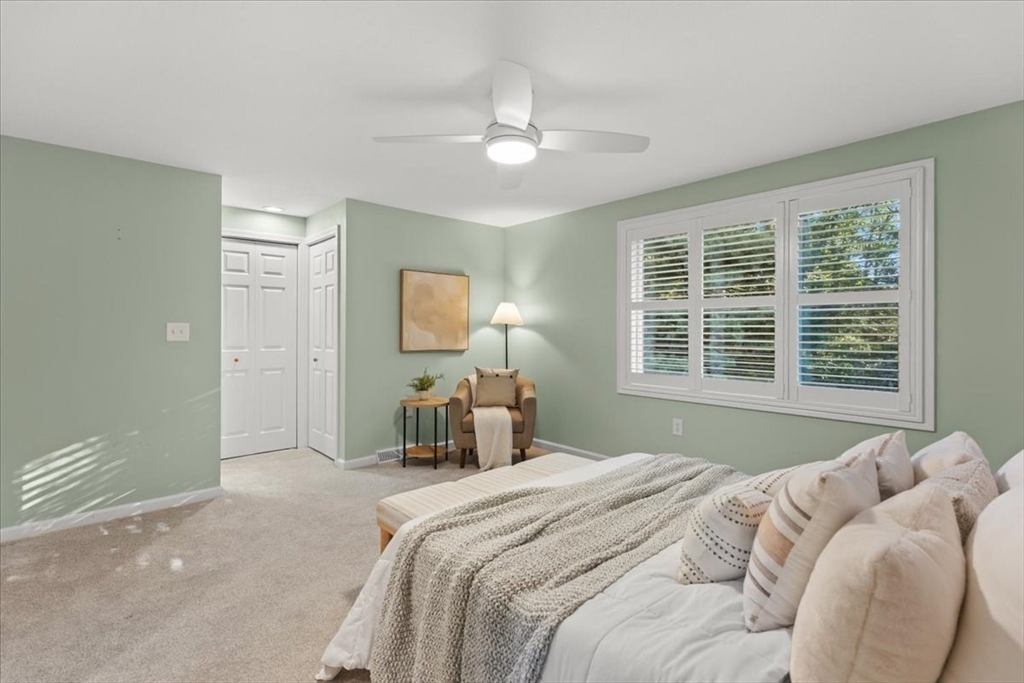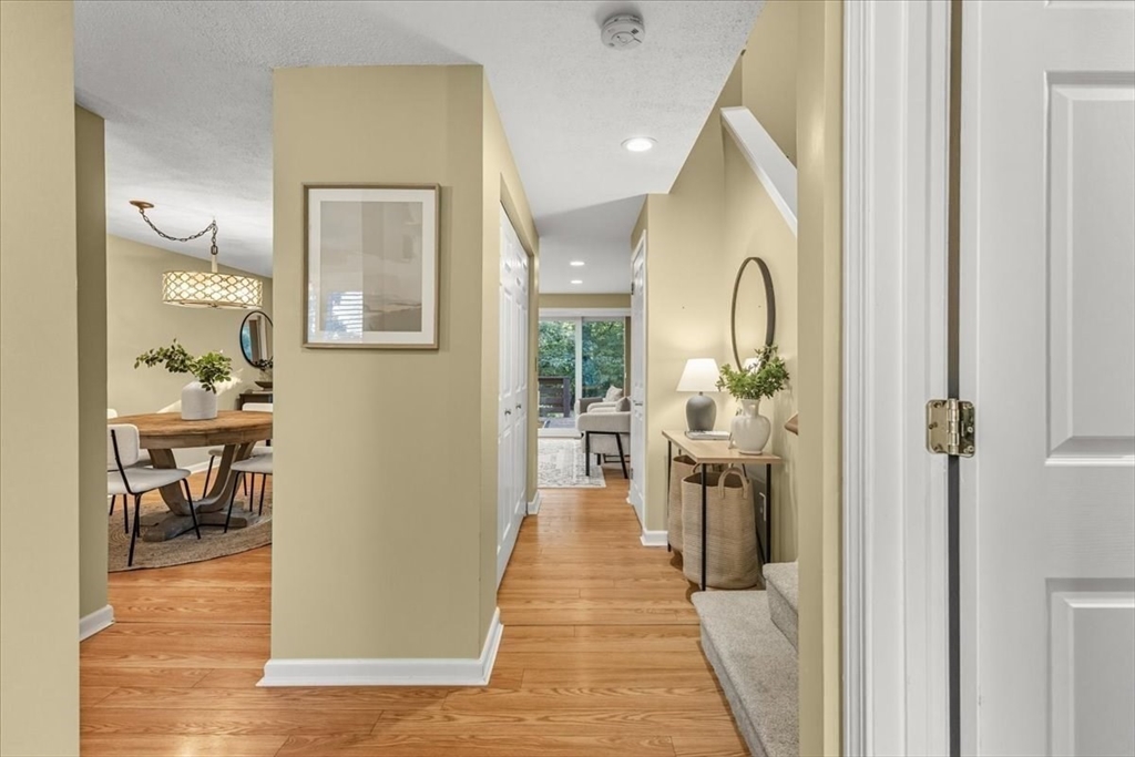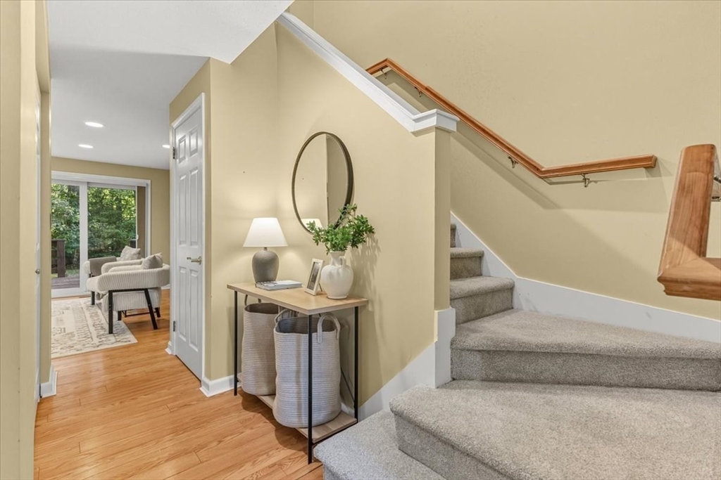 Nicely updated and sunny townhome features many extras including beautiful flooring, fireplace, dry bar, upgraded kitchen, custom shutters, closet systems, and more! Eliminate stress knowing your home has several recently replaced big-ticket items: 2024 roof, 2024 siding, 2017 furnace, 2017 air conditioning, 2017 sliders, and 2017 windows! Relax outdoors with the peaceful and coveted view of the woods from your back deck. This home also offers the convenience of a garage, second floor laundry, and a primary bedroom with en-suite bathroom and walk-in closet! Residents can enjoy use of the clubhouse, swimming pool, pickleball courts, and basketball courts in this pet friendly community. Clean and spacious lower level offers the potential for future living quarters. Easy access to route 140 and 495 make commuting a breeze! Open house Saturday Oct 4th from 1-3pm