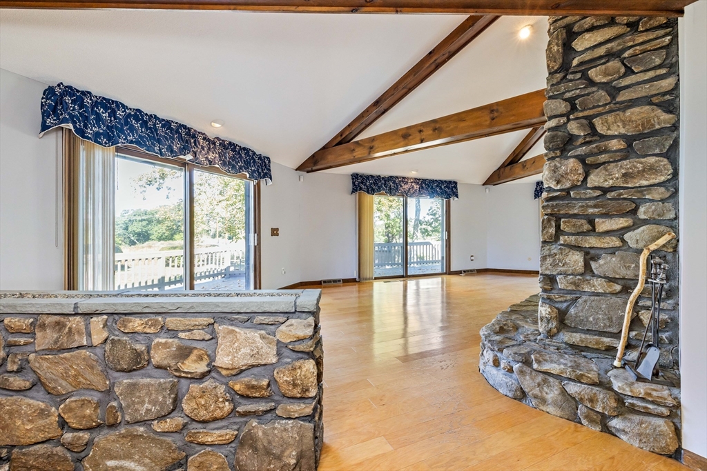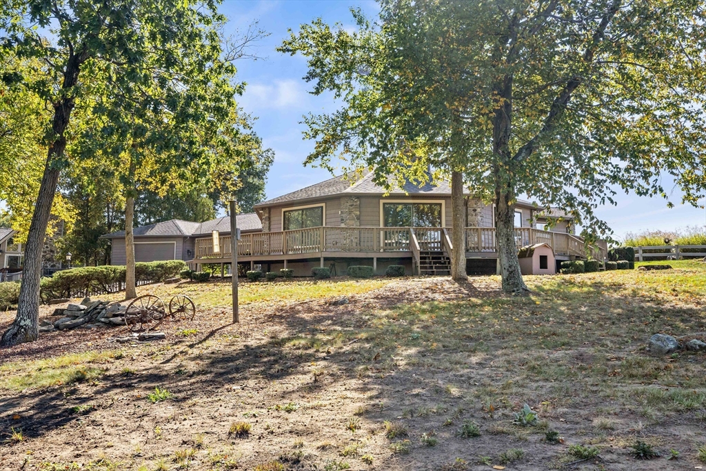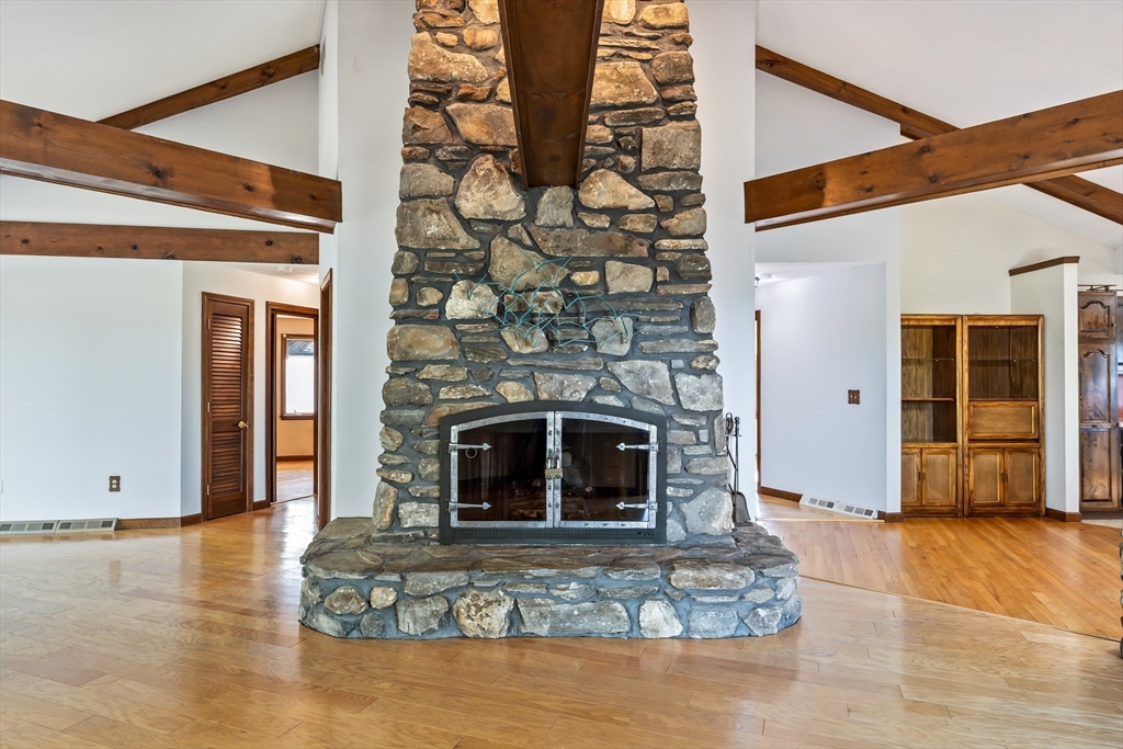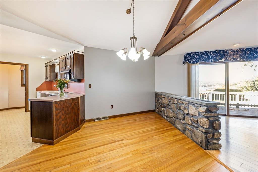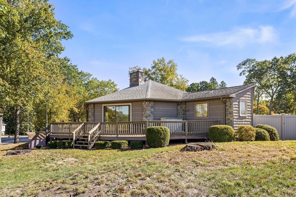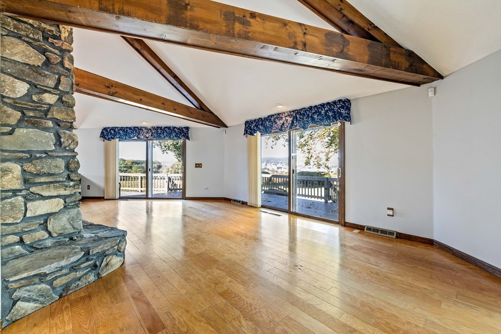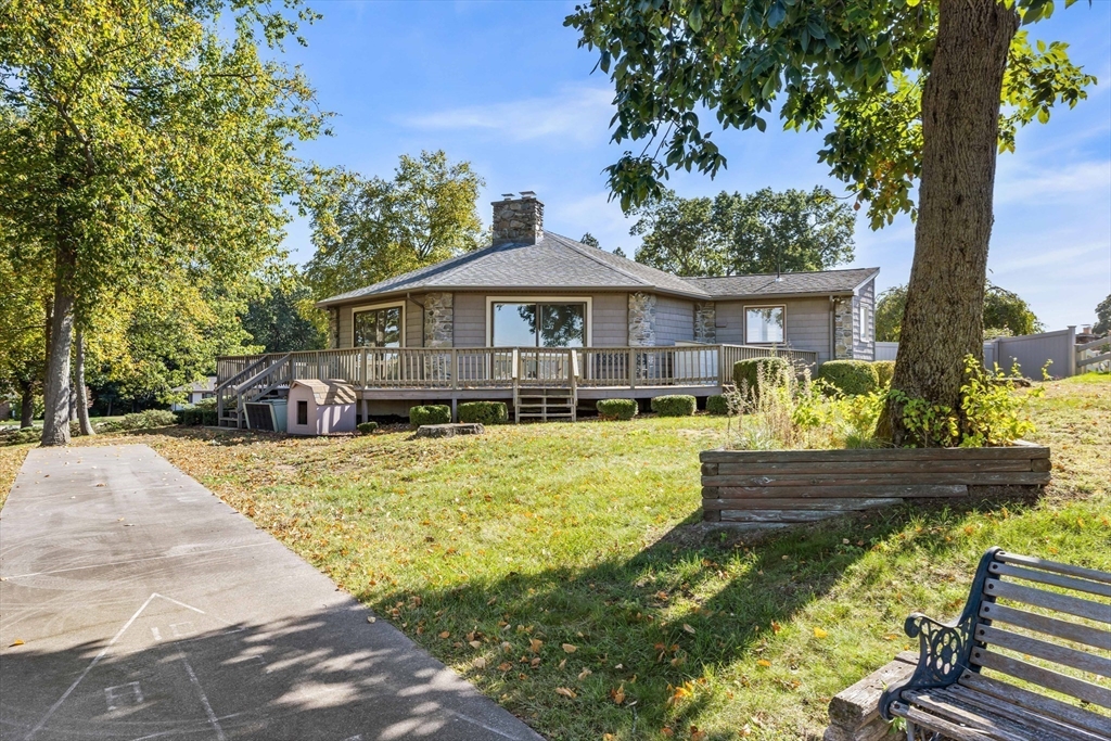 Welcome to 64 Dowds Lane, a stunning octagon-style single-family home tucked away on a quiet cul-de-sac with panoramic views of historic Holyoke and Skinner Mountain. This one-of-a-kind property offers 2 bedrooms, 1.5 baths, and over 1,600 square feet of single-level living space. The open floor plan is filled with natural light and connects to a bright sunroom and an expansive wrap-around deck, perfect for relaxing or entertaining. Car enthusiasts will love the 3-car garage, with the 3rd bay ideal for a lift or workshop. Comfort meets efficiency with a forced-air heating system featuring an indirect SuperStor water heater and air handler. Set on a private 0.56-acre lot with a fenced backyard, this home combines tranquility, privacy, and convenience just minutes from Chicopee Memorial State Park, shopping, and major routes. Perfect for those seeking something truly special.