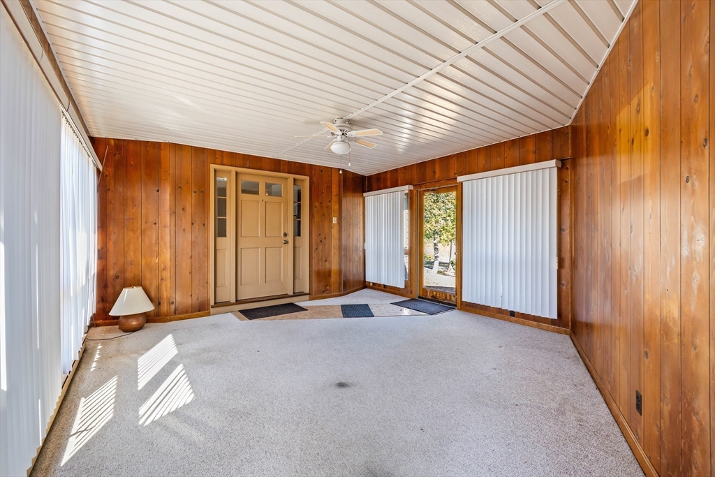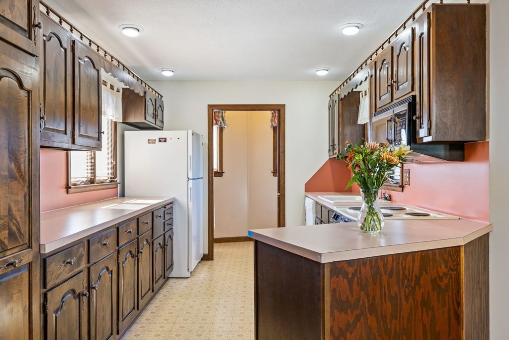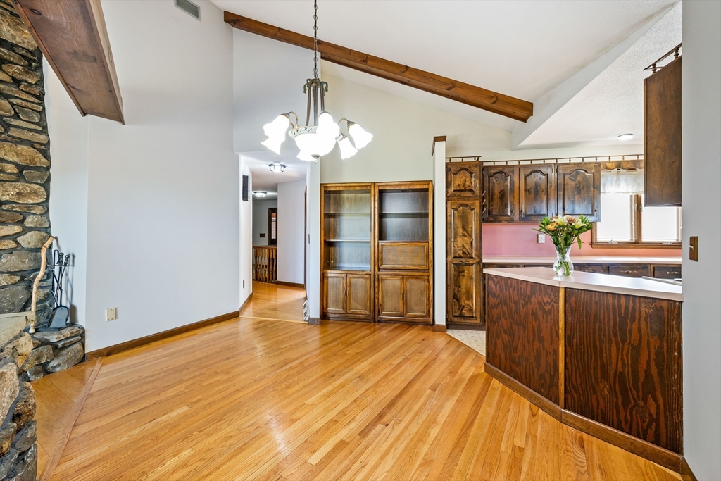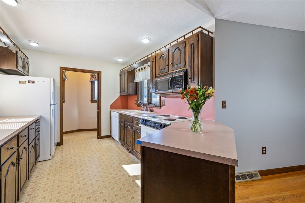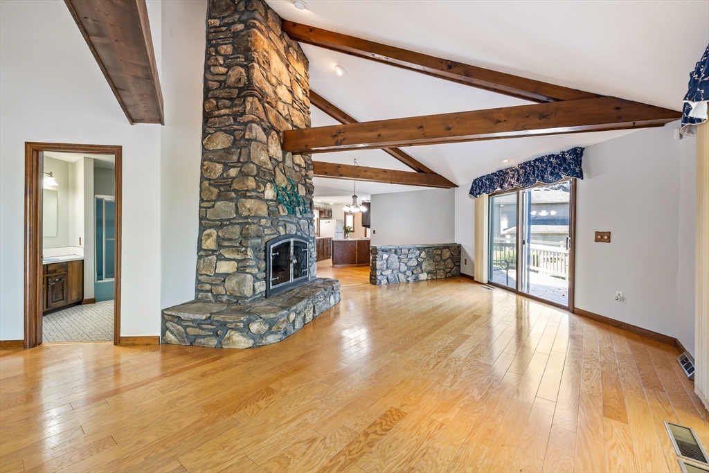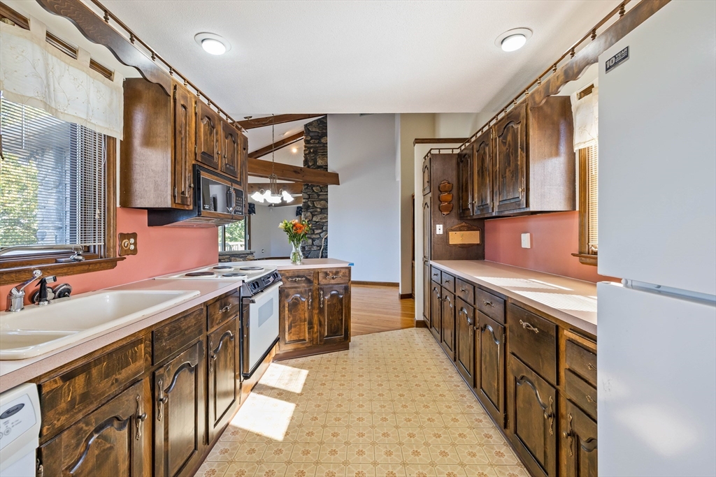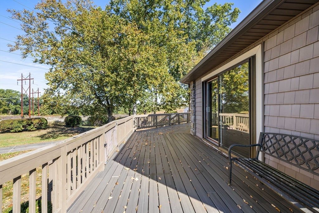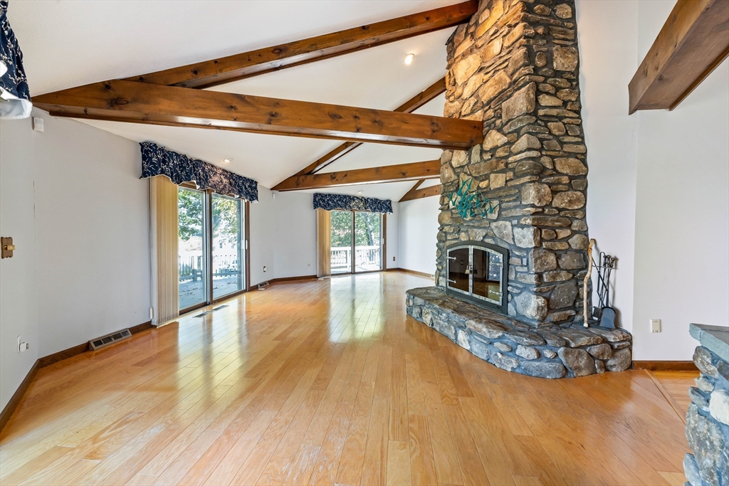 Welcome to 64 Dowds Lane, a stunning octagon-style single-family home tucked away on a quiet cul-de-sac with panoramic views of historic Holyoke and Skinner Mountain. This one-of-a-kind property offers 2 bedrooms, 1.5 baths, and over 1,600 square feet of single-level living space. The open floor plan is filled with natural light and connects to a bright sunroom and an expansive wrap-around deck, perfect for relaxing or entertaining. Car enthusiasts will love the 3-car garage, with the 3rd bay ideal for a lift or workshop. Comfort meets efficiency with a forced-air heating system featuring an indirect SuperStor water heater and air handler. Set on a private 0.56-acre lot with a fenced backyard, this home combines tranquility, privacy, and convenience just minutes from Chicopee Memorial State Park, shopping, and major routes. Perfect for those seeking something truly special.