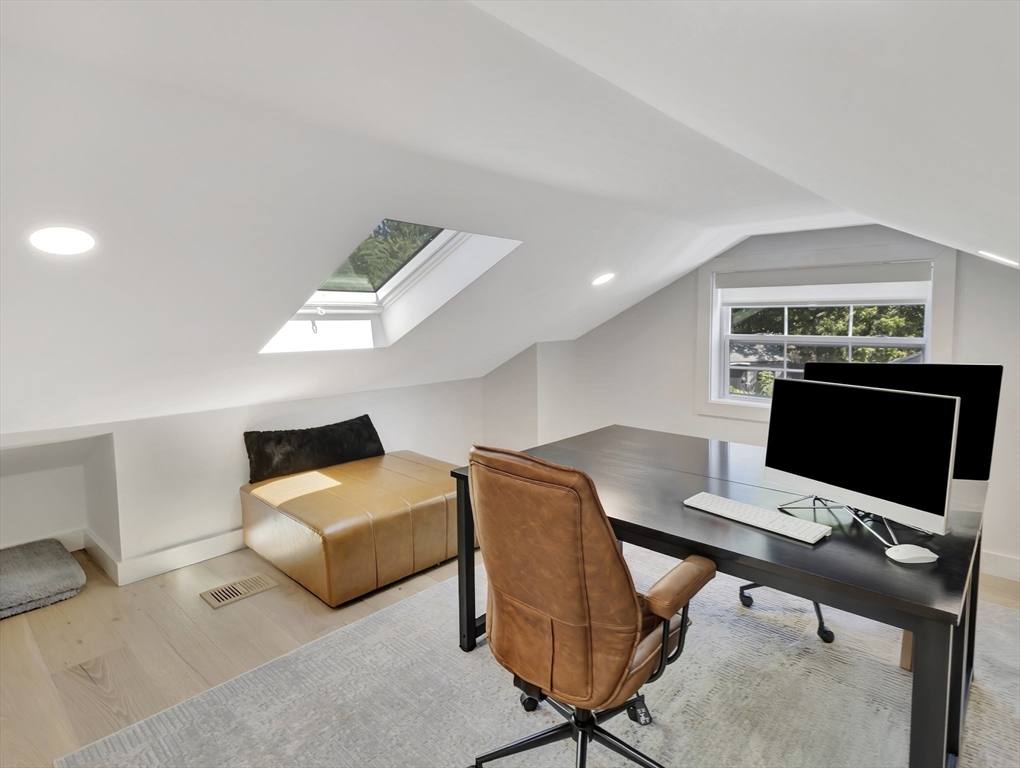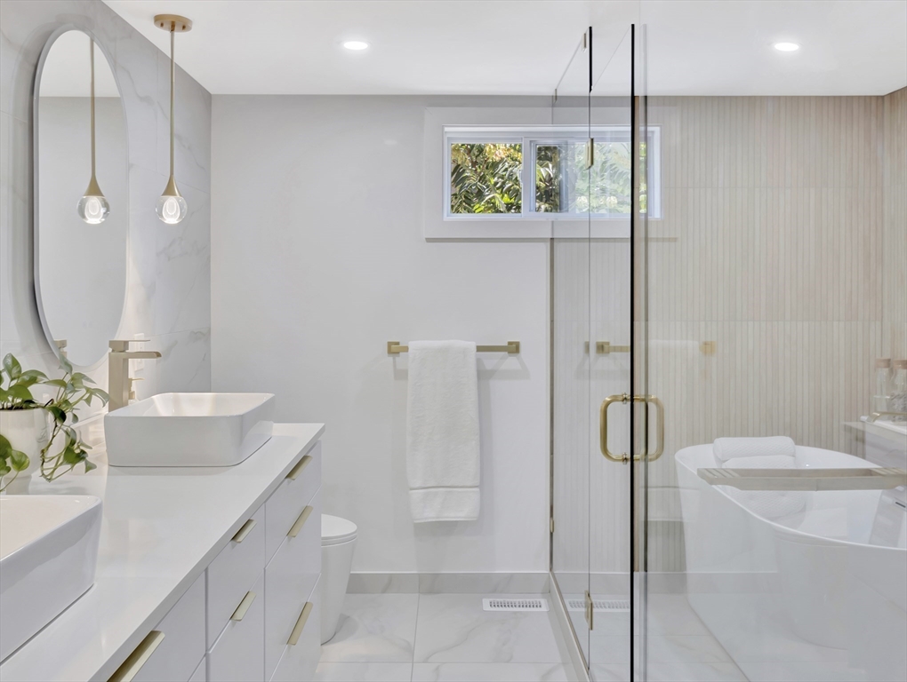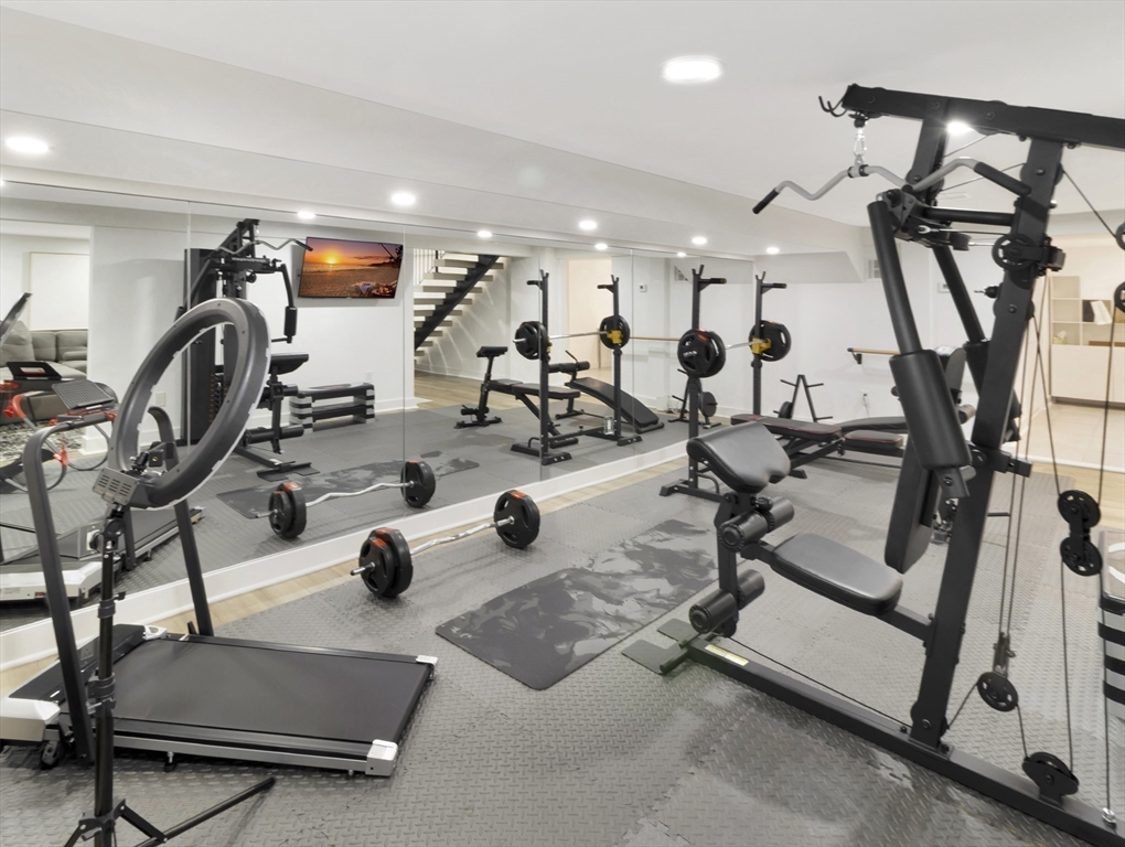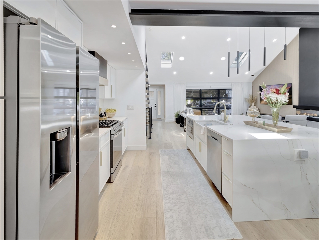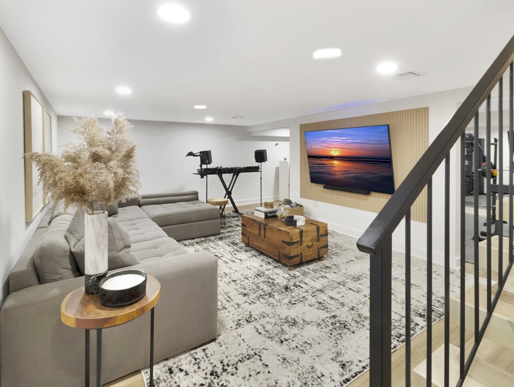 This beautiful home presents an unparalleled opportunity to own a luxury property in pristine condition. Situated in a desirable area, with a superb combination of sophisticated design and top-tier materials. The heart of this amazing residence is the kitchen, designed with both aesthetics and functionality in mind. The kitchen's shaker cabinets offer abundant storage, while the stone countertops provide a durable and elegant workspace. A skylight floods the space with natural light, complementing the backsplash and illuminating the island and bar. Open to a covered deck that leads to the adult playground beyond w/unparalleled outdoor spaces for endless entertaining possibilities. The living room presents a dramatic picture defined by its vaulted ceiling, further enhanced by a skylight that lets the sunlight in. A primary ensuite that wows, tons of storage, finished areas for exercising, gaming, relaxing and entertaining, surround sound throughout, there is something here for everyone.