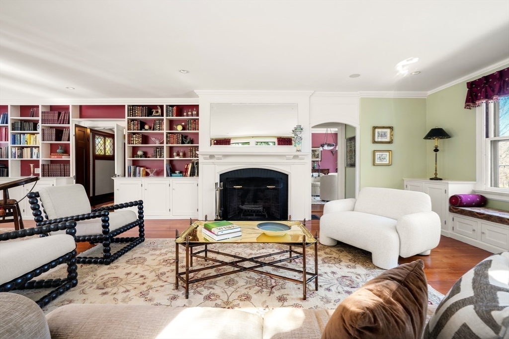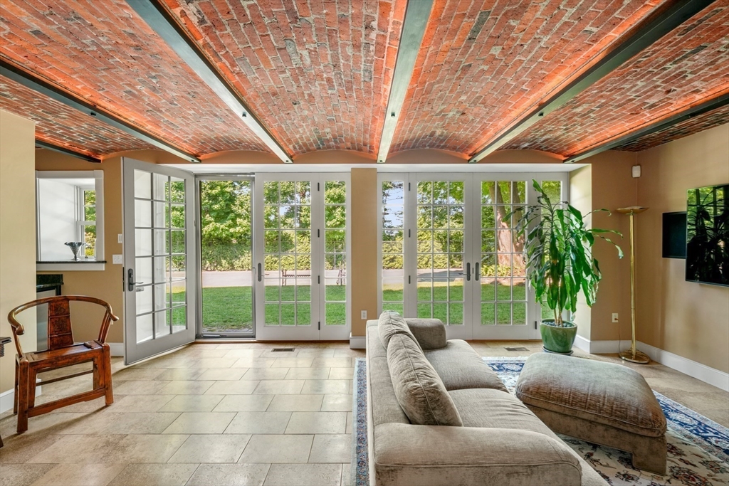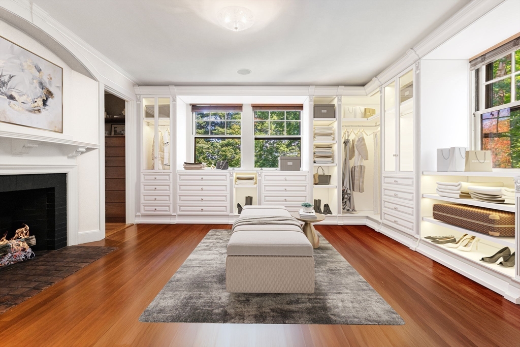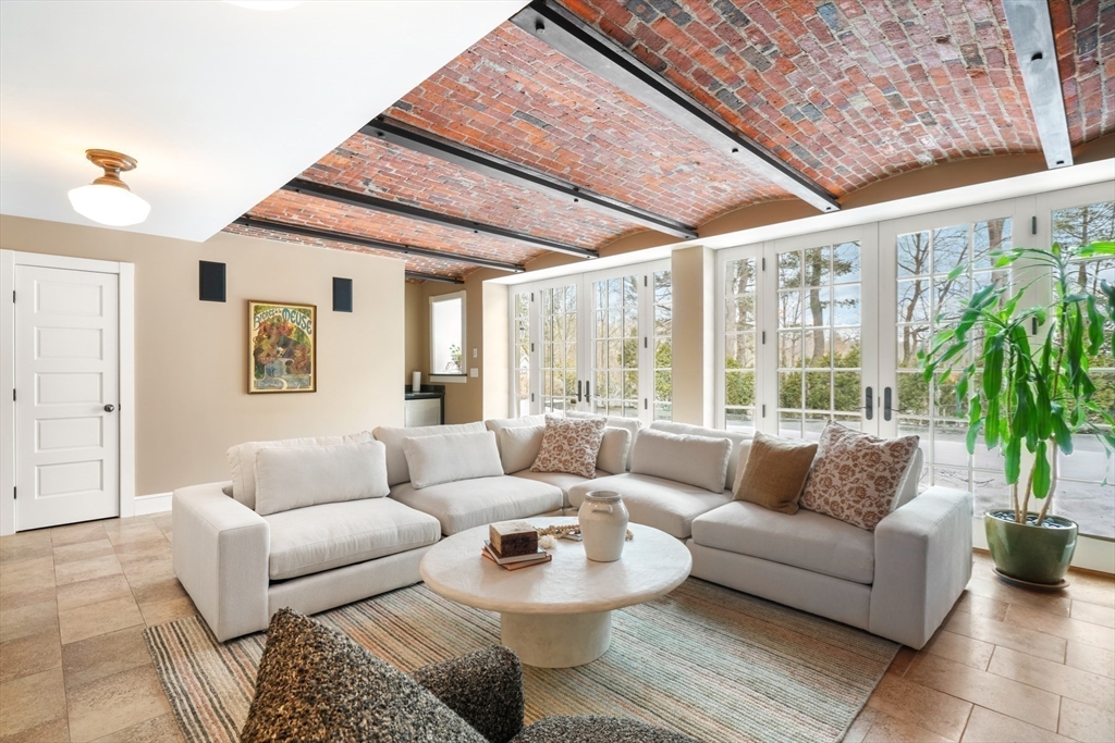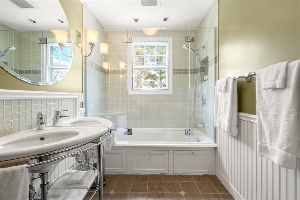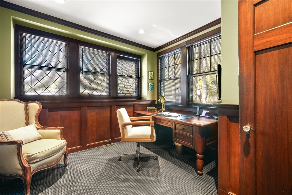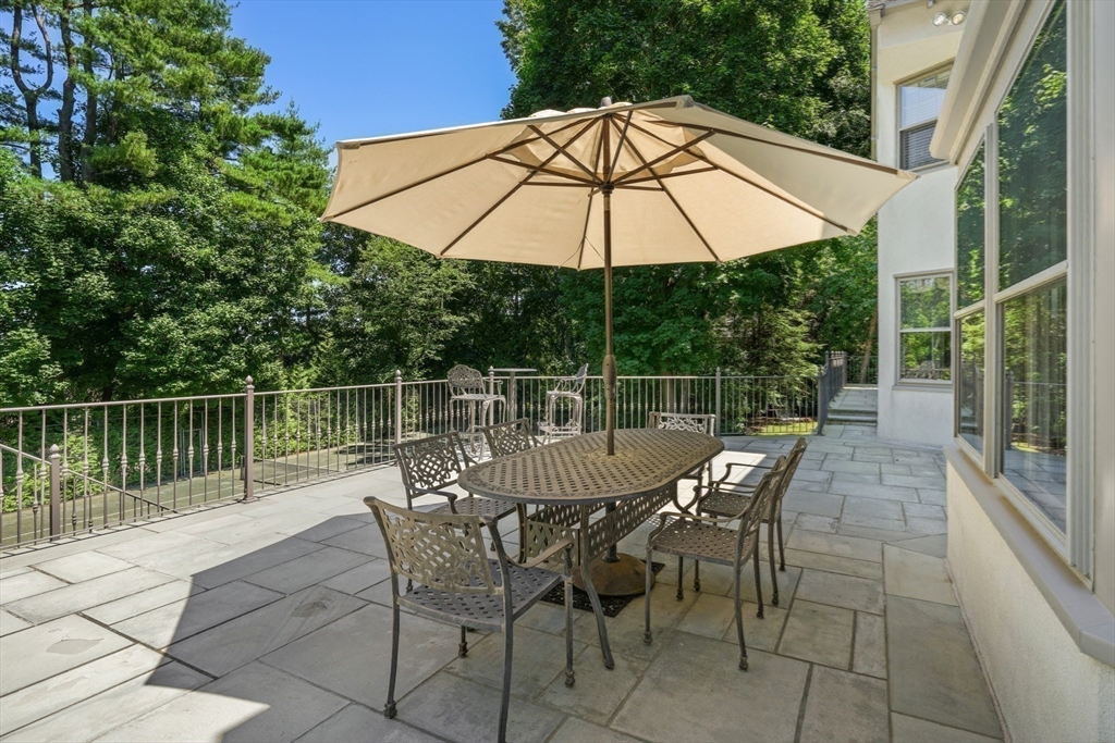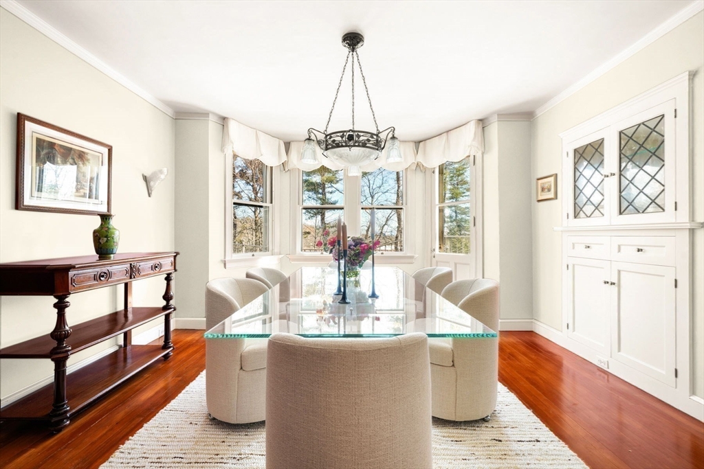 An exquisite stucco residence nestled in the coveted Chestnut Hill neighborhood of Brookline. Its hilltop location with stunning terraced grounds provides seasonal views of the reservoir and iconic Boston skyline. This property boasts a clay tennis court and completely renovated interior with a geothermal HVAC system and heated 3-car garage. The cook's kitchen with breakfast area and French doors lead to an elegant stone patio and backyard oasis. The spacious formal living and dining rooms, wood paneled library and family room complete the elegant main level. The seven bedrooms include a primary suite with dual bathrooms and dressing rooms. The third floor has a generous two-bedroom guest suite. The unique walkout lower level is extraordinary and features the original carriage house restored with an illuminated brick barreled ceiling, an unparalleled stone entertainment room and additional bedroom suite. Experience luxury living with the convenience of Boston's vibrant lifestyle.
