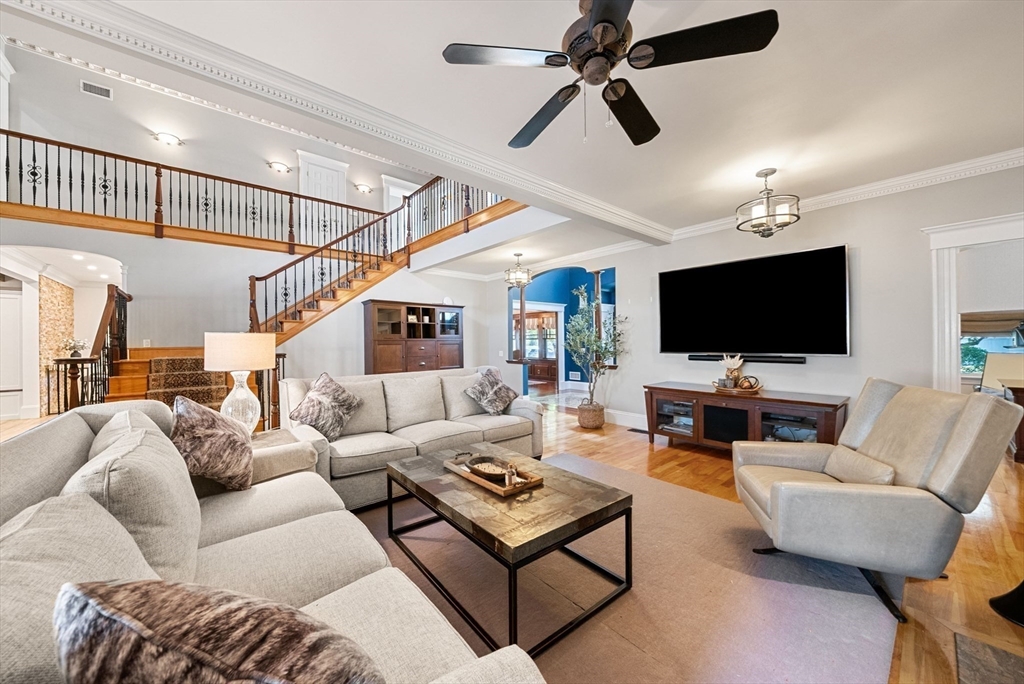This extraordinary estate has been masterfully crafted with fastidious attention to detail! Three levels of bespoke living begin with a grand entryway illuminated by an opulent chandelier leading to soaring ceilings hosting a captivating hand drawn mural. A stunning recently renovated Chef's kitchen offers quartz countertops & island, Wolf double ovens & range, a Sub-Zero & Miele coffee bar. Two separate dining areas include a formal dining room which seats 14 & a cozy custom banquette area, Two additional fireplaced living spaces offer an elegant living room and a large Great room filled with light & charm. Upstairs hosts 4 bedrooms including the large Primary suite complete with gas fireplace, balcony & large bath with shower & spa tub. The backyard is a private oasis offering an outdoor kitchen, fire pit & pool with fountain & slide. A large lofted bonus space above the 2 car garage is a perfect Au Pair suite. A finished basement and meticulous curb appeal complete this treasure.