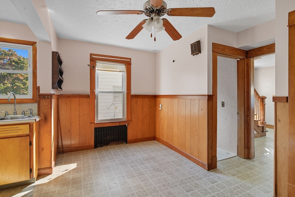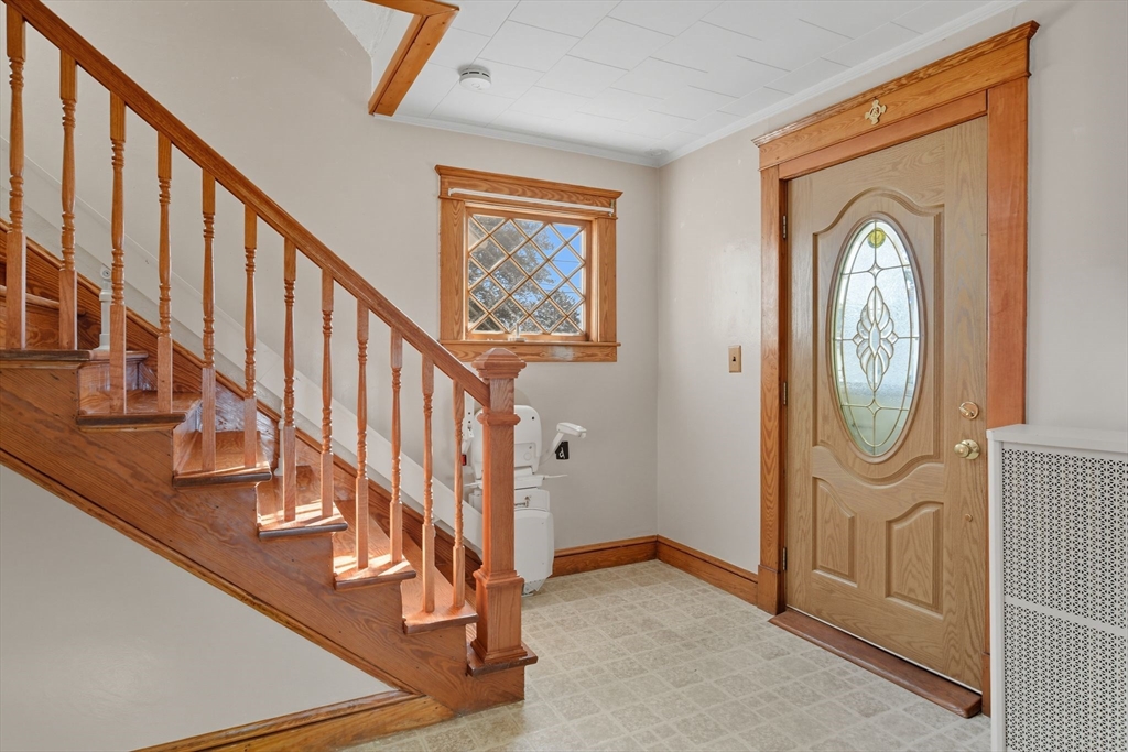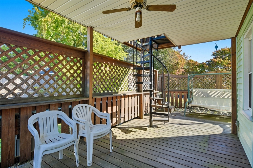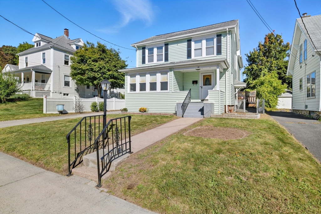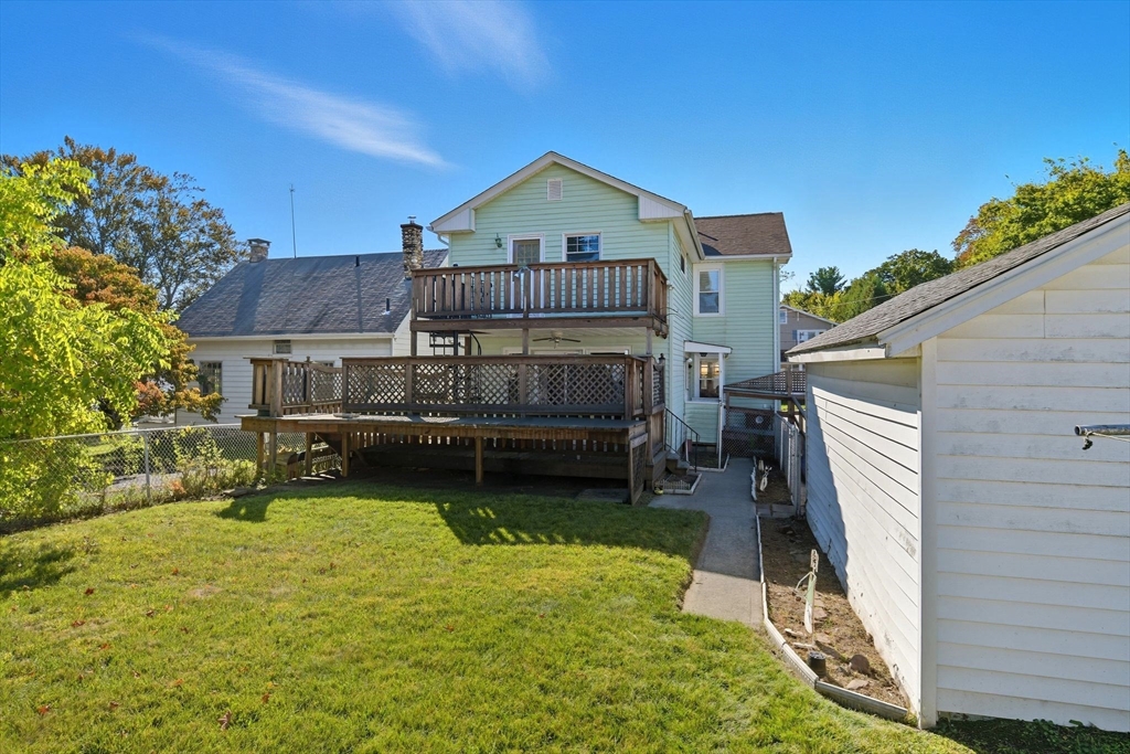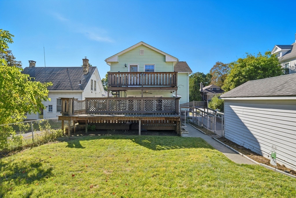 Charming, well-maintained home nestled in the Highlands - quaint yet conveniently close to highway access. Easy maintenance vinyl siding, replacement windows, gas heat & central air! Step inside to admire the beautiful woodwork and wood floors throughout. The inviting floor plan offers an entry foyer, spacious front living room, formal dining room, and an open-concept kitchen with adjacent half bath. A cozy back den leads to a great covered deck overlooking the fenced yard—perfect for relaxing or entertaining. Upstairs, the oversized primary bedroom impresses with its private balcony, ideal for enjoying a peaceful morning coffee and scenic views. Three additional bedrooms and a full bath complete the second floor. A walk-up attic and clean basement provide abundant storage and workshop potential, while the detached garage adds to the convenience. A perfect blend of character, comfort, and practicality in a sought-after location. GREAT bones, add your cosmetic touches!