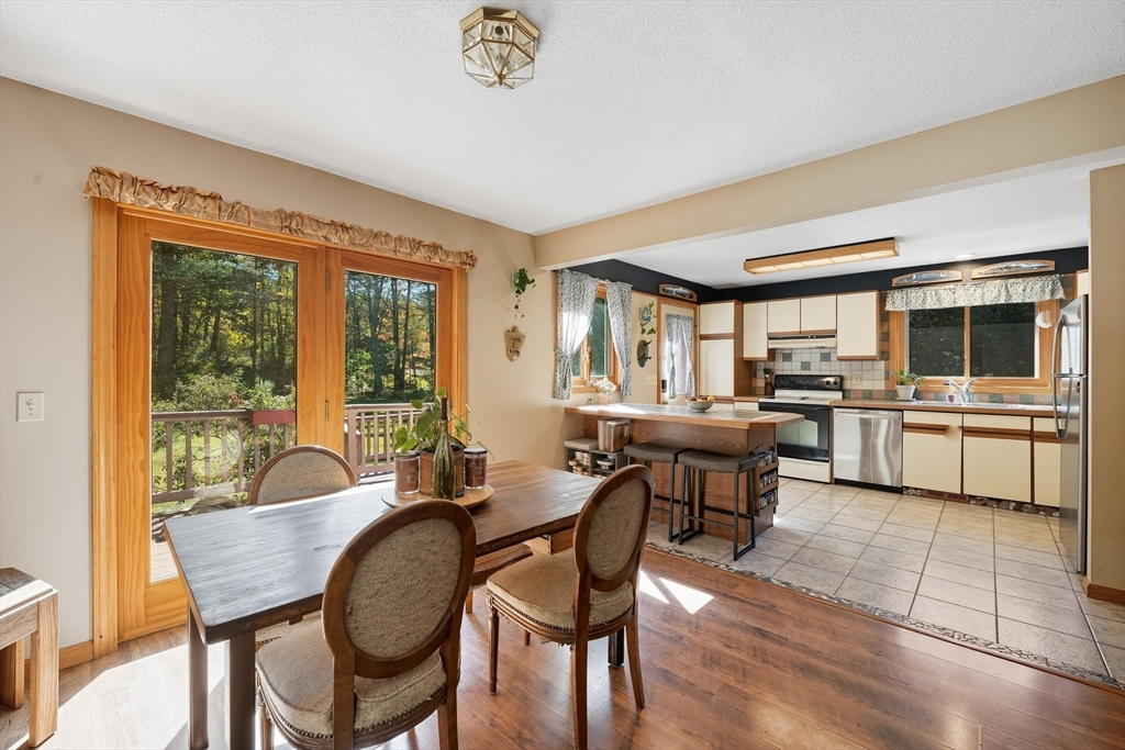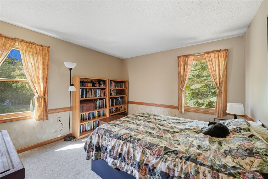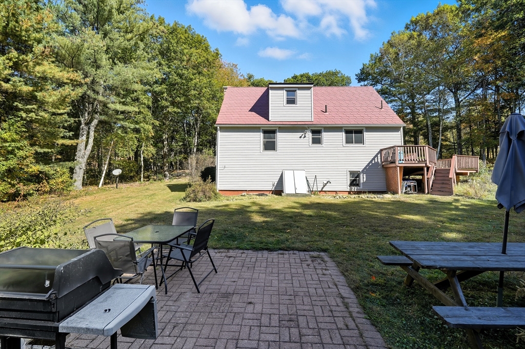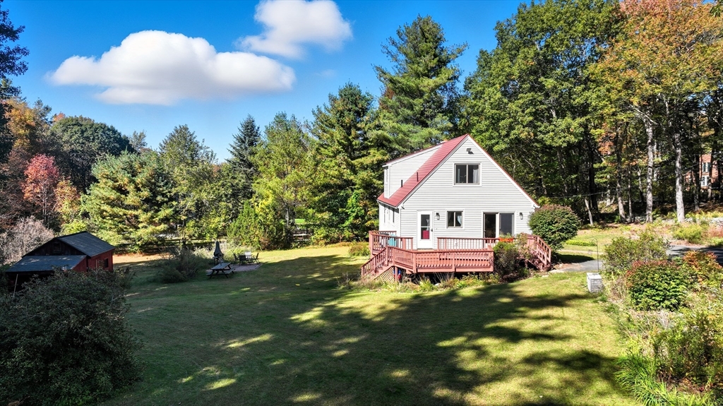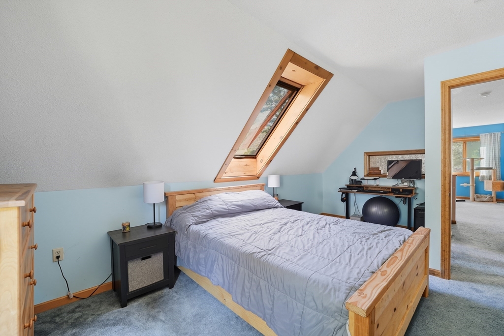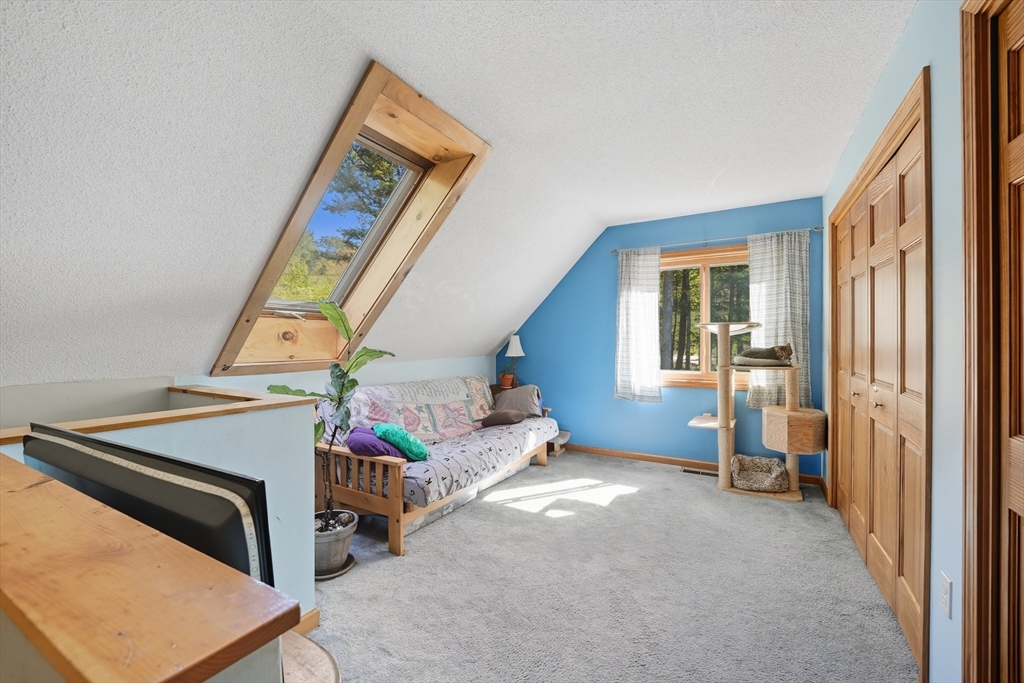 Tucked away on a private 3-acre wooded lot, this home offers the perfect blend of everyday living and retreat-like tranquility. A first-floor bedroom and full bath with walk-in shower provide ease and flexibility. Step outside to a large deck overlooking quiet grounds, or enjoy the walking trails winding through your own peaceful woods. Designed for both relaxation and everyday living, the home has been thoughtfully updated inside and out with a durable metal roof, refreshed bathrooms, newer water heater, upgraded electrical panels, and more. The natural setting provides privacy and tranquility, while its convenient location near Amherst, Belchertown, and surrounding towns ensures easy access to amenities, schools, and commuter routes. With a blend of modern improvements, inviting spaces, and serene surroundings, this property truly offers the best of both worlds.