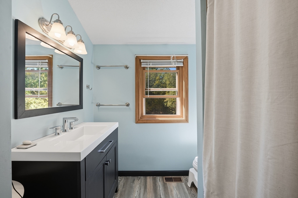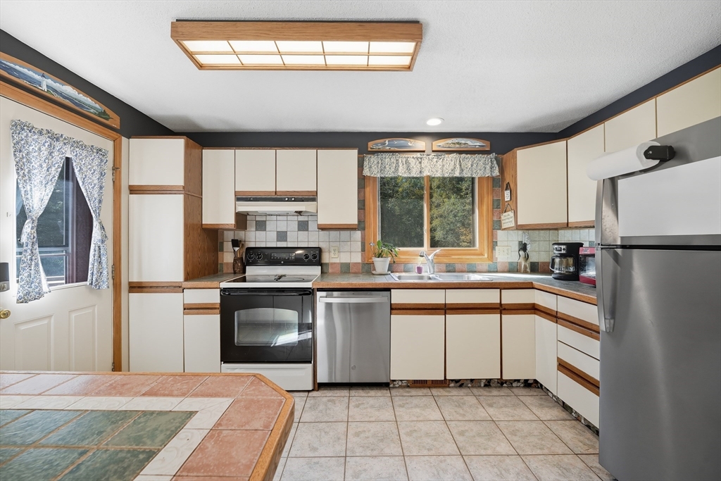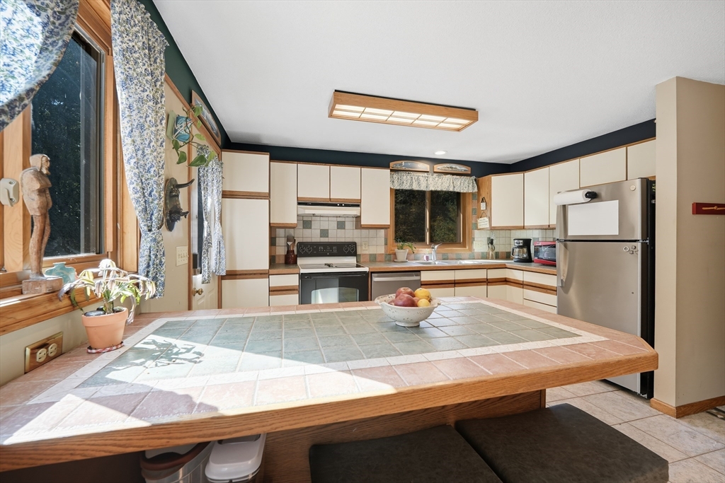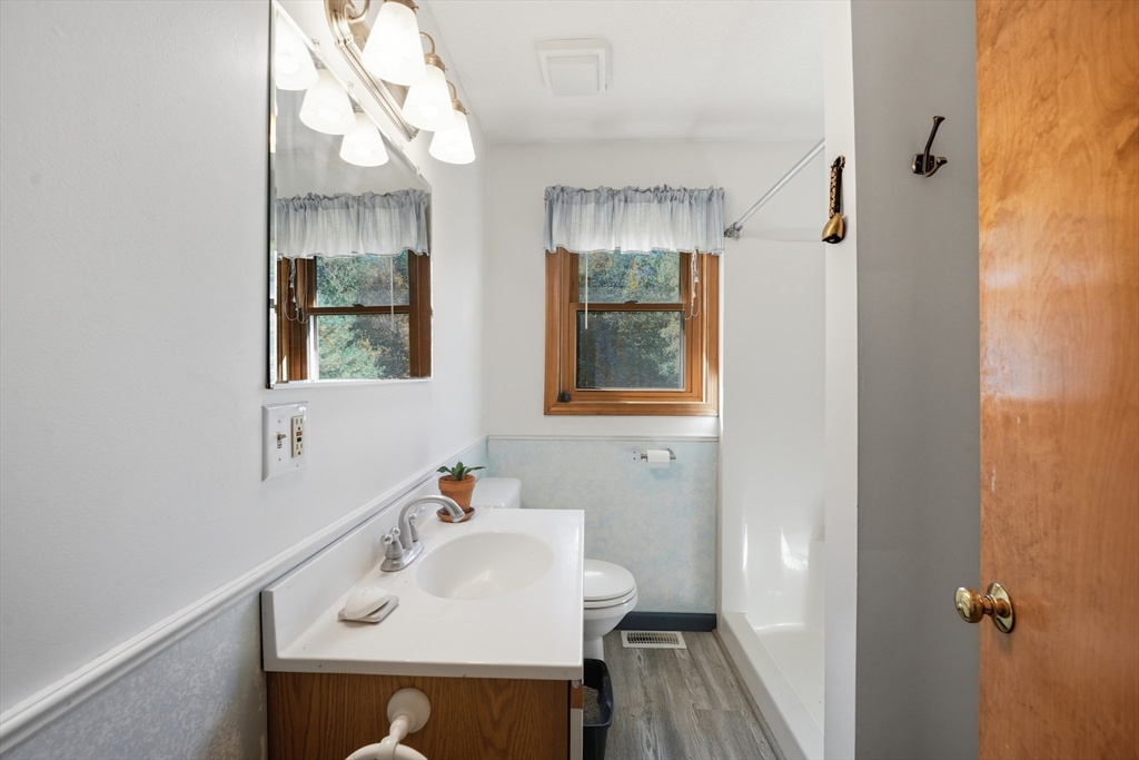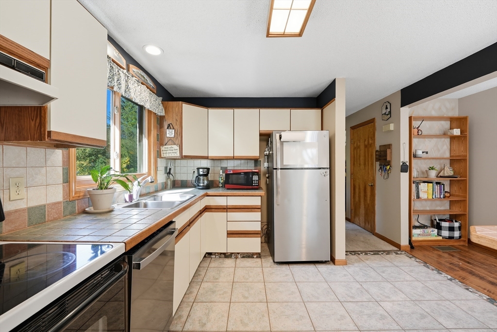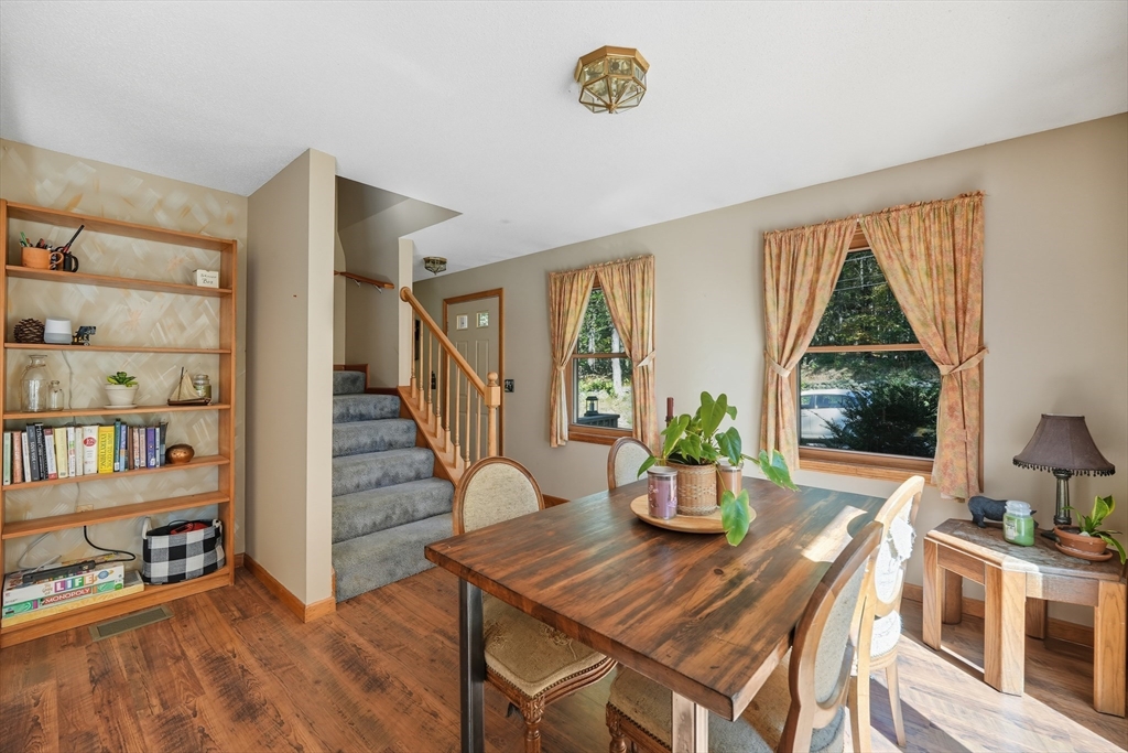 Tucked away on a private 3-acre wooded lot, this home offers the perfect blend of everyday living and retreat-like tranquility. A first-floor bedroom and full bath with walk-in shower provide ease and flexibility. Step outside to a large deck overlooking quiet grounds, or enjoy the walking trails winding through your own peaceful woods. Designed for both relaxation and everyday living, the home has been thoughtfully updated inside and out with a durable metal roof, refreshed bathrooms, newer water heater, upgraded electrical panels, and more. The natural setting provides privacy and tranquility, while its convenient location near Amherst, Belchertown, and surrounding towns ensures easy access to amenities, schools, and commuter routes. With a blend of modern improvements, inviting spaces, and serene surroundings, this property truly offers the best of both worlds.