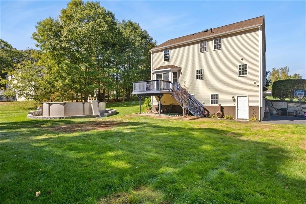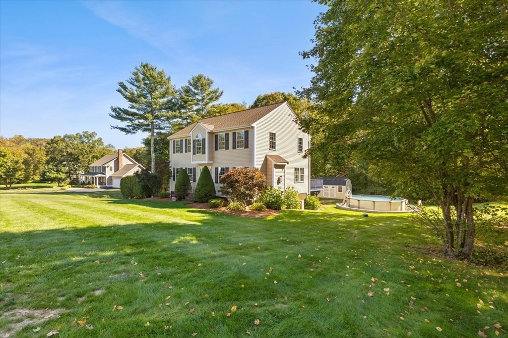 Welcome Home to 1945 Putters Way! Nestled in the sought-after Segregansett Estates, this Colonial gem is tucked away in a well-established cul-de-sac neighborhood offering peace, privacy, and a true sense of community. Boasting 3 bedrooms, 2.5 bathrooms and 1,976 sq. ft. of comfortable living space on a generous .80-acre lot, this home checks all the boxes. Enjoy a spacious kitchen with a slider to your deck that overlooks a beautifully landscaped, private backyard with an above-ground pool—perfect for entertaining. Stay cool with central air, and cozy up in winter with a Harmon pellet stove in the office and a gas fireplace in the living room. The large primary suite features it's own full bath and walk-in closet. Also offering 1st-floor laundry, a new roof (2019), and a tankless hot water heater (2018) add to the home's value and efficiency. A 2-car garage and walk-out basement offer extra space and convenience. Conveniently located right off Route 44!