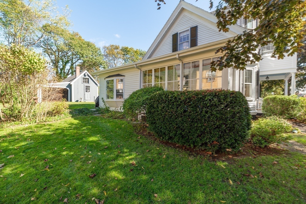 Open House Oct 11 & 12 - 11:30-2:00 AN APPROVED BUILDABLE LOT will accompany this distinctive Colonial Revival home, offering a rare combination of timeless architecture and unmatched opportunity in one of New England's most charming coastal villages. Perched on a quiet, sought-after street, within walking distance to beach, park, restaurants, school, and harbor - and just 40 minutes by train to Boston. Inside, you will find exquisite details, including moldings, wainscoting, built-in china cabinets, and a cozy gas fireplace living room, alongside a bright kitchen and a sun-filled family room which opens to a flagstone patio. A first-floor bdrm adds flexibility, while 3 additional bdrms & a full bath complete the upper level. An additional separate deeded 10,000 sq ft lot offers potential to expand the existing residence or create an additional dwelling. It further has a detached garage and an additional outbuilding. This property blends character, convenience, and possibilities.