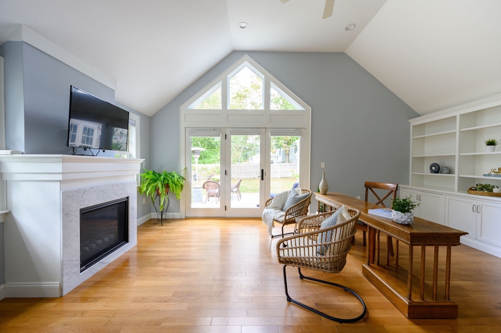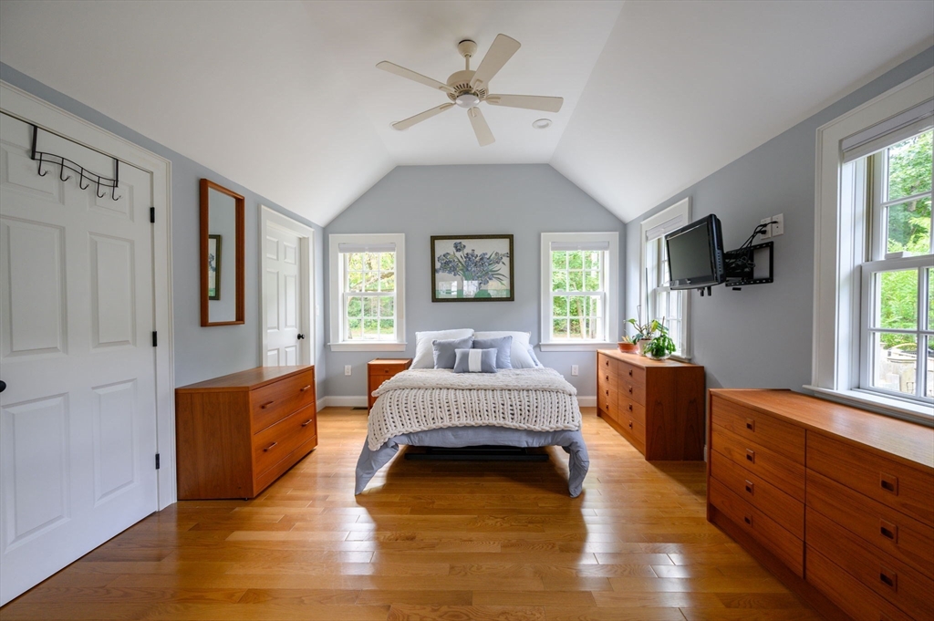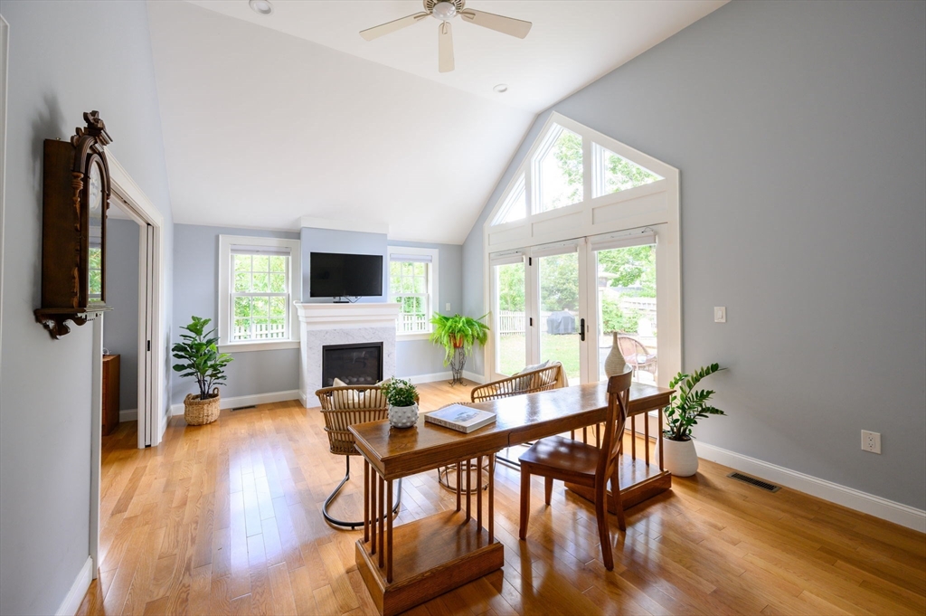 Set on a desirable corner lot in one of Hingham’s most loved neighborhoods, this expanded Cape offers 3,052 SF of versatile living space. The main home features 4 bedrooms and 1.5 baths, including a renovated kitchen with walk-in pantry, center island, stainless appliances, and hardwood floors. A sun-filled family room opens to a private fenced backyard with patio, complemented by a dining room and fireplaced living room. The finished lower level adds a family room/office, built-ins, laundry, and shower. One bedroom is on the first floor, with three upstairs, including a primary with dual walk-in closets. A 700 SF handicap accessible in-law apartment provides true one-level living with private entrance, kitchen, bedroom suite, cathedral-ceiling family room with fireplace, laundry, and slider to patio. Additional highlights: central AC, HumidEx system, ample storage, and thoughtful renovations blending modern comfort with timeless Cape style.