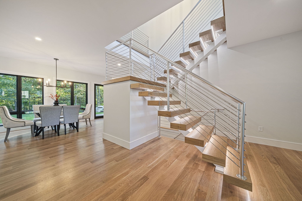 Open the door and prepare to be WOWED!!! This custom built craftsman style colonial is totally out of the ordinary. Open floor plan like no other . . .the floating staircase, custom designed gas fireplace, and the flow of this home just takes your breath away. Enjoy the custom kitchen with high end cabinets, stainless appliances, custom countertops and backsplash, and an island built for entertaining!! Steps away from the wet bar and custom built mud room. Enter the oversized garage or step out onto the deck overlooking a stone water feature/waterfall. A perfect spot to sit and reflect on your day. The floating staircase leads you up to an open loft (perfect library area or home office), and the main bedroom ~ decked out with a huge walk in closet and enormous luxury bath. Ahhhh . . . the soaking tub!!! Two more oversized bedrooms and with two full baths and a separate laundry room. Need more? Step down to the finished basement ~ think maybe an" in home movie theatre" would be perfect!