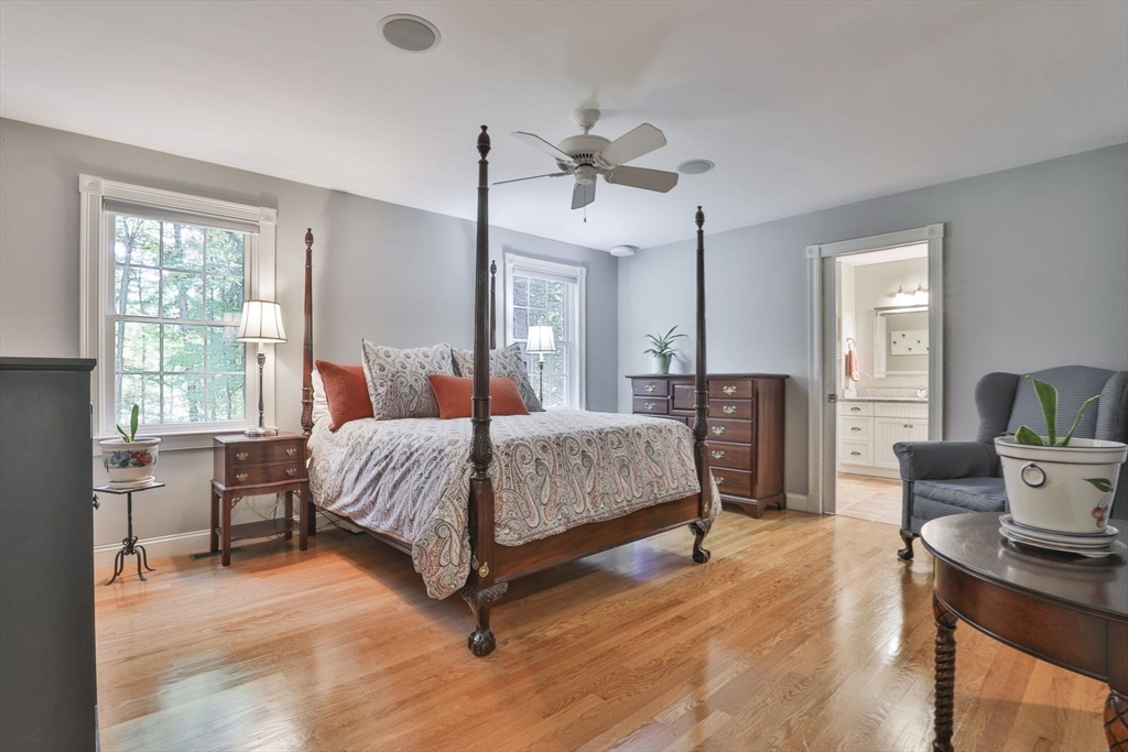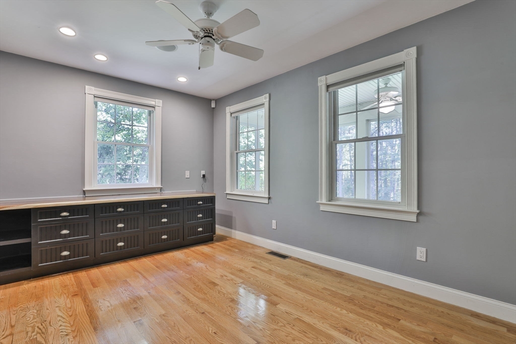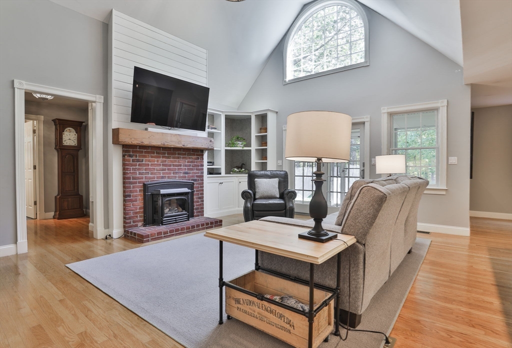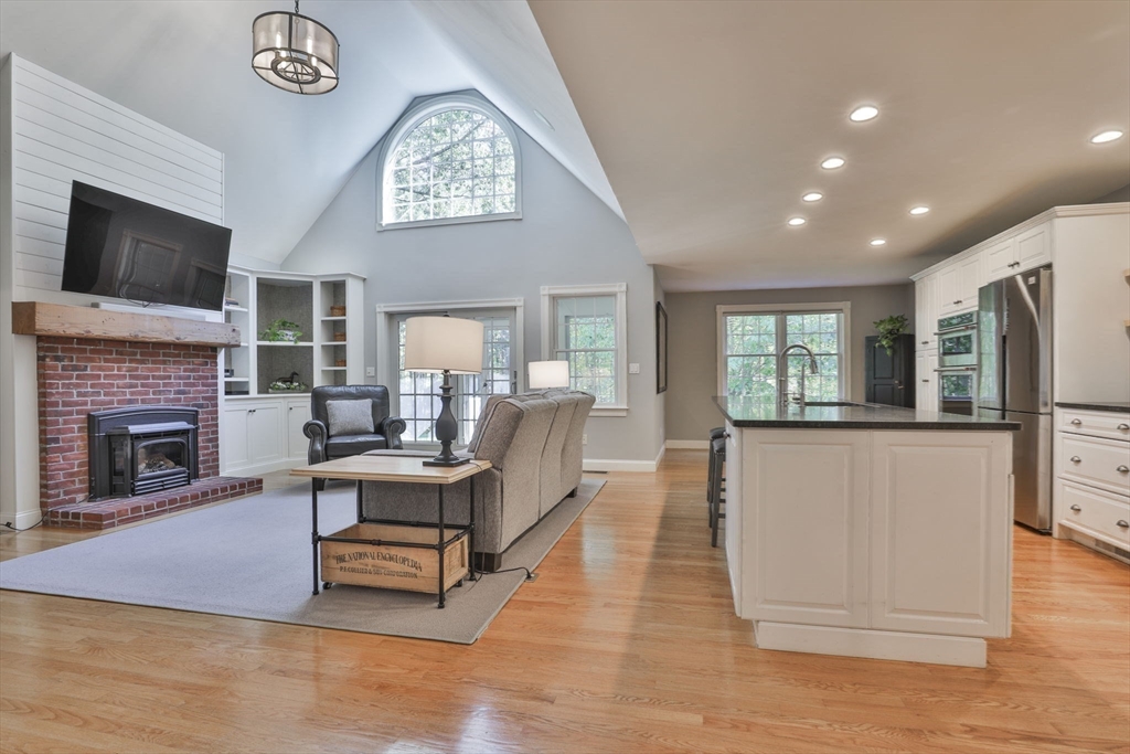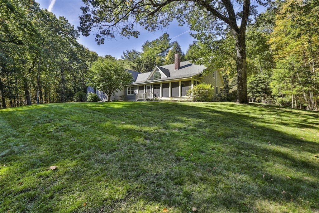 Custom 4-bedroom Cape, close to Gibbet Hill on a quiet dead-end street, offers exceptional FIRST-FLOOR living! From the rocking chair front porch, step into a freshly painted open design with hardwood floors & views through the home to the back screened porch. A vaulted family room boasts built-ins, shiplap, & a reclaimed mantel with gas fireplace. The cook stays connected in the spacious kitchen w/newer appliances, THERMADOR gas cooktop, black honed granite, & full walk-in pantry with a HIDDEN grocery door from the heated two-car garage. The private owner’s suite features a walk-in closet and custom-tiled bath with step-in shower, radiant floor, & laundry closet. Two bedrooms & another tiled bath complete the level. Upstairs is a 4th bedroom with walk-in closet & storage, plus access to a HUGE attic with expansion potential! A FULL basement offers more options. The 2.5+ acre lot includes a horseshoe drive, mature trees, private backyard, & meadow near Groton center, Routes 3 & 495!!