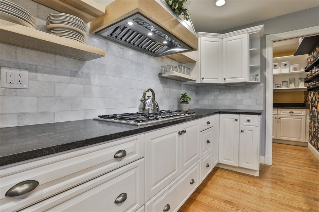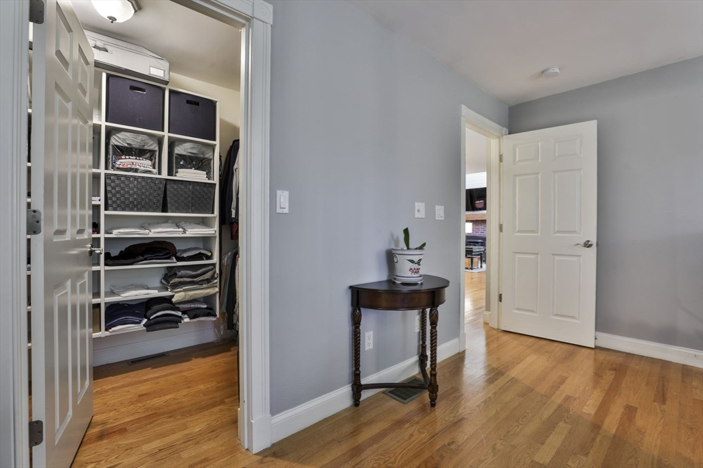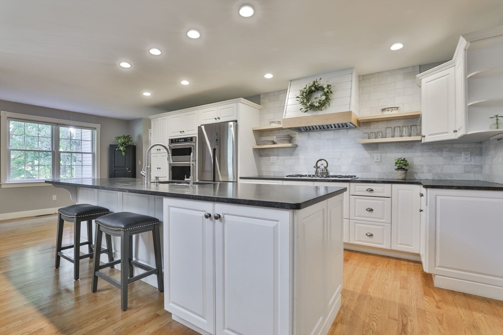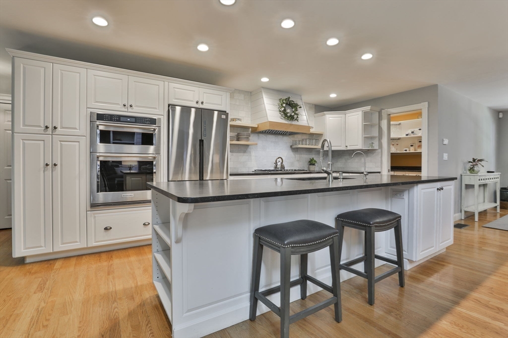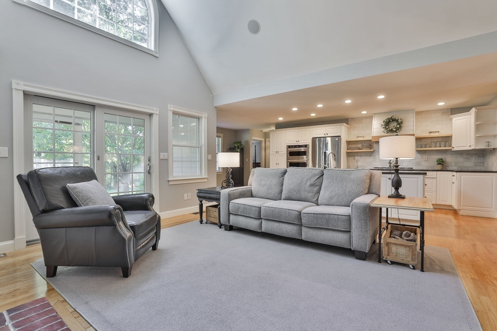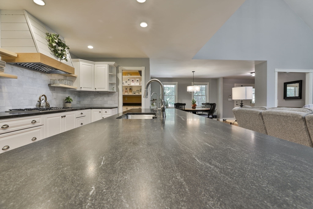 Custom 4-bedroom Cape, close to Gibbet Hill on a quiet dead-end street, offers exceptional FIRST-FLOOR living! From the rocking chair front porch, step into a freshly painted open design with hardwood floors & views through the home to the back screened porch. A vaulted family room boasts built-ins, shiplap, & a reclaimed mantel with gas fireplace. The cook stays connected in the spacious kitchen w/newer appliances, THERMADOR gas cooktop, black honed granite, & full walk-in pantry with a HIDDEN grocery door from the heated two-car garage. The private owner’s suite features a walk-in closet and custom-tiled bath with step-in shower, radiant floor, & laundry closet. Two bedrooms & another tiled bath complete the level. Upstairs is a 4th bedroom with walk-in closet & storage, plus access to a HUGE attic with expansion potential! A FULL basement offers more options. The 2.5+ acre lot includes a horseshoe drive, mature trees, private backyard, & meadow near Groton center, Routes 3 & 495!!