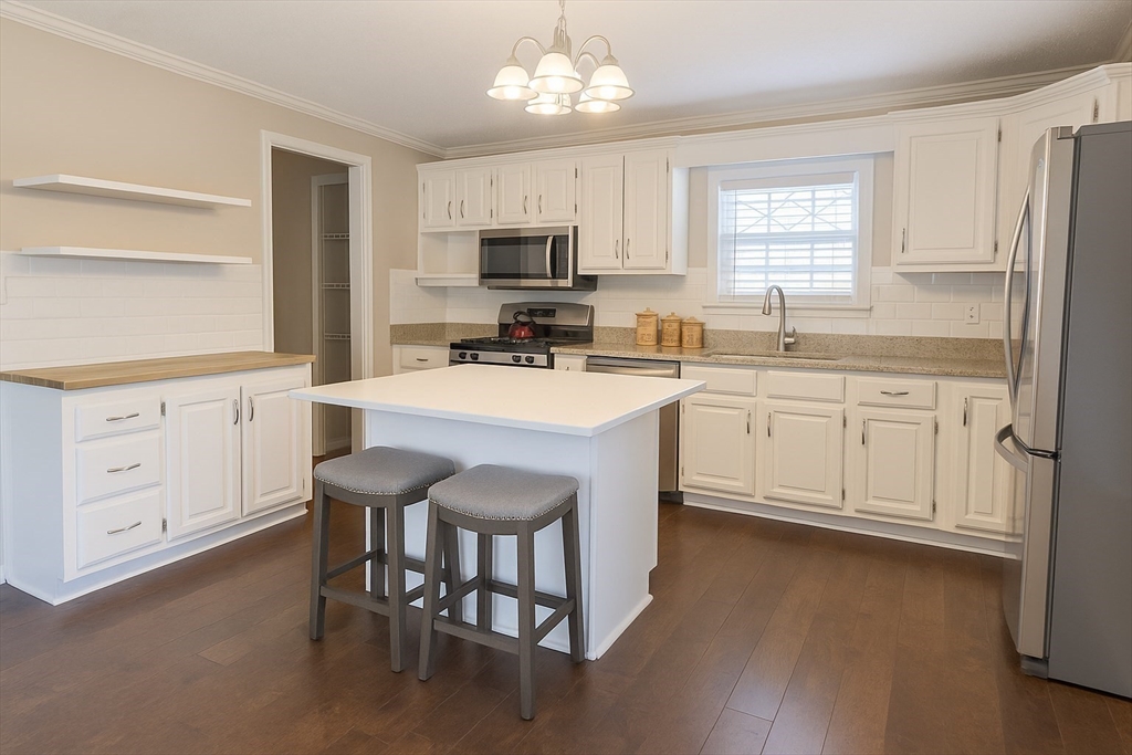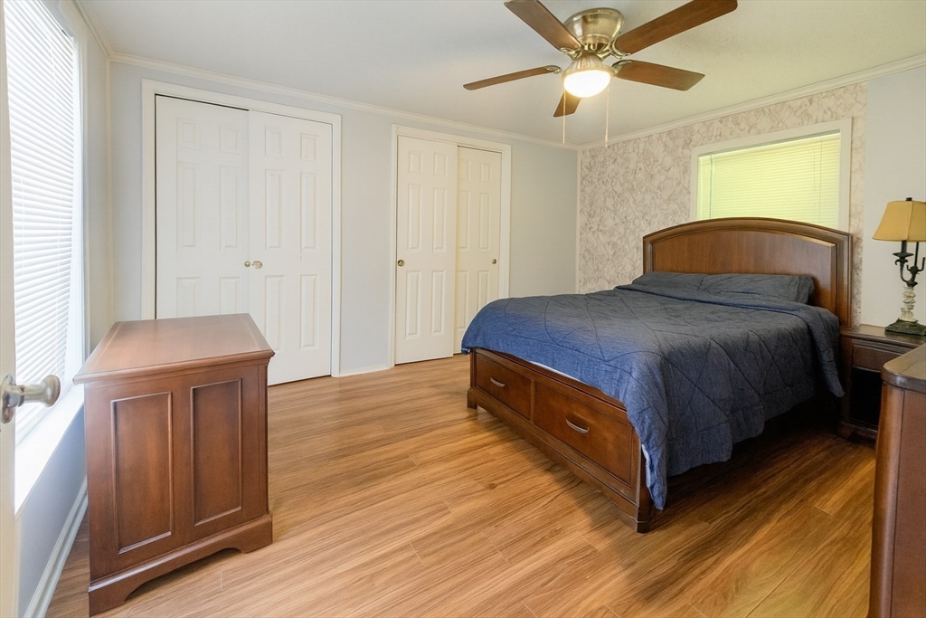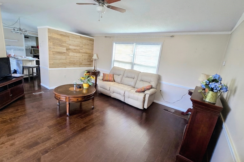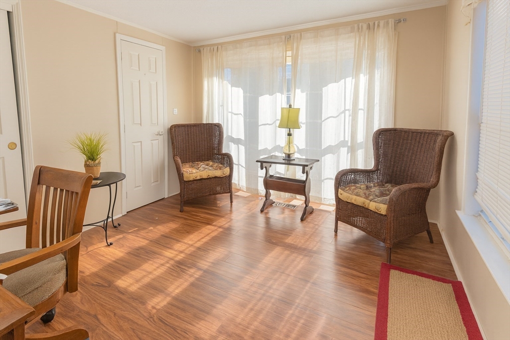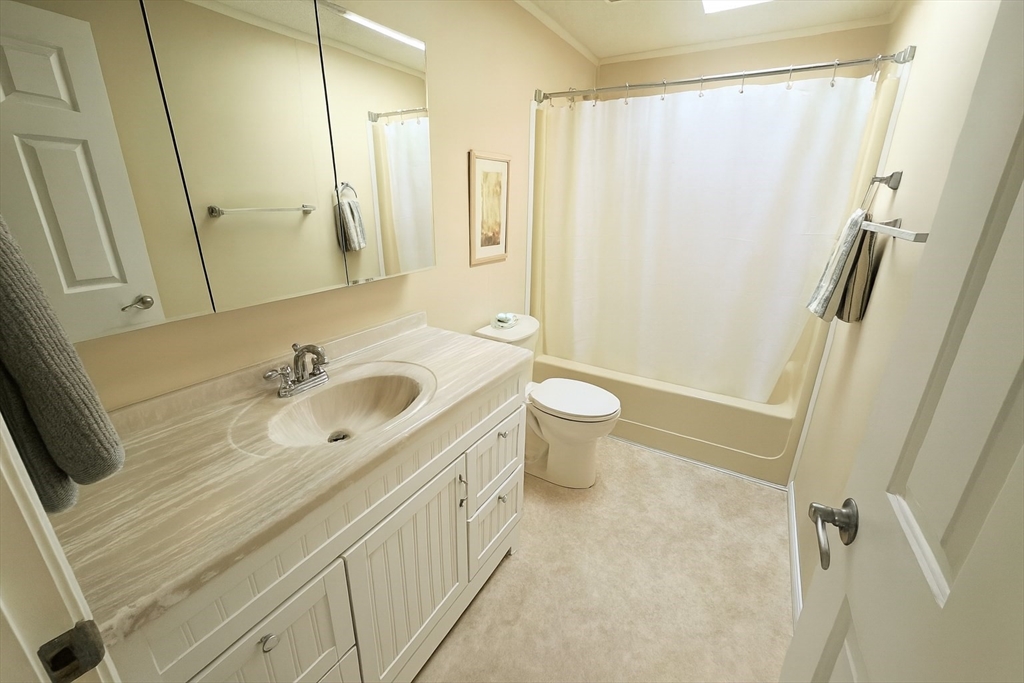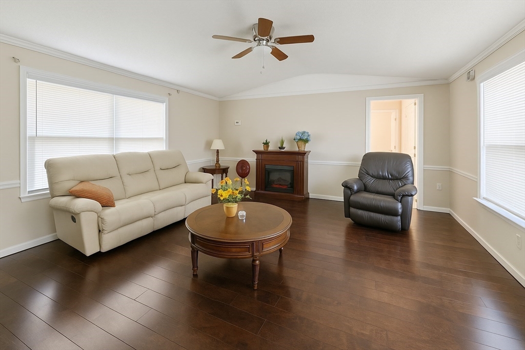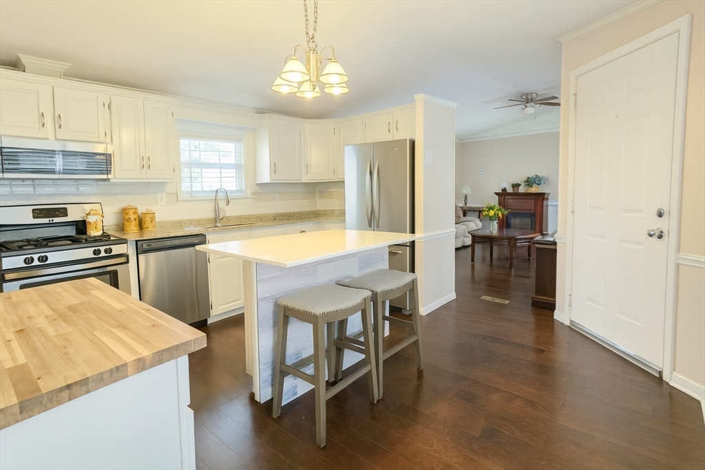 Welcome home to this spacious 2 bedroom, 1.5 bath home in the desirable Whispering Pines 55+ community! Enjoy completely updated one-level living featuring vaulted ceilings, a kitchen island with granite counters, skylights, and stainless steel appliances. Roof and central air were replaced within the past 5 years. Set on a large, private corner lot, this home offers a welcoming front porch and a covered back deck with Durabuilt roof—perfect for outdoor living. A recent Mass Save energy audit added $13,000 in upgrades including insulation, fan, lighting, and thermostats. Convenient laundry room with washer/dryer off the kitchen plus plenty of parking. Nothing left to do but move right in!