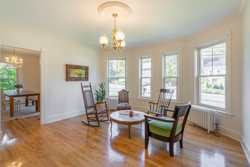 Exceptional Queen Anne Victorian... a residence that embodies the charm and character of days gone by but updated for todays life! Built in 1891,this beauty offers a unique opportunity to have what you want! Three+ spacious bedrooms with hardwood flooring, high ceilings & crown molding provide great space for rest and relaxation..The generous 2,488 square feet of living area provides a versatile canvas for creating spaces that suit your lifestyle. WAIT until you see the detached garage that will hold 4 cars, is heated and also has work space! The finished room overhead has multiple uses! Poised on over 1/2 acre on a corner lot with outdoor space that provides plenty of room for gardens & activities. A perfect blend of historical charm and modern potential! Possibilities to convert the 2nd floor of the garage to an ADU(accessory dwelling unit) plus the 2nd floor of the home also has it's own kitchen(another possibility)! Quick access to MA pike & other major routes!