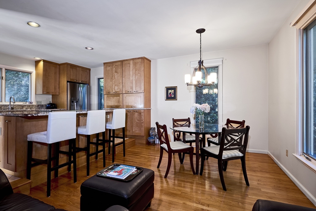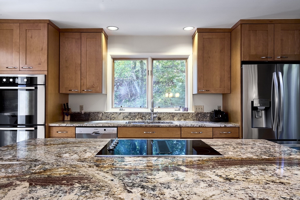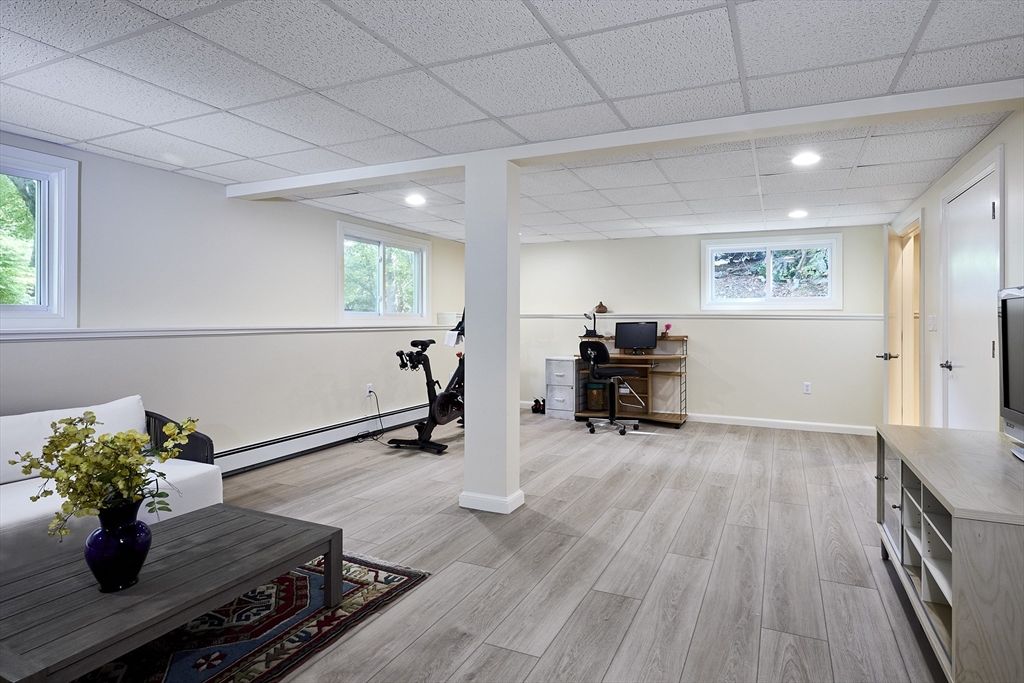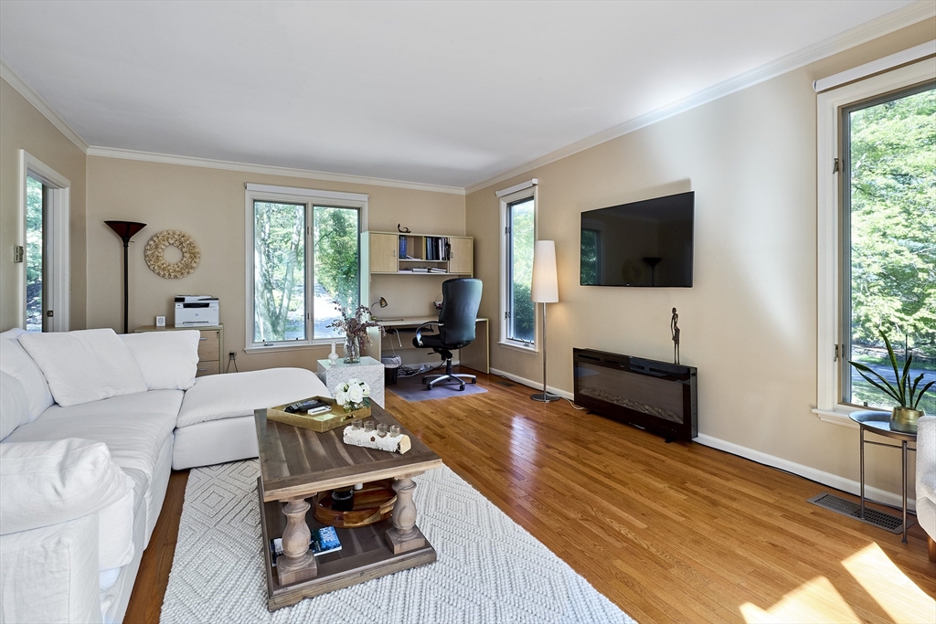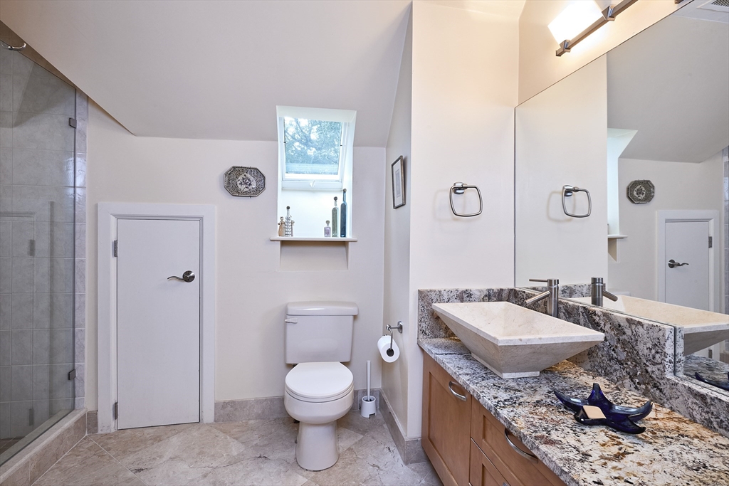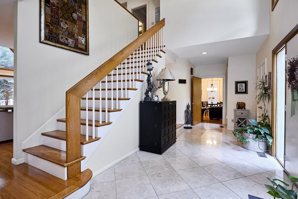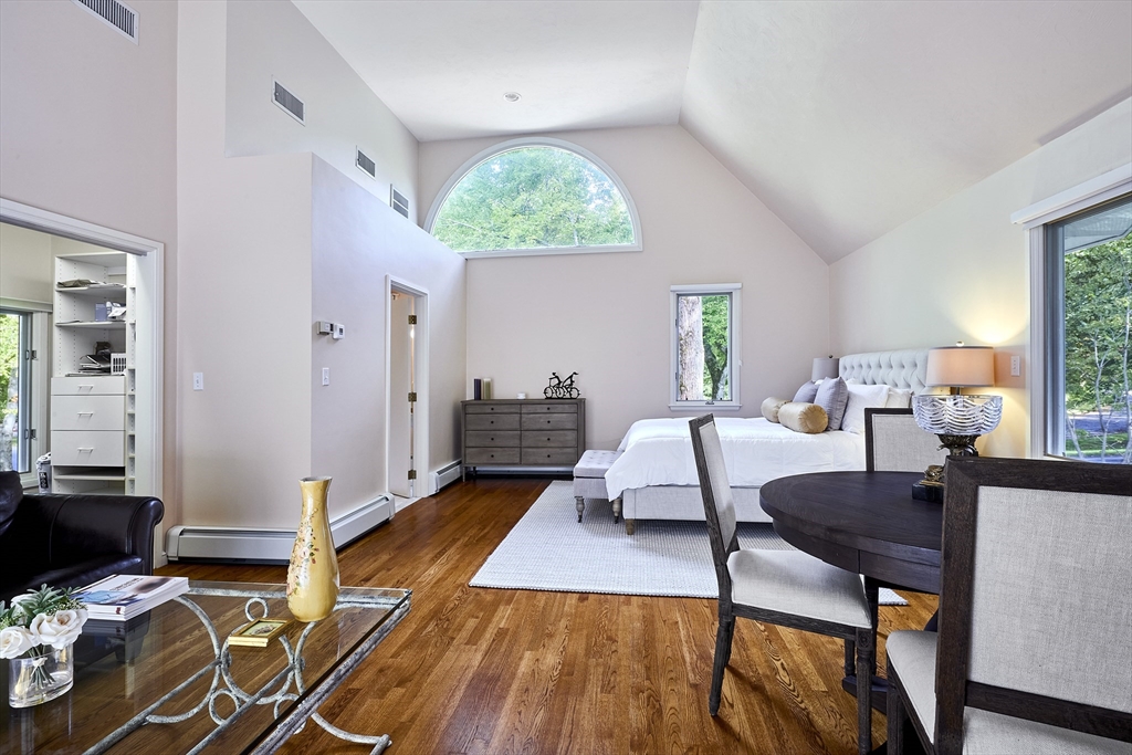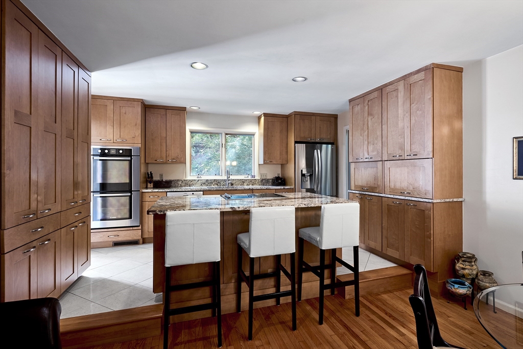 Nestled at 375 Atherton, Milton, Massachusetts, this contemporary single-family residence is in one of the most desirable neighborhood's in Milton. The living room presents an inviting space, enhanced by a fireplace that promises warmth and ambiance during cooler months. High and vaulted ceilings contribute to the room's expansive feel, while crown molding adds a touch of classic elegance. In the kitchen, culinary dreams become reality with its double oven, kitchen bar, and large kitchen island, all complemented by stone countertops and shaker cabinets. The stovetop stands ready for crafting delicious meals. The primary bedroom provides a unique retreat, brightened by a skylight that invites natural light. The bathroom features a tiled walk in shower, offering a spa-like experience. The property includes four full bathrooms and four bedrooms, providing ample space for comfortable living. In addition, there is a separately entranced au pair suite with a bedroom and full bath.