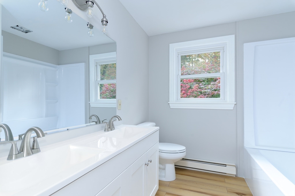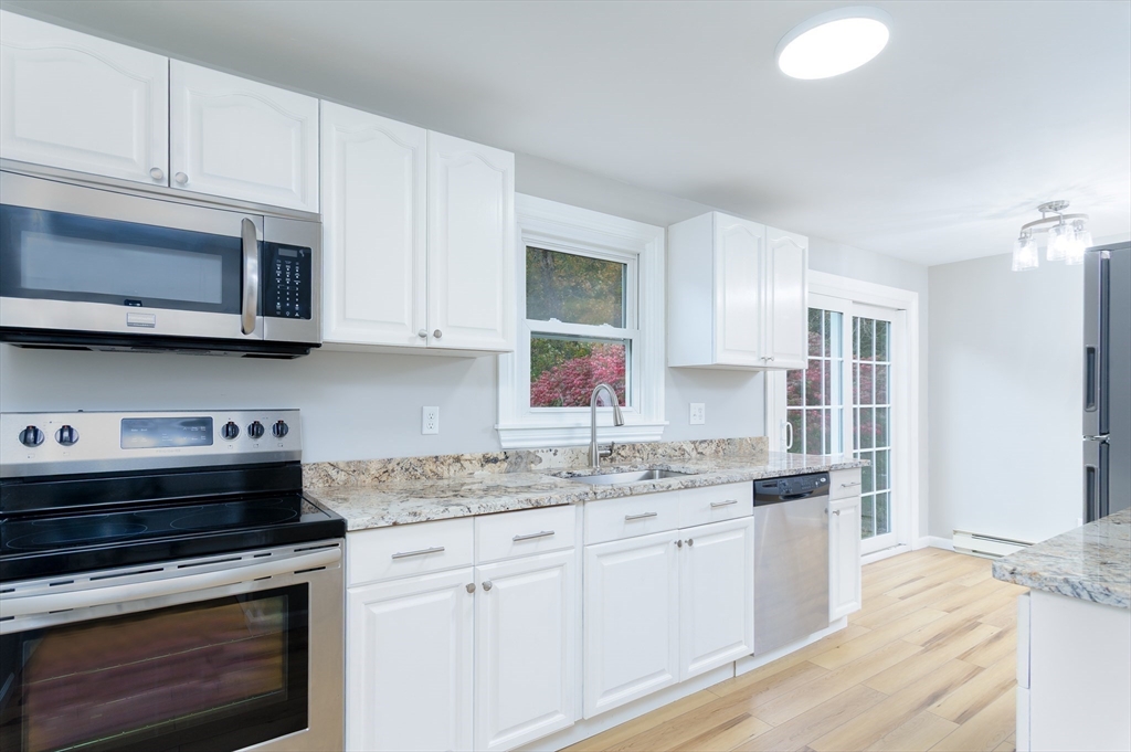 Location, location, location! One of Ware's nicest neighborhoods! Move right in to this recently renovated, affordable 3 BR ranch with an oversized garage on almost half an acre on a dead end st. It's only a few houses down from the Rail Trail and pathway to a shopping center for your convenience and enjoyment! Just off Rte 32 and close to Mass Pike for commuting. Enjoy the light, bright interior and low maintenance aspects of this home with so many renovations. The kitchen and bathroom are updated with tasteful finishes included granite countertops, stainless steel appliances and new bathroom fixtures. The fully fenced yard and dog kennel will be great for your furry friends! There is a second floor in the garage already framed for future use as an office, playroom or so many other possibilities! There are also expansion capabilities in the full basement. This checks so many boxes! Come to the open house this weekend Sat and Sun 1-3!
