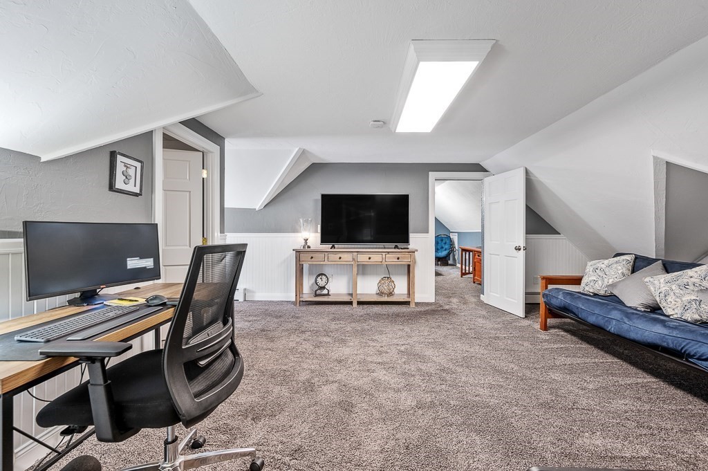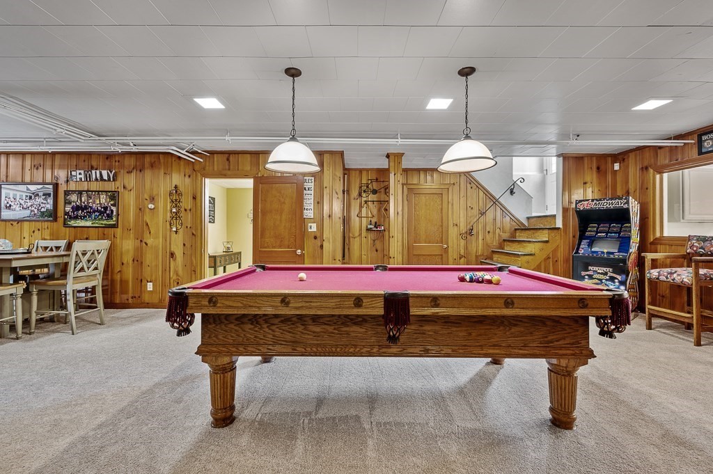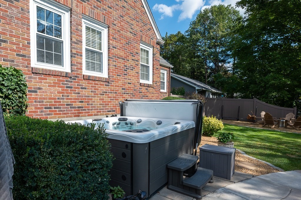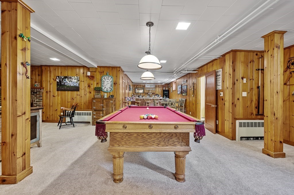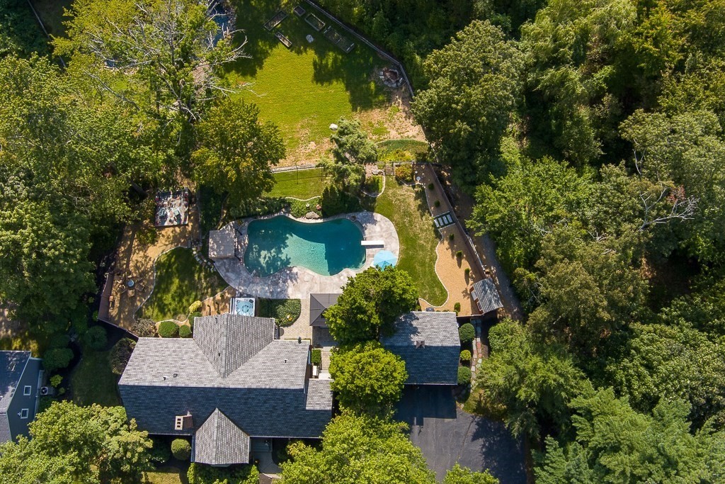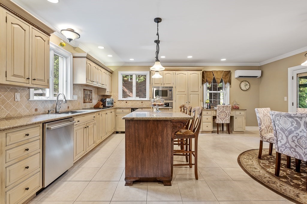 Welcome to your own private resort on sought-after Salisbury Street in Worcester! This stunning 4-bedroom, 2.5-bath home offers over 4,100 sq. ft. of finished space, including a versatile lower level. The beautifully landscaped ¾-acre lot features a sparkling in-ground pool with cabana, hot tub, and tranquil pond with fountain, surrounded by multiple outdoor living areas. Inside, the open-concept design includes a spacious kitchen flowing into the dining and living rooms, a first-floor master, updated bath with Jacuzzi tub, plus a second bedroom and office/den. Upstairs offers two additional bedrooms, a family room, and full bath. The fully finished lower level includes a family room with fireplace, game room, wet bar, bath, second kitchen, laundry, and abundant storage. A detached two-car garage with a stairway leading to additional storage and parking for 10 complete this exceptional property.