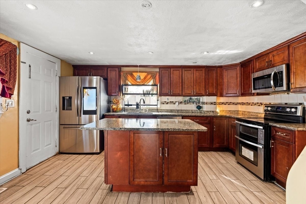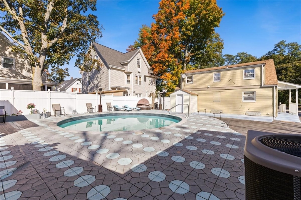 Welcome to this West Side inviting Cape home, awaiting new inhabitants. The kitchen is a culinary dream, featuring shaker cabinets complemented by stone countertops that offer both style and durability, complete with a backsplash that adds a touch of sophistication, and a large kitchen island to facilitate gatherings with family and friends. The outdoor living space extends the home's functionality, featuring a patio ideal for entertaining and creating a personal oasis. The property provides ample accommodation with four bedrooms and two full bathrooms, allowing for comfortable living. A two-car garage provides secure parking and additional storage. The private pool offers a refreshing escape during warm weather, nestled within a fenced backyard, ensuring seclusion. The inclusion of a shed provides practical storage for tools and outdoor equipment. A laundry room adds convenience for daily living. Come by, fall in love, and make an offer on your new home!
