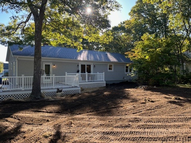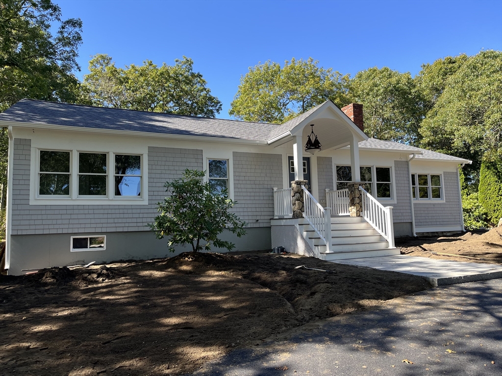 Excellent total renovation for this 1742 sq. ft. 3 bedroom, 2 bath Ranch with water views and deeded access right across the Street for possible boat mooring!! 3/4 mile to ocean beach on Nantucket Sound. This beautiful home is all situated on a .71 acre private lot in a very nice neighborhood. Some of the all new features included in this open floor plan home are a large open kitchen/dining and living are with gas fireplace and French door leading to the large rear deck, fully applianced kitchen with all stainless steel appliances and granite counter tops with marble backsplash and large island. Large primary bedroom with full bath with marble tile shower and rear door access to the rear deck, New roof, exterior paint, new covered front entry way, new circular driveway, all new gas hot air heating system with central A/C, new gas hot water tank, new 200 amp electric panel, 1st floor laundry in main bathroom, all high end vinyl flooring throughout, full landscaping package.
