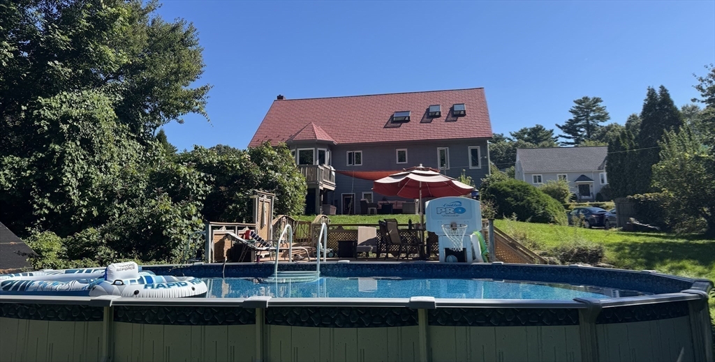 Pride of Ownership for 29+years in this multi-level beautifully maintained and updated family home with a two car oversized garage. A bright foyer with staircase to the main level that features open concept fireplaced Living Room, formal Dining Room with slider to a cozy deck for grilling and relaxing. A bright Eat in Kitchen with custom built- ins and SS appliances, also three Bedrooms and two full Bathrooms. The second level features a 30x14 Loft/Den ,freshly painted with a new carpet, a great space for playroom, office, TV room, many possibilities. The private Main Bedroom Suite features a walk in dressing room with custom cabinets, Relax in the full Bathroom with jet tub, skylight and shower stall. The natural light from the custom windows and skylights creates a peaceful space to rest, plenty of room for furnishings and more. The huge yard features a large patio w/sunshade, above ground pool with deck, extra large shed, Solar Panels .Min to Rte 138, Easton,Train,Store