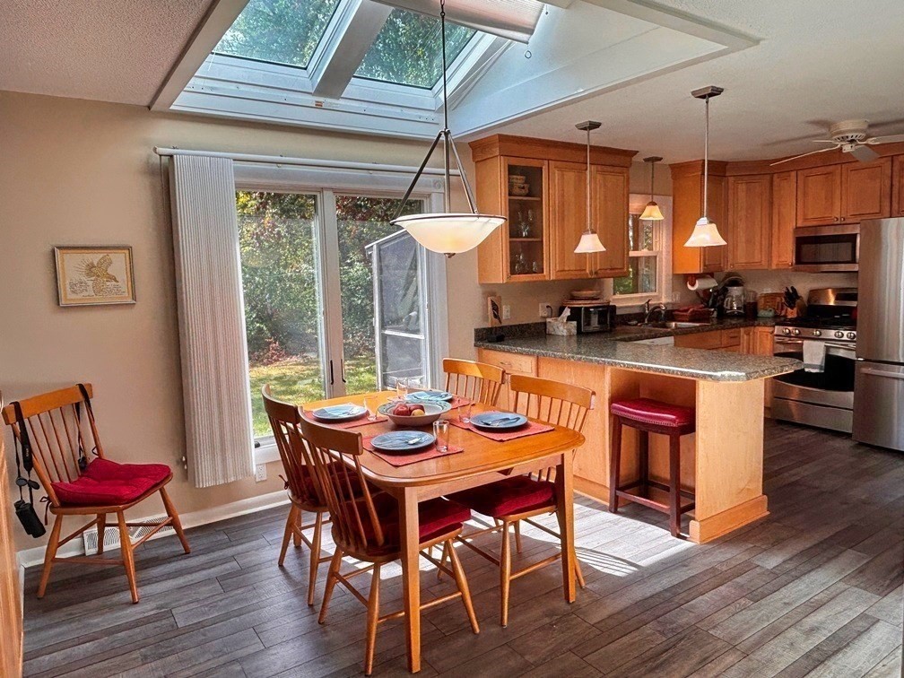 Everything you need on one floor! This 3-bedrm, 2-bath home is located in the charming village of Monument Beach (aka Mo Beach) in Bourne. The primary suite features an en-suite bath. Updated kitchen offers a pantry and peninsula w/counter seating. Skylights fill the open floor plan w/natural light in the dining area, Spacious full basement could easily be finished for more living space The lg composite deck, including a screened-in section, makes outdoor living a breeze. Outdoor shower will be used all summer long! Additional highlights include a whole-house generator, central vacuum, central air, and new 3 bedrm septic system to be installed prior to closing. Just over a mile to Monument Beach ($25 resident sticker required) and Chester Park Recreation Area with tennis courts, baseball diamond and playground, plus local favorites like Whistle Stop Ice Cream & Lobster Trap nearby. Don’t miss the video tour! Open House Sun, Oct 2, 11:00–12:30. Offer deadline is Mon, Oct 13 @ 2 pm.