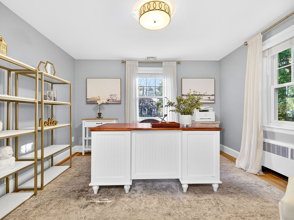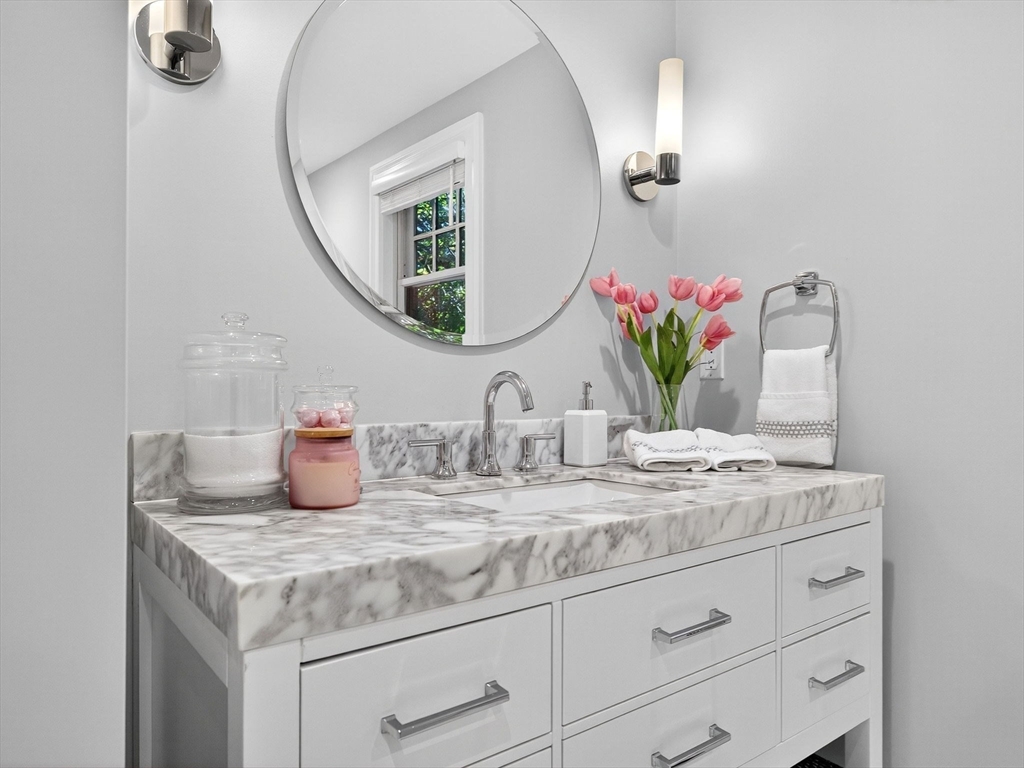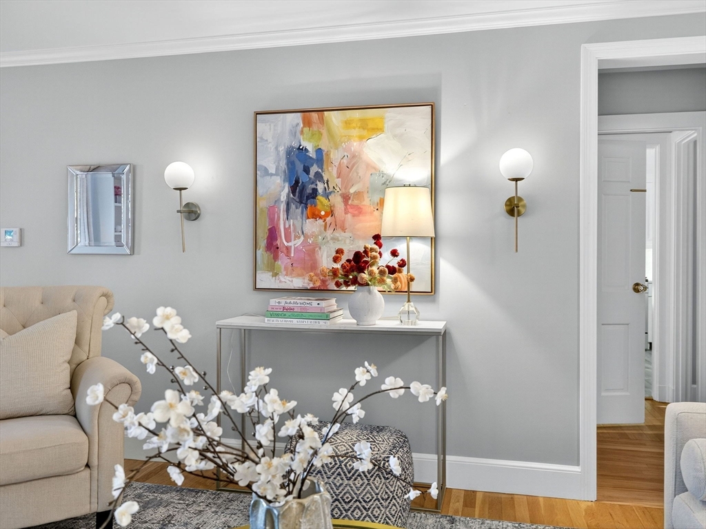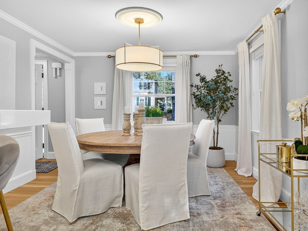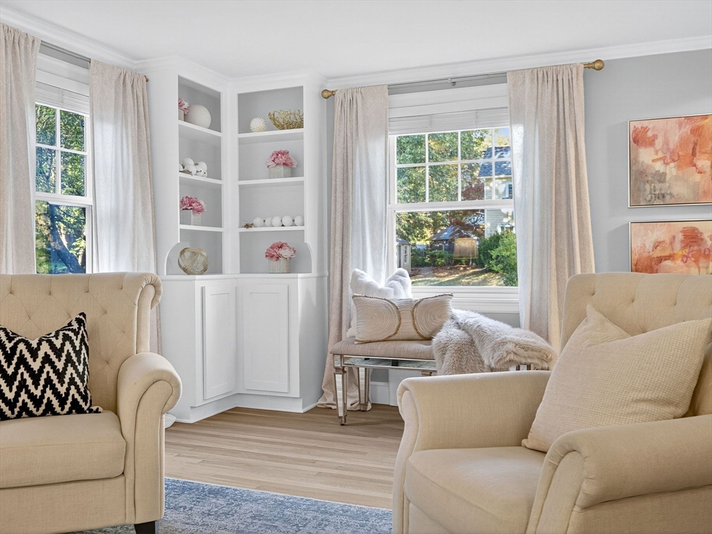 Welcome to this sun-filled center-entrance Colonial, perfectly situated on a private cul-de-sac just minutes from Linden Square, the train, shopping, and top-rated schools in downtown Wellesley. This charming three-bedroom home features hardwood floors throughout, renovated bathrooms, and an updated eat-in kitchen that opens seamlessly to dining room. Spacious front to back family living room with fireplace which opens to amazing 3 season sunroom. Oversized replaced windows invite abundant natural light. The second-floor features three generously sized bedrooms, including a primary suite with an expansive walk-in closet. The finished basement is perfect for an additional living room, playroom or home gym, along with ample storage. Outside, enjoy a level, fenced-in side and backyard surrounded by mature landscaping. A one-car garage completes this move-in-ready home in this walk to everything sought-after location.