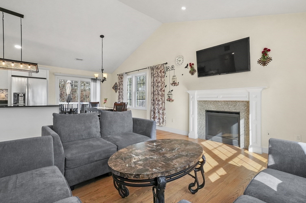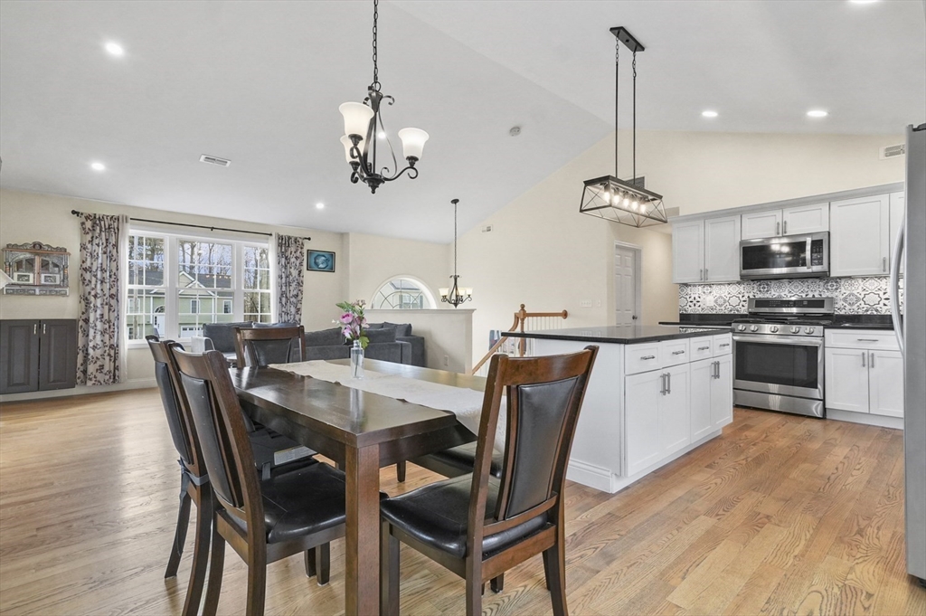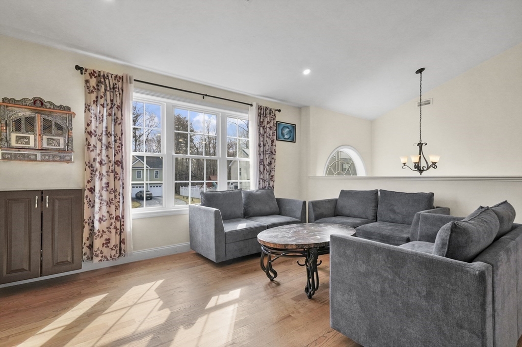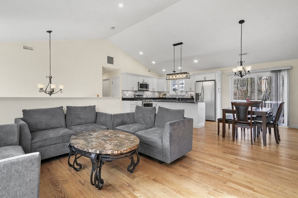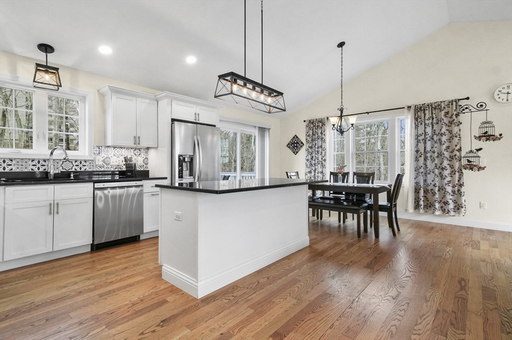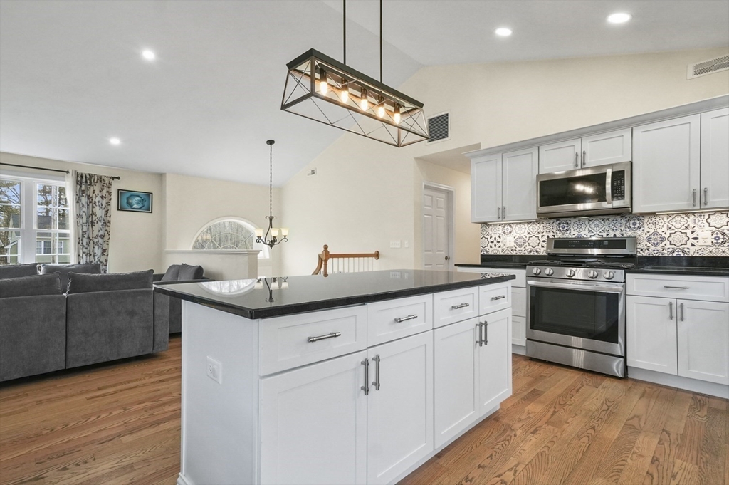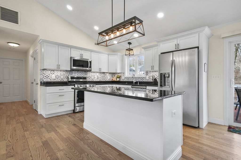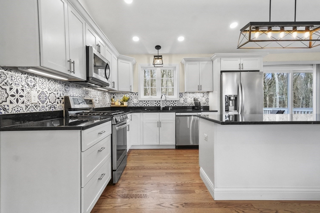 Welcome home to this meticulous 3BR, 3BA split level home nestled at the end of a quiet cul-de-sac next to conservation land. The main level boasts gleaming hardwoods throughout & an open-concept layout, where the LR, DR & kitchen flow seamlessly beneath a soaring vaulted ceiling. Curl up w a book by the propane fireplace in the LR or cook w ease in the well-appointed kitchen w a center island, granite counters, a propane range & dining area w slider access to the 12' x 20' deck. The large yard features garden areas & great space for BBQs & backyard games! This level also offers 2 sun-filled BRs, including a primary w a large walk-in closet & private en-suite bath. A 2nd full BA just off the hallways completes this level. The above grade LL provides even more living space w a generous FR, the 3rd BR, a full bath & laundry as well as interior access to the 2-car garage. This is a great location w easy access to restaurants, shops & highways.