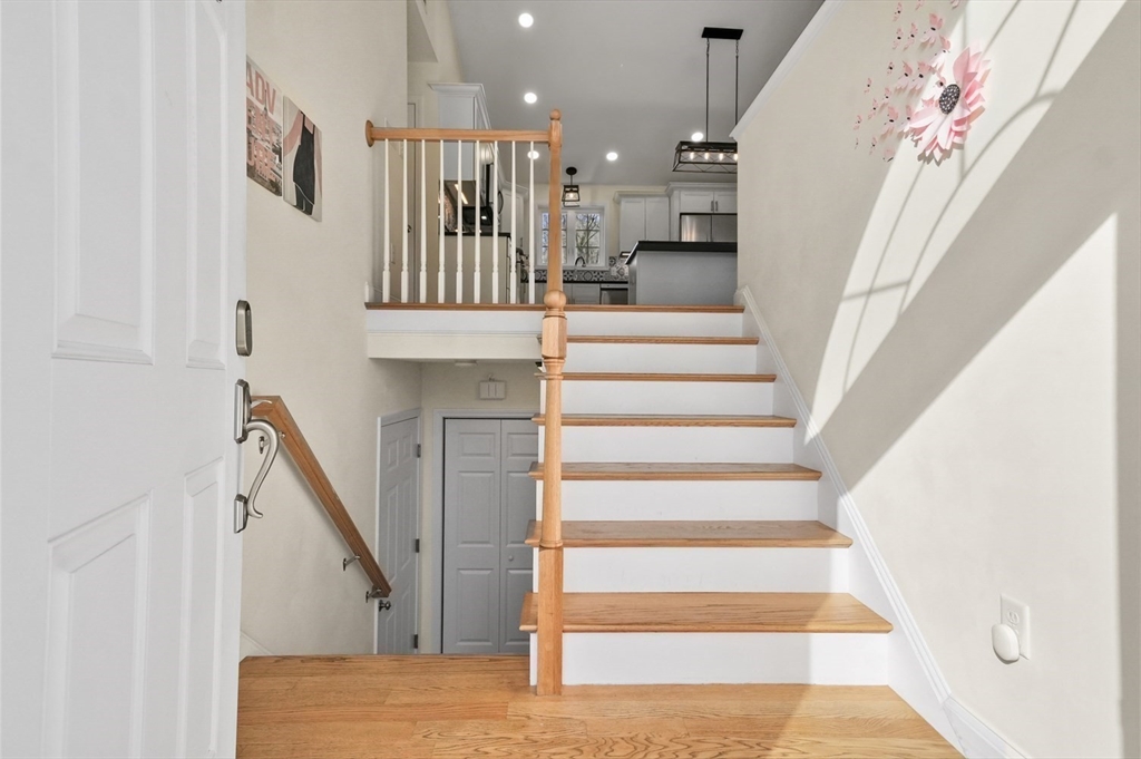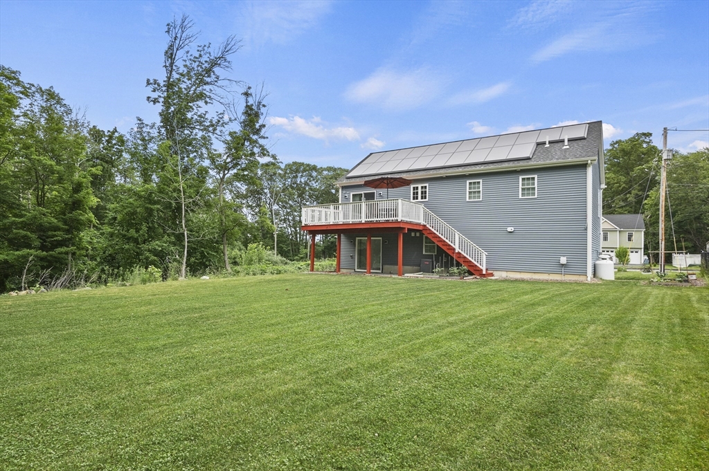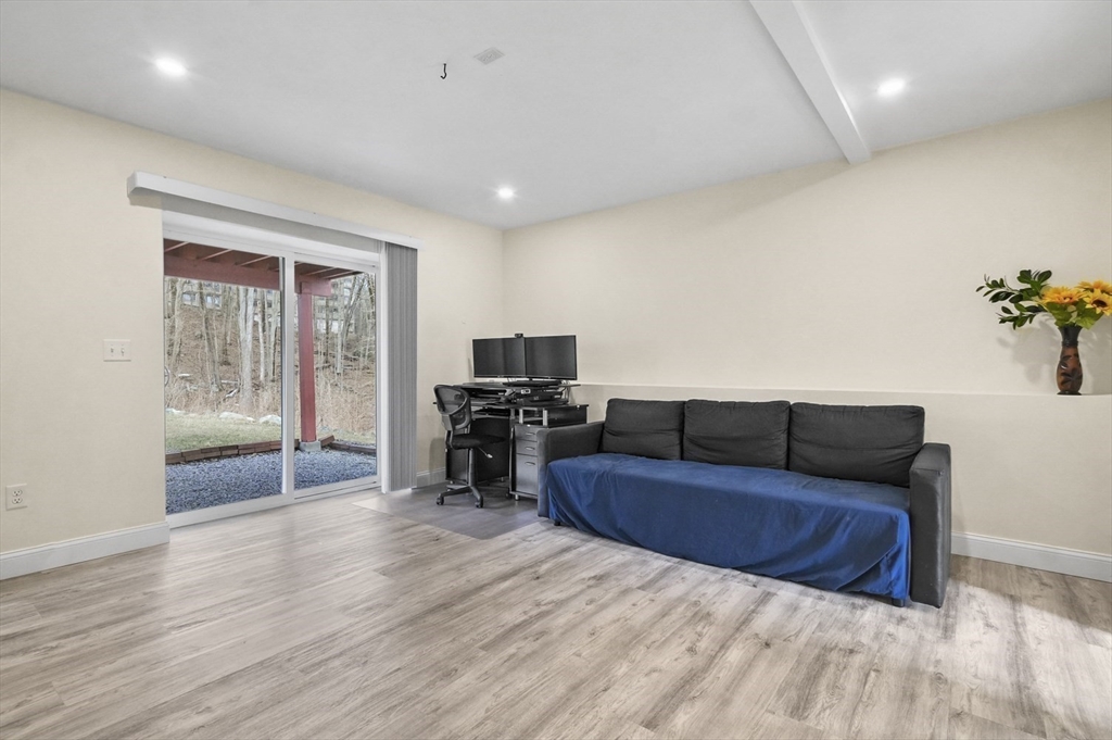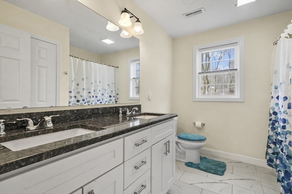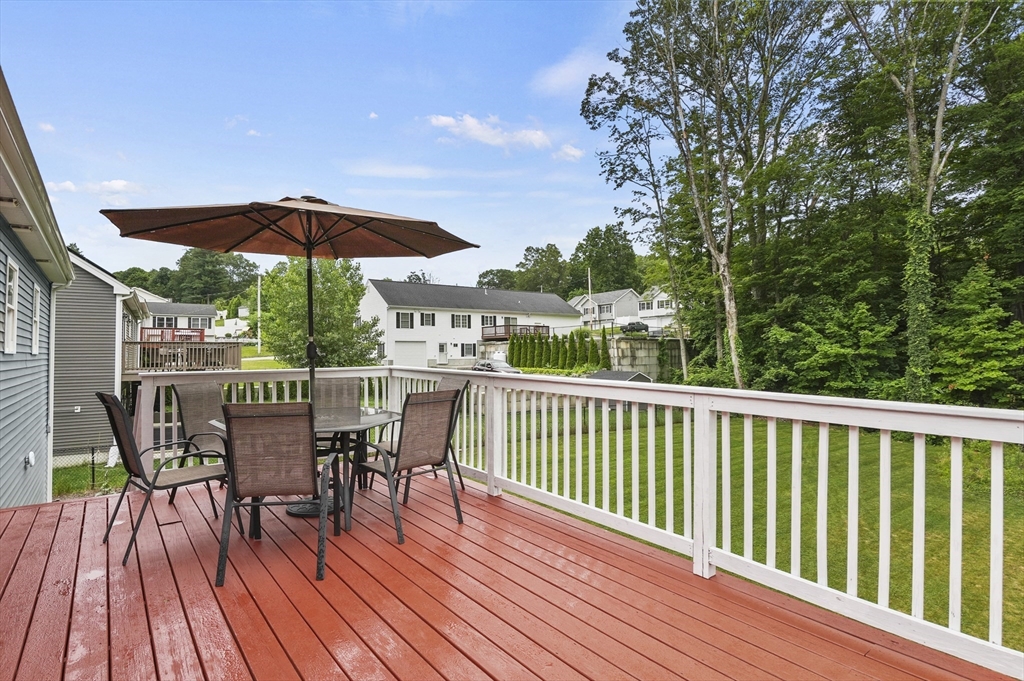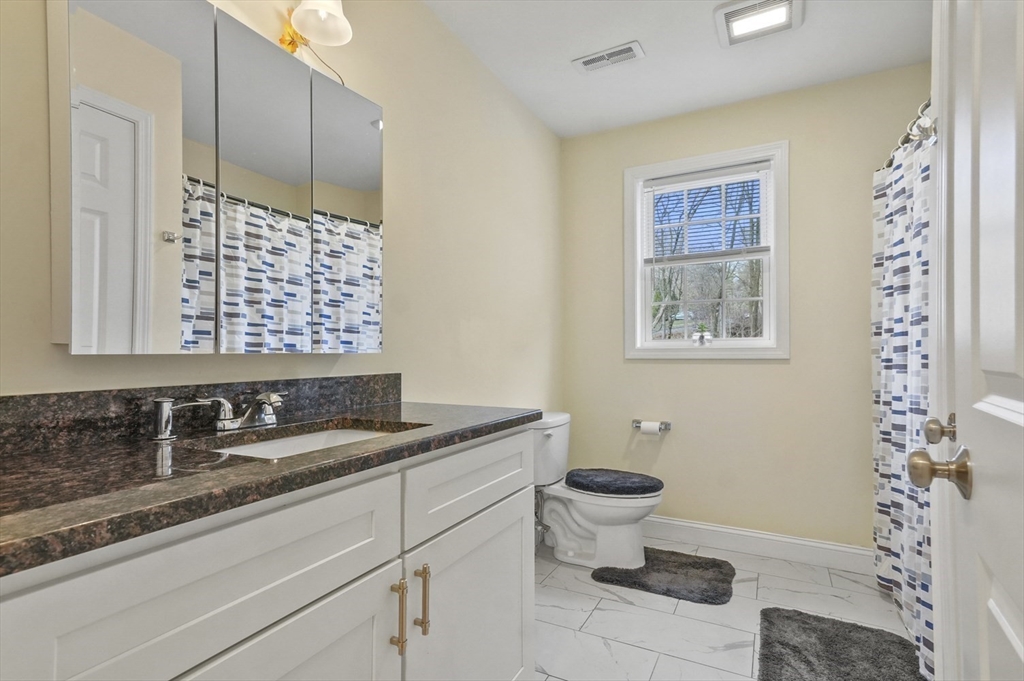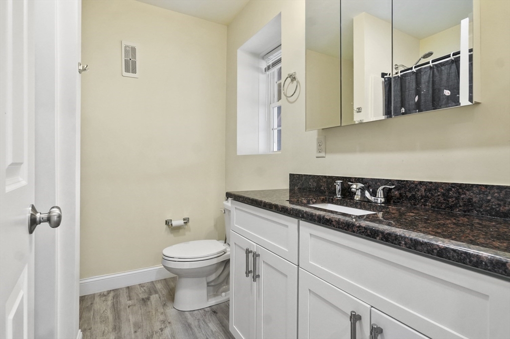 Welcome home to this meticulous 3BR, 3BA split level home nestled at the end of a quiet cul-de-sac next to conservation land. The main level boasts gleaming hardwoods throughout & an open-concept layout, where the LR, DR & kitchen flow seamlessly beneath a soaring vaulted ceiling. Curl up w a book by the propane fireplace in the LR or cook w ease in the well-appointed kitchen w a center island, granite counters, a propane range & dining area w slider access to the 12' x 20' deck. The large yard features garden areas & great space for BBQs & backyard games! This level also offers 2 sun-filled BRs, including a primary w a large walk-in closet & private en-suite bath. A 2nd full BA just off the hallways completes this level. The above grade LL provides even more living space w a generous FR, the 3rd BR, a full bath & laundry as well as interior access to the 2-car garage. This is a great location w easy access to restaurants, shops & highways.