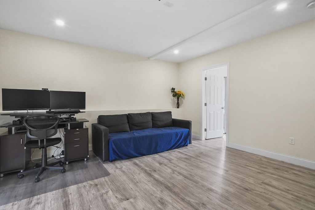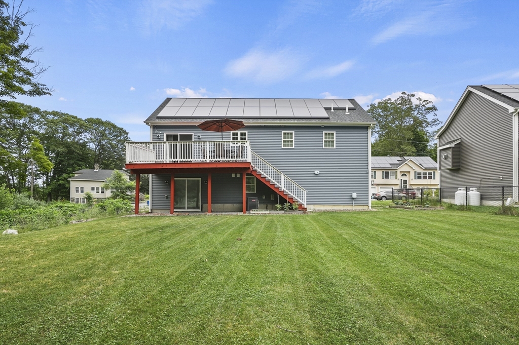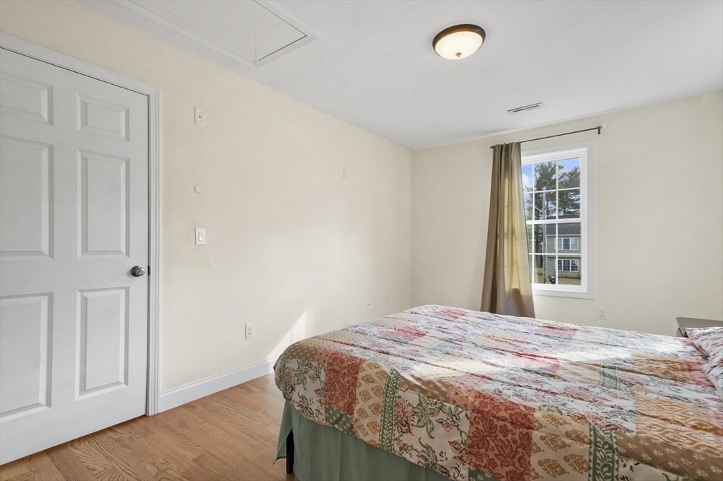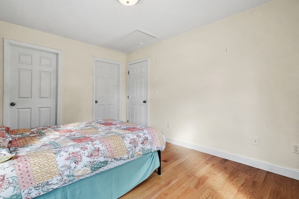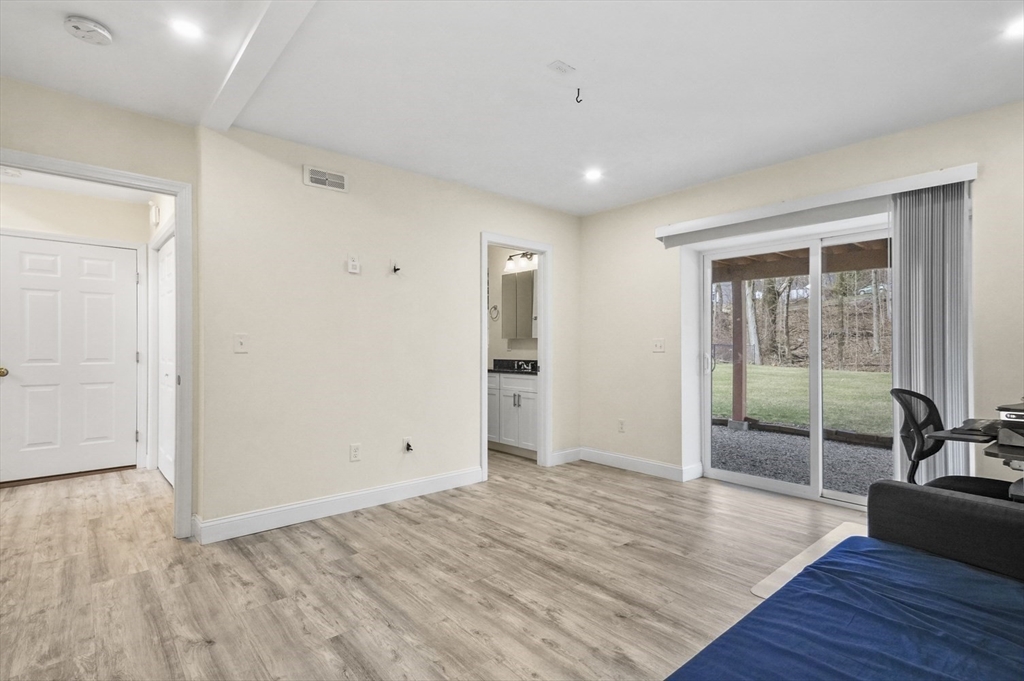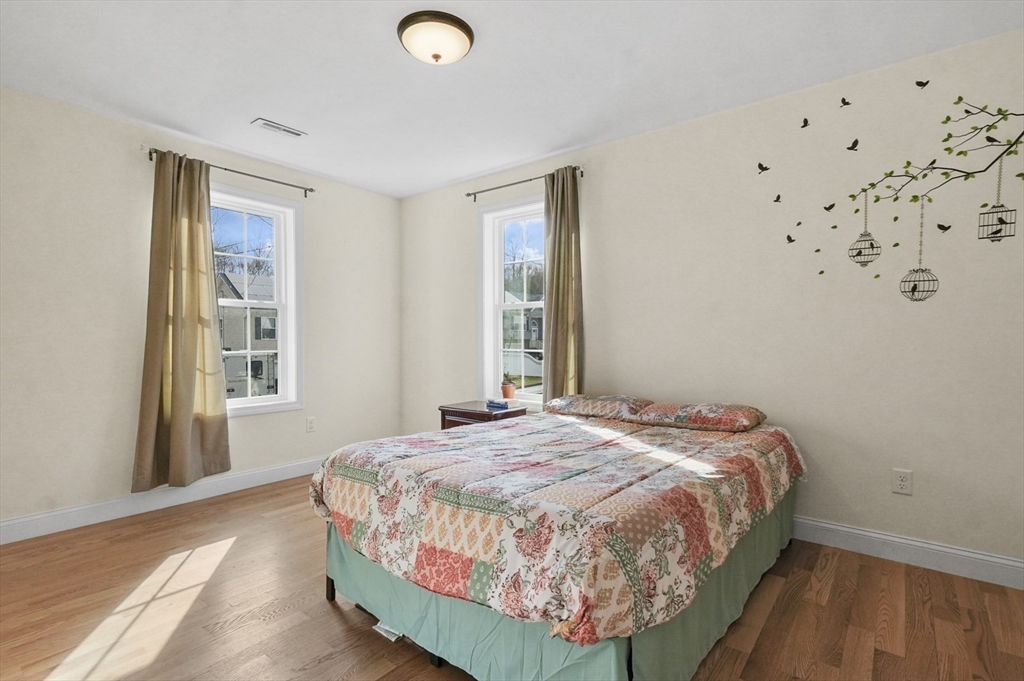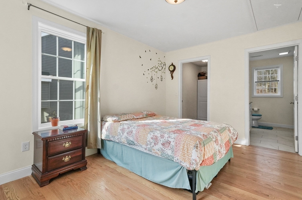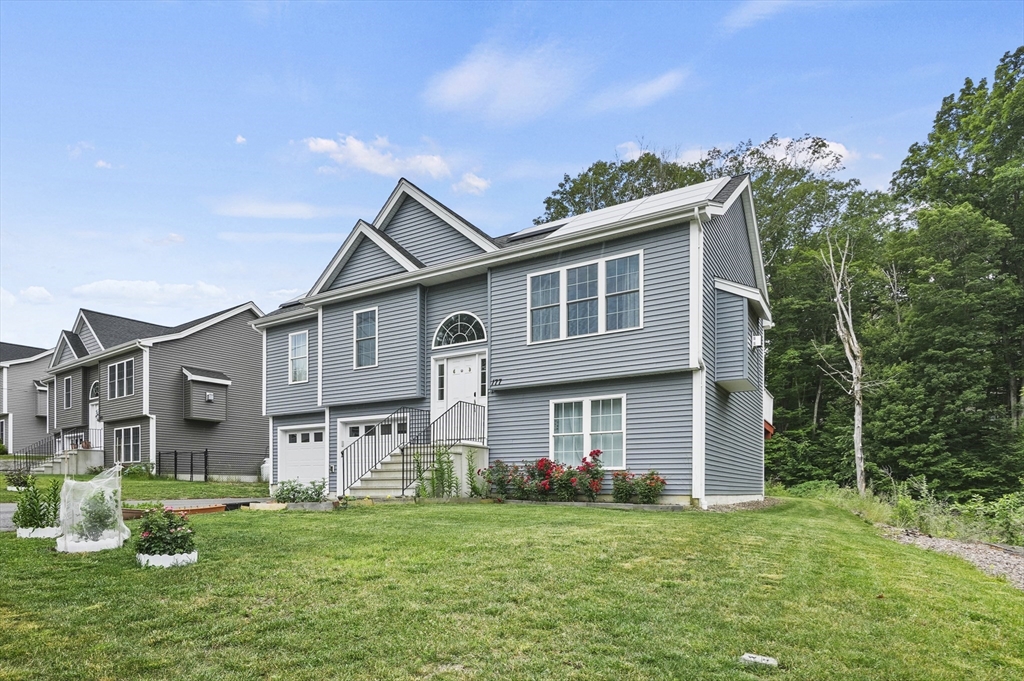 Welcome home to this meticulous 3BR, 3BA split level home nestled at the end of a quiet cul-de-sac next to conservation land. The main level boasts gleaming hardwoods throughout & an open-concept layout, where the LR, DR & kitchen flow seamlessly beneath a soaring vaulted ceiling. Curl up w a book by the propane fireplace in the LR or cook w ease in the well-appointed kitchen w a center island, granite counters, a propane range & dining area w slider access to the 12' x 20' deck. The large yard features garden areas & great space for BBQs & backyard games! This level also offers 2 sun-filled BRs, including a primary w a large walk-in closet & private en-suite bath. A 2nd full BA just off the hallways completes this level. The above grade LL provides even more living space w a generous FR, the 3rd BR, a full bath & laundry as well as interior access to the 2-car garage. This is a great location w easy access to restaurants, shops & highways.