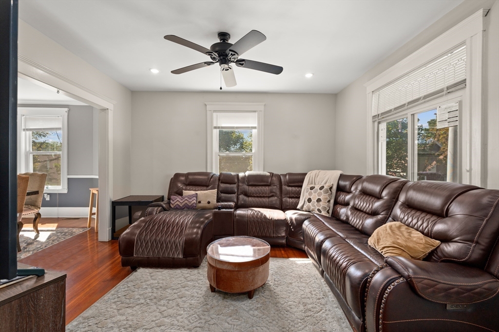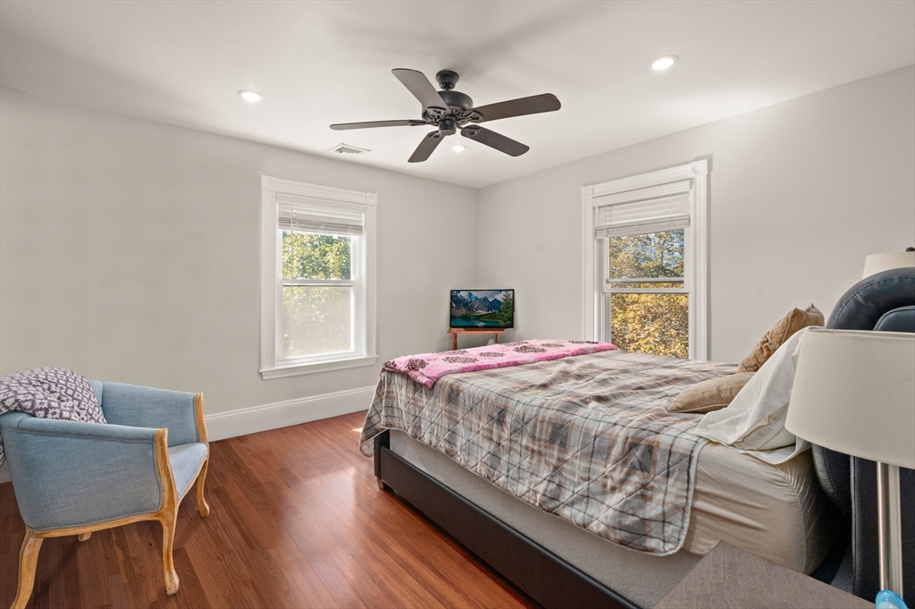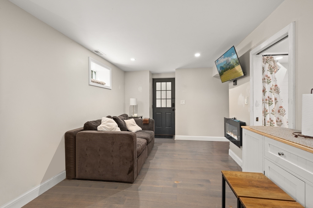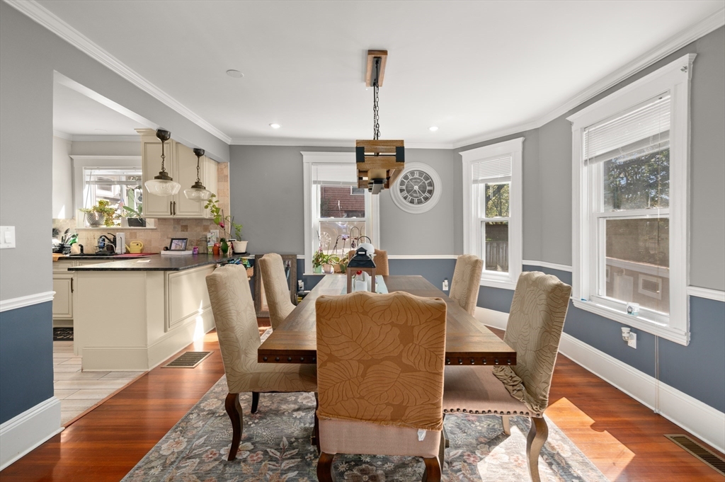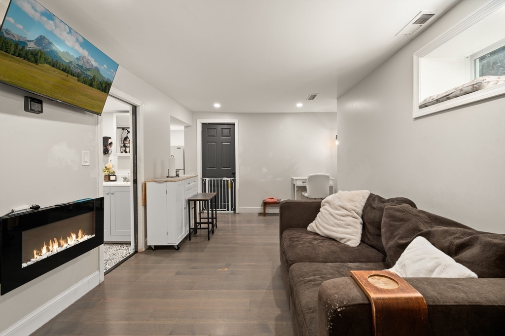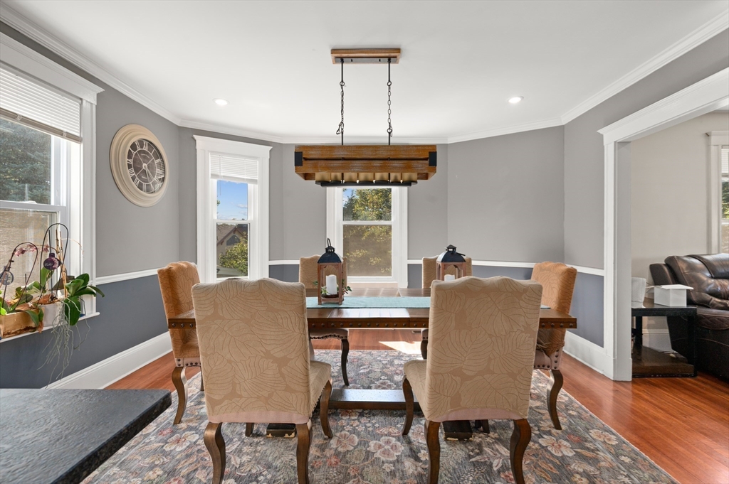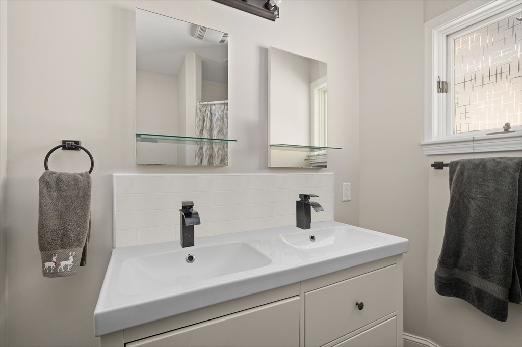 Thoughtfully renovated property in a desirable Saugus neighborhood. Historic charm meets modern living. Easy access to Routes 1 and 60. Four levels of living space including four bedrooms plus a lower-level guest or au pair space. Enter the impressive foyer into the beautifully updated kitchen with high-end cabinetry with marble countertops and island. Light-filled dining room and family room complete the spacious first floor. Primary bedroom with bathroom and walk-in closet on the second floor. Four bedrooms and 3 bathrooms. Huge loft-style bedroom on the top level. Walk-out lower level has the laundry room, and a wet bar. New Central AC and gas heating system with 4 separate zones, updated electrical. Custom newer stone walls creates an impressive terraced garden space with a 16X8 shed. Newer roof, windows and exterior doors, vinyl siding and front deck railings. Ample parking on two levels. Floor plans in pictures.