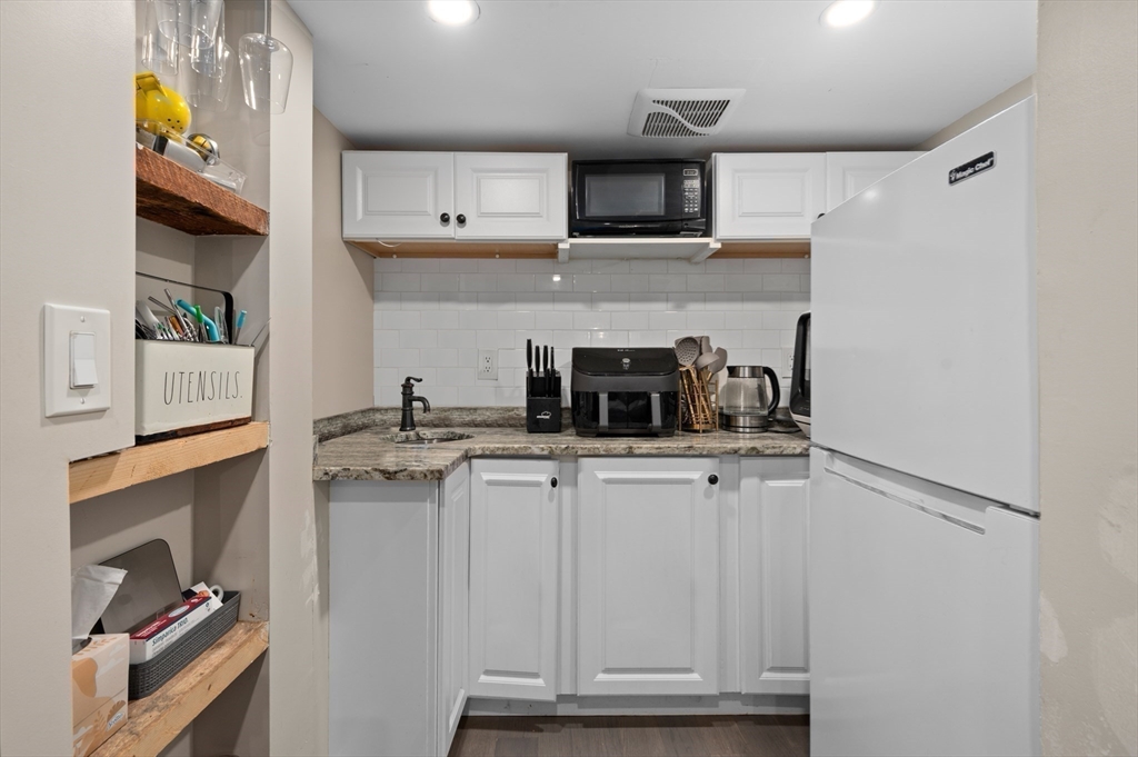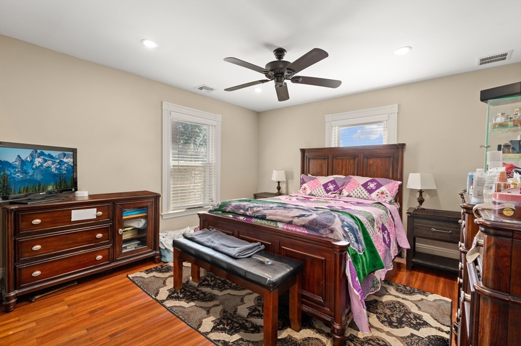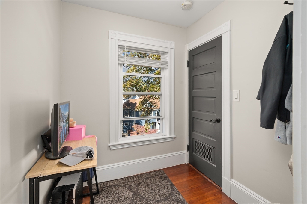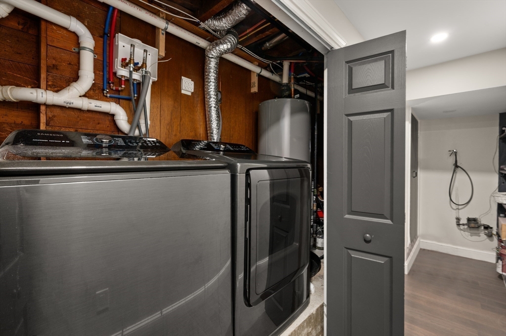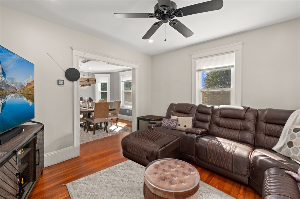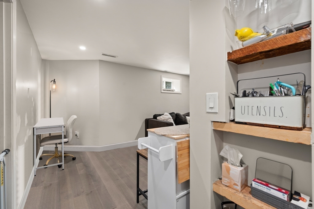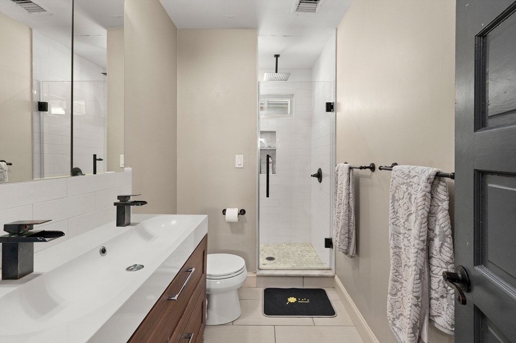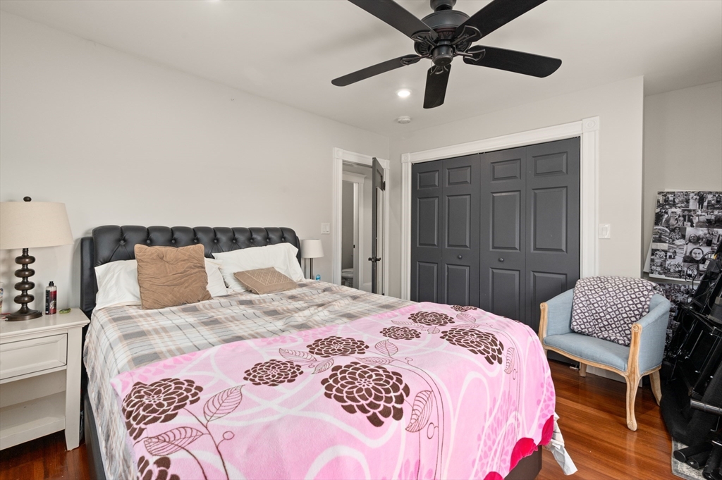 Thoughtfully renovated property in a desirable Saugus neighborhood. Historic charm meets modern living. Easy access to Routes 1 and 60. Four levels of living space including four bedrooms plus a lower-level guest or au pair space. Enter the impressive foyer into the beautifully updated kitchen with high-end cabinetry with marble countertops and island. Light-filled dining room and family room complete the spacious first floor. Primary bedroom with bathroom and walk-in closet on the second floor. Four bedrooms and 3 bathrooms. Huge loft-style bedroom on the top level. Walk-out lower level has the laundry room, and a wet bar. New Central AC and gas heating system with 4 separate zones, updated electrical. Custom newer stone walls creates an impressive terraced garden space with a 16X8 shed. Newer roof, windows and exterior doors, vinyl siding and front deck railings. Ample parking on two levels. Floor plans in pictures.