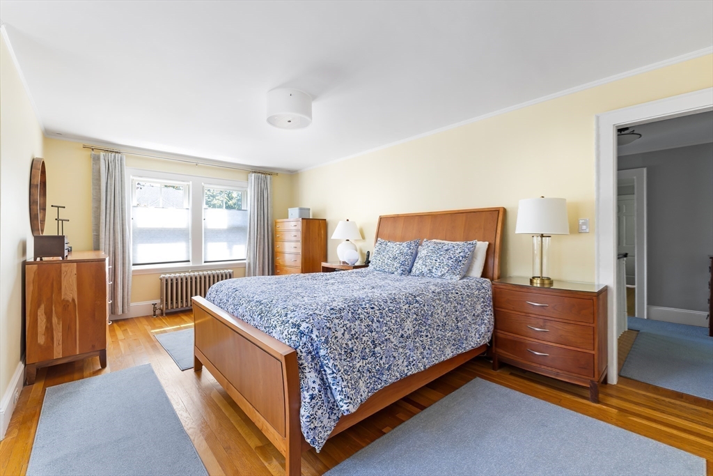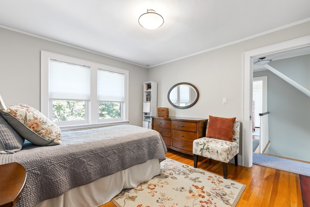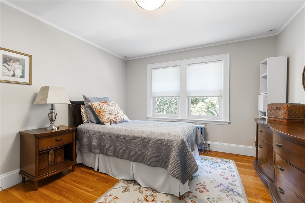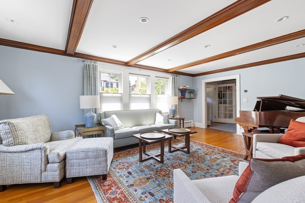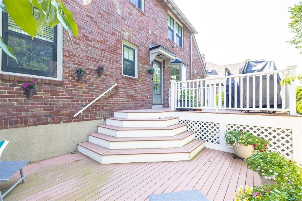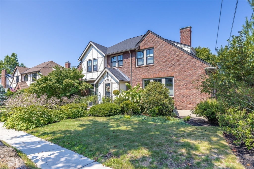 Impeccable Tudor in the premier Presidential neighborhood. This spacious 3-bedroom, 1 WFH room, 2.5 bath home contains over 2,500 square feet of custom living on a beautiful, leafy street. Three walk-in closets in the primary bedroom, and walk-ins in the other bedrooms. Chef’s kitchen, expansive backyard. Two-level deck, two-car garage. Formal living room, light-filled dining room, and family room. Bonus heated four-season porch with full windows. The gracious foyer welcomes you and showcases the home's stunning original details, including a living room fireplace, beamed ceilings and gumwood wainscoting. Large renovated eat-in kitchen with access to the two-level deck. Great outdoor space for you, and perfect for entertaining. All windows replaced with double-pane windows. Recent roof. Excellent walkability to Belmont’s three local schools and Cushing Square. Convenient access to public transportation for commutes to Cambridge and downtown Boston. Floor plans in pictures.