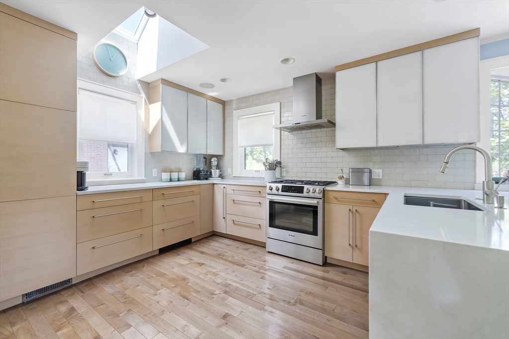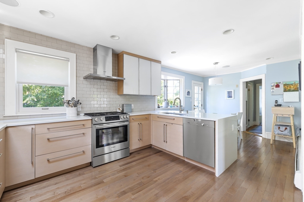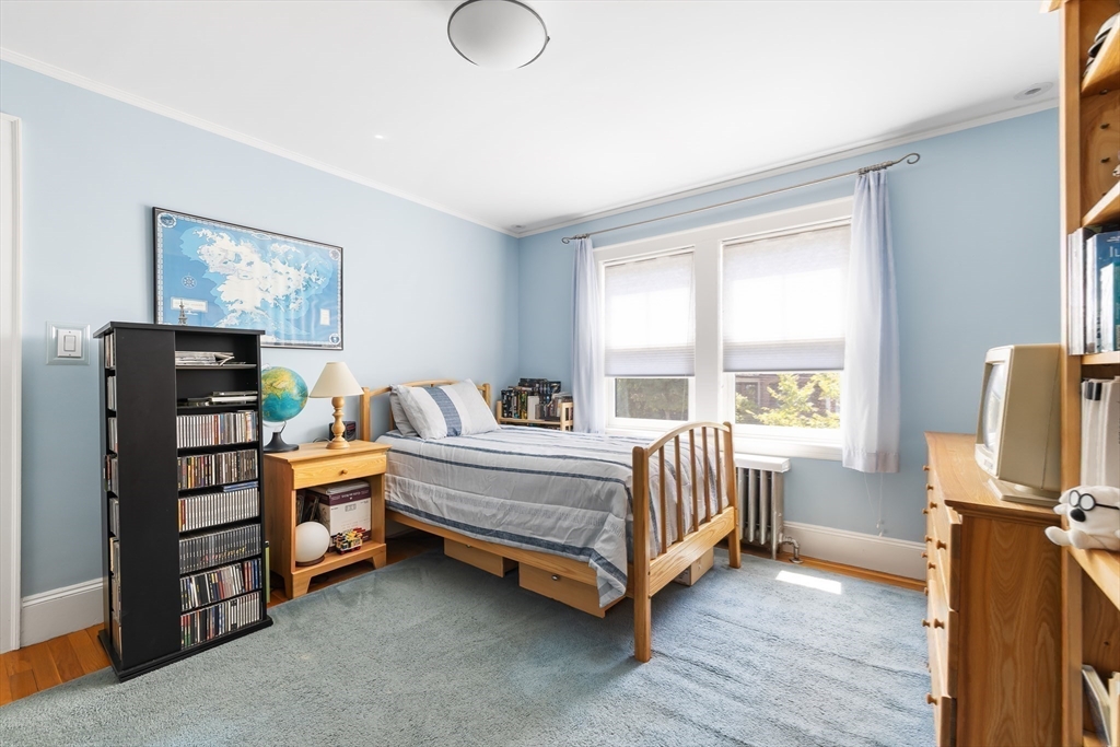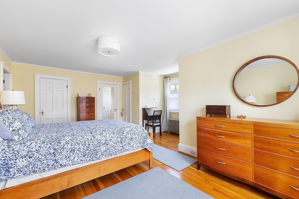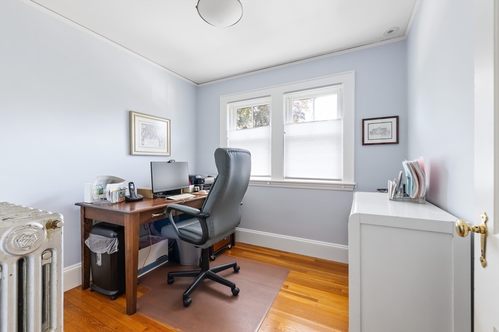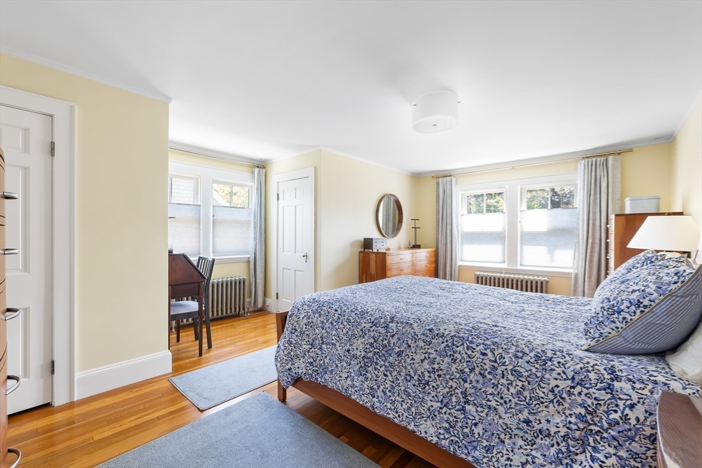 Impeccable Tudor in the premier Presidential neighborhood. This spacious 3-bedroom, 1 WFH room, 2.5 bath home contains over 2,500 square feet of custom living on a beautiful, leafy street. Three walk-in closets in the primary bedroom, and walk-ins in the other bedrooms. Chef’s kitchen, expansive backyard. Two-level deck, two-car garage. Formal living room, light-filled dining room, and family room. Bonus heated four-season porch with full windows. The gracious foyer welcomes you and showcases the home's stunning original details, including a living room fireplace, beamed ceilings and gumwood wainscoting. Large renovated eat-in kitchen with access to the two-level deck. Great outdoor space for you, and perfect for entertaining. All windows replaced with double-pane windows. Recent roof. Excellent walkability to Belmont’s three local schools and Cushing Square. Convenient access to public transportation for commutes to Cambridge and downtown Boston. Floor plans in pictures.