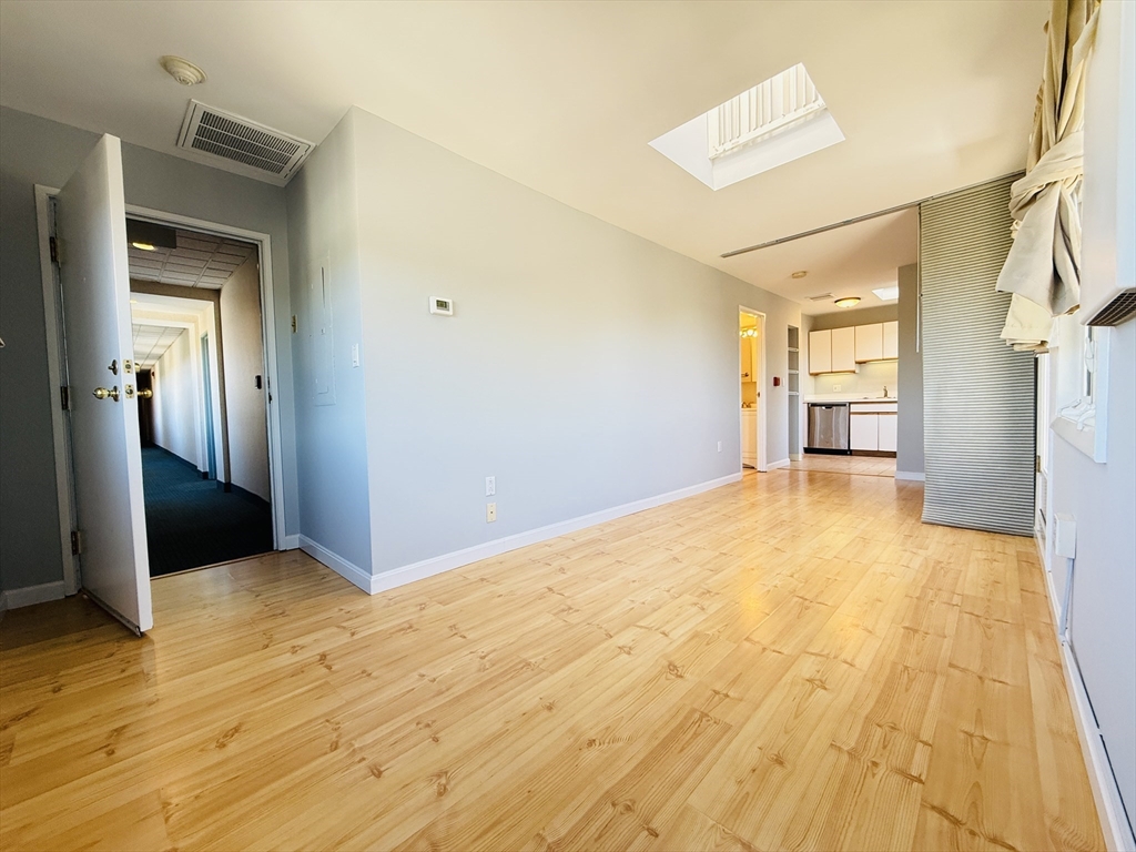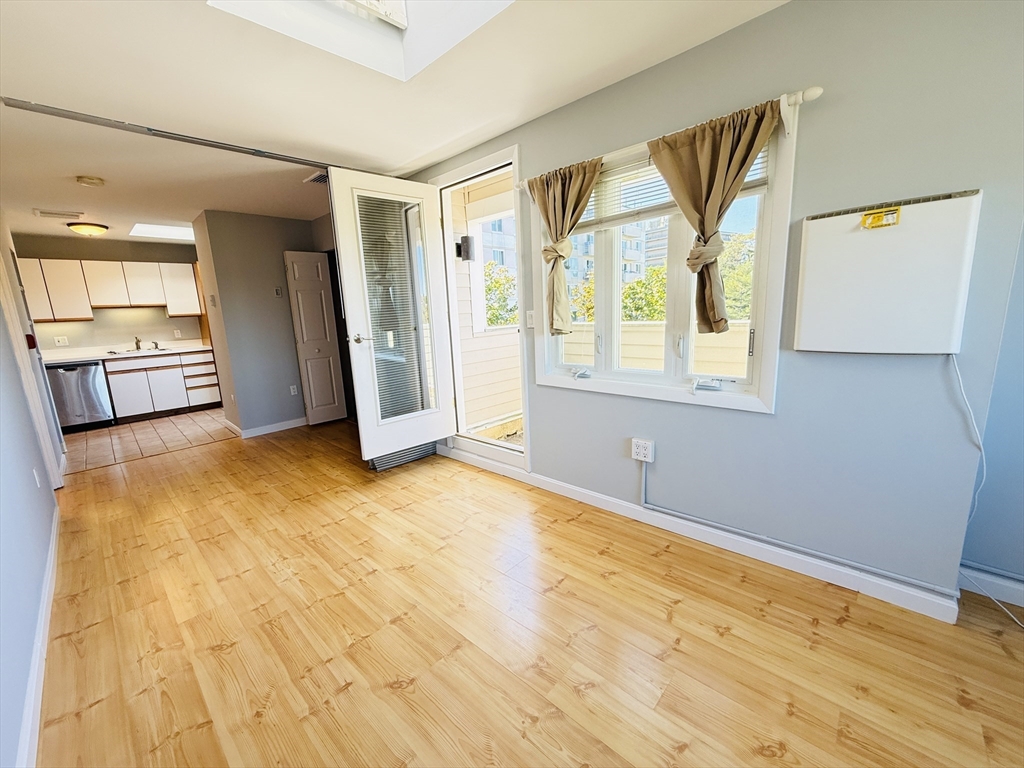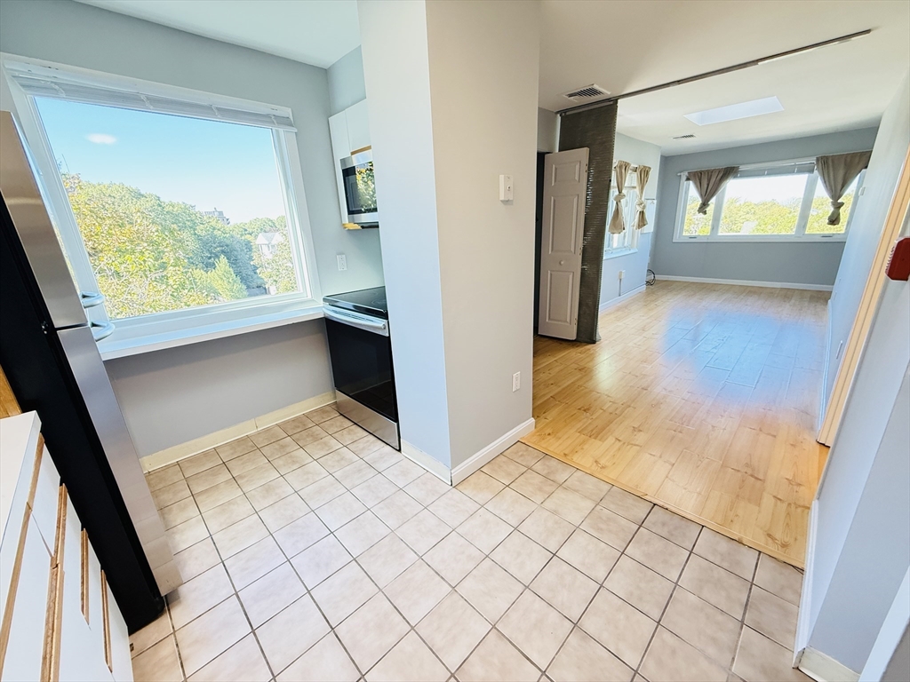 Welcome to this bright and inviting top-floor corner studio in the heart of Quincy! Perfectly situated near H Mart, Walmart, and the vibrant Quincy Center — enjoy endless dining, shopping, and entertainment options just minutes from your doorstep.This well-maintained and professionally cleaned unit offers an abundance of natural sunlight through oversized windows and charming skylights, creating a warm and open atmosphere. The thoughtfully designed layout includes stainless steel appliances, an in-unit washer and dryer conveniently located in the spacious walk-in closet, and a built-in Murphy bed for smart space-saving versatility.Step out onto your private sun-drenched balcony — the ideal spot for a morning coffee or an evening unwind. With its unbeatable location, functional design, and bright top-floor setting, this studio delivers comfort, convenience, and style in one perfect package.