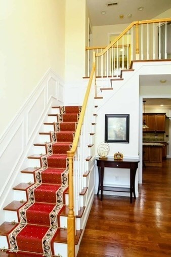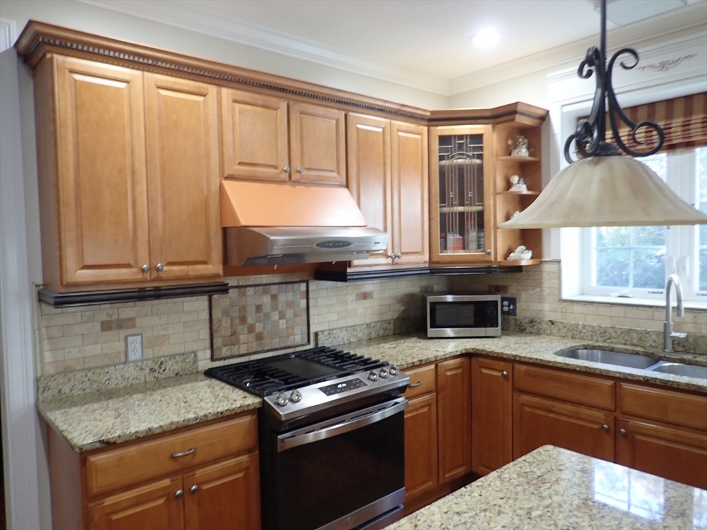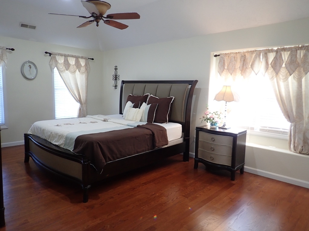 Beautiful colonial located is a quiet cul-de-sac, easy access to main road. Property has excellent natural lighting throughout. Open staircase with bright and sunny open foyer with Palladian window. Hardwood flooring on lower and upper level in every room. Family room with high Cathedral ceiling with gas fireplace. Left from front entrance is the formal living room that leads to the formal dining room with beautiful crown moldings. Right from main entrance is a spacious private room could be use as a large office, work out area, extra guest room or den. Kitchen area with wood cabinets, granite counter tops with tile back splash, newer stainless steel appliances, spacious counter island. Breakfast area has a slider door leading into the bright and sunny 3-season porch. Upper level has 4 good size bedrooms. Master bedroom with full bath has a soak bath, stand up shower, double mounted sink, private toilet area and walk-in closet. 2nd full bath in hall also has double sink, 2 car garage.
