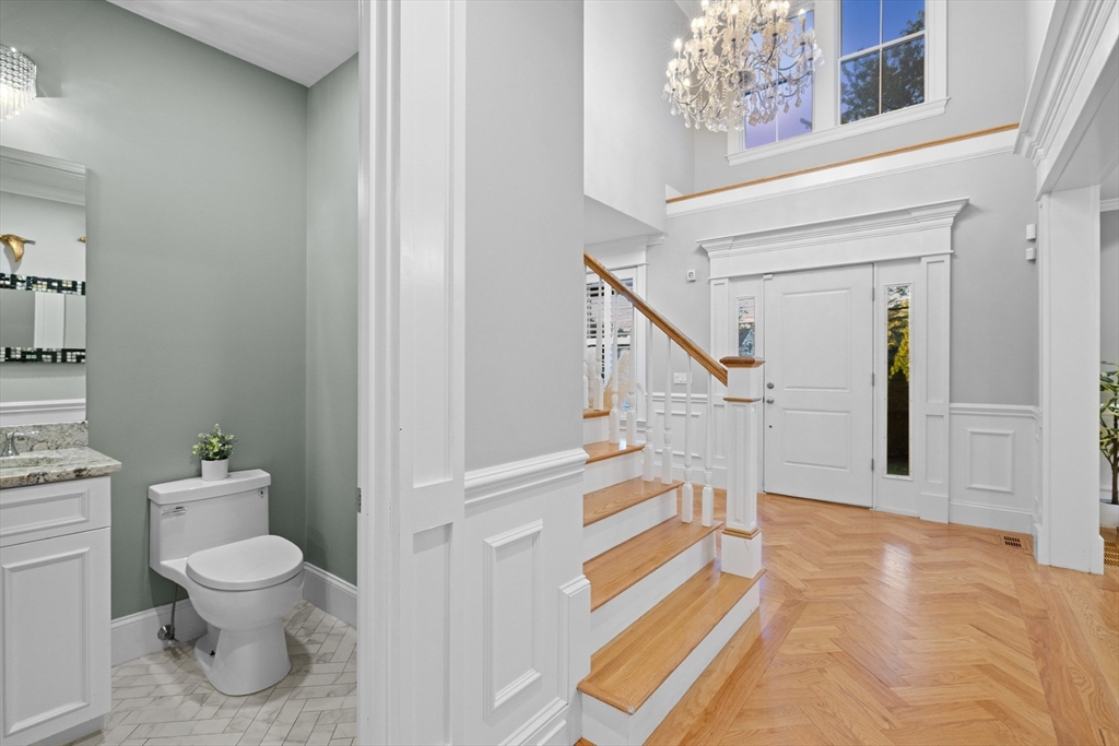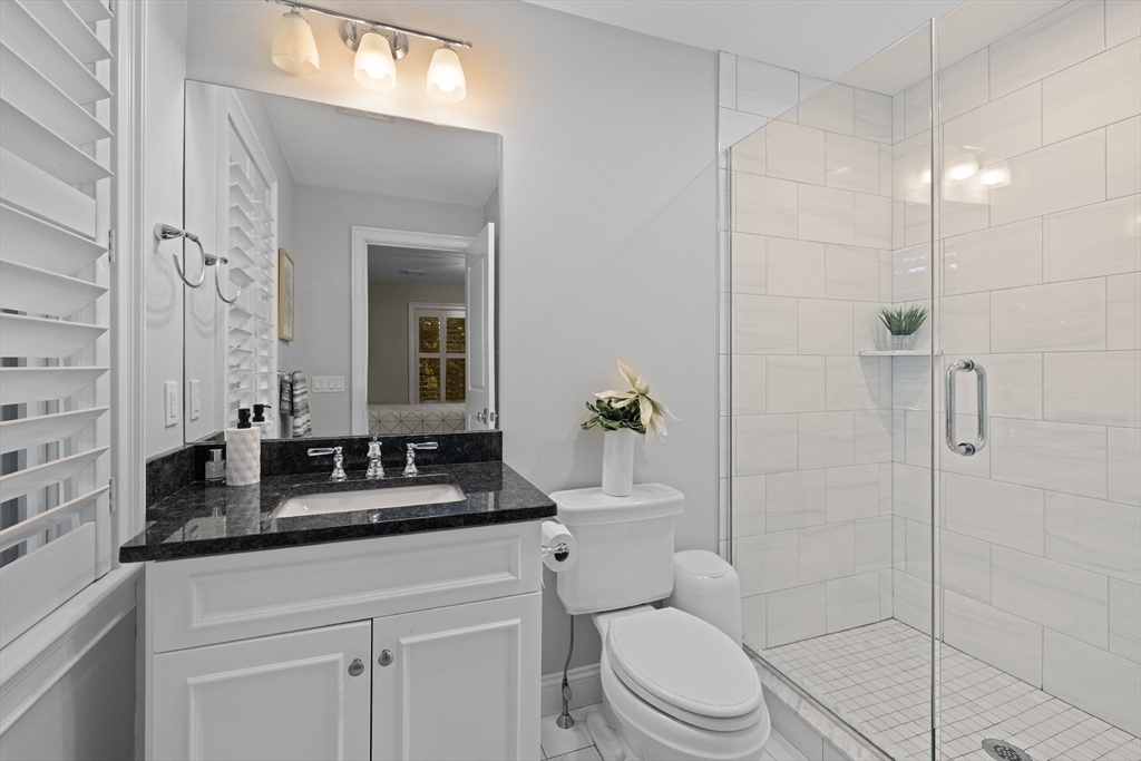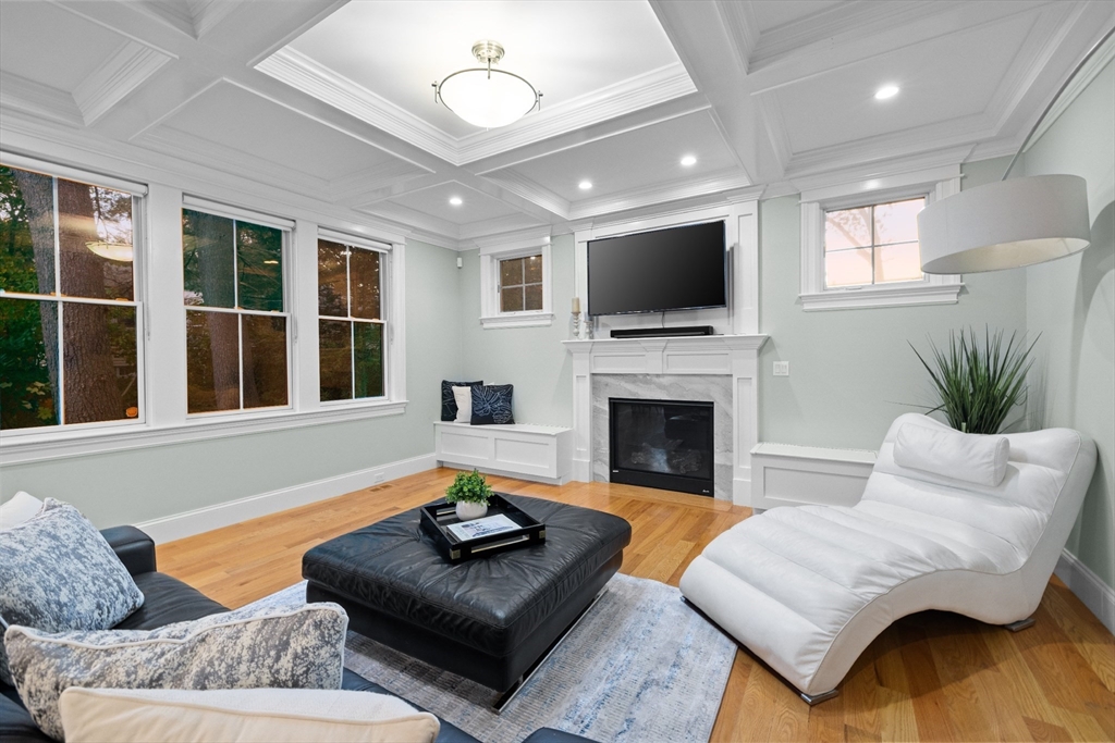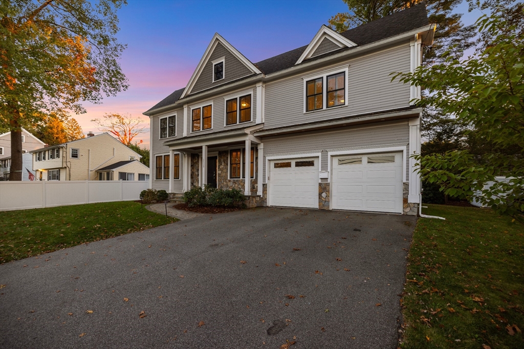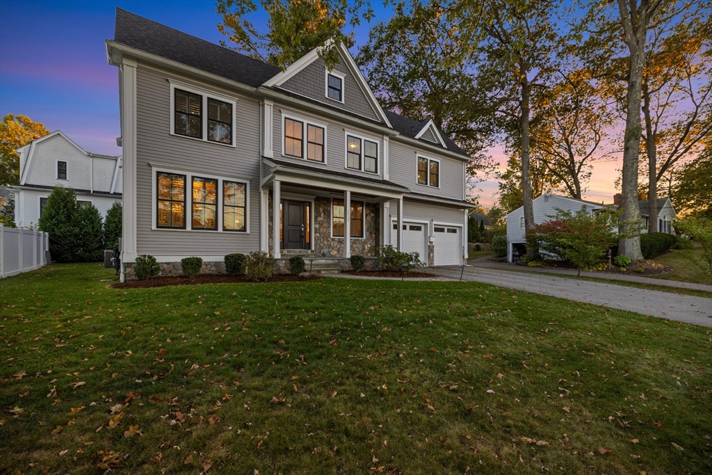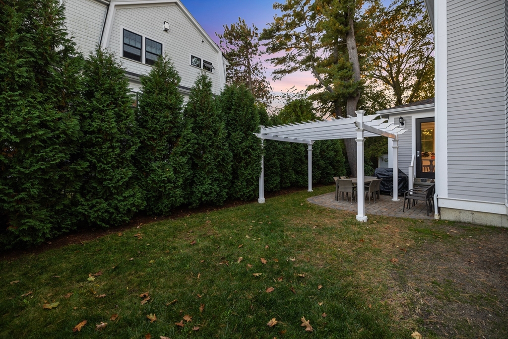 Experience luxury living in Lexington with this beautifully maintained north-facing 2017 Colonial offering 5BR, 5.5BA & exceptional craftsmanship throughout. The 1st floor showcases a mudroom, elegant living & dining rooms with wainscoting, and custom white cabinetry kitchen with island, walk-in pantry & Thermador appliances, opening to a sun-filled gas fireplaced family room with coffered ceilings. Crown molding adds timeless character throughout. Step outside to a fenced yard with patio & pergola—add string lights for the perfect entertaining ambiance. Evergreen trees create privacy, and the home’s thoughtful setback ensures a peaceful interior retreat. The 2nd floor hosts 4BRs with ensuite baths, including a primary suite with a spa-like soaking tub, radiant heated floors, glass shower & double vanity. The finished lower level offers a playroom, 5th BR & full bath. Solar panels, ample storage & proximity to Rte.128 & Lexington Center—move in & celebrate the holidays in style!