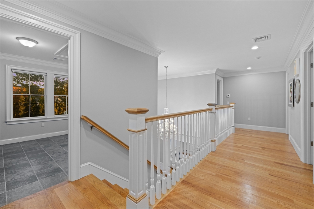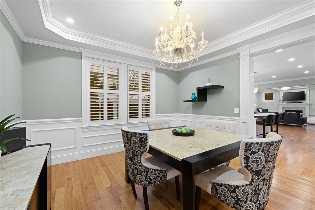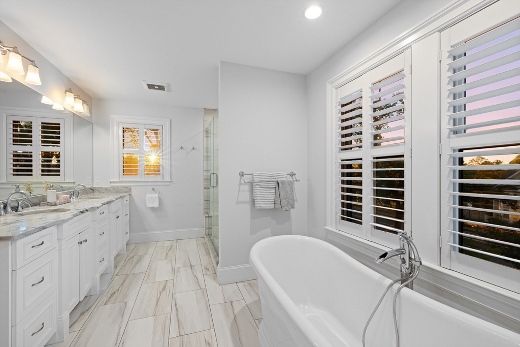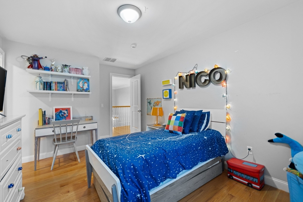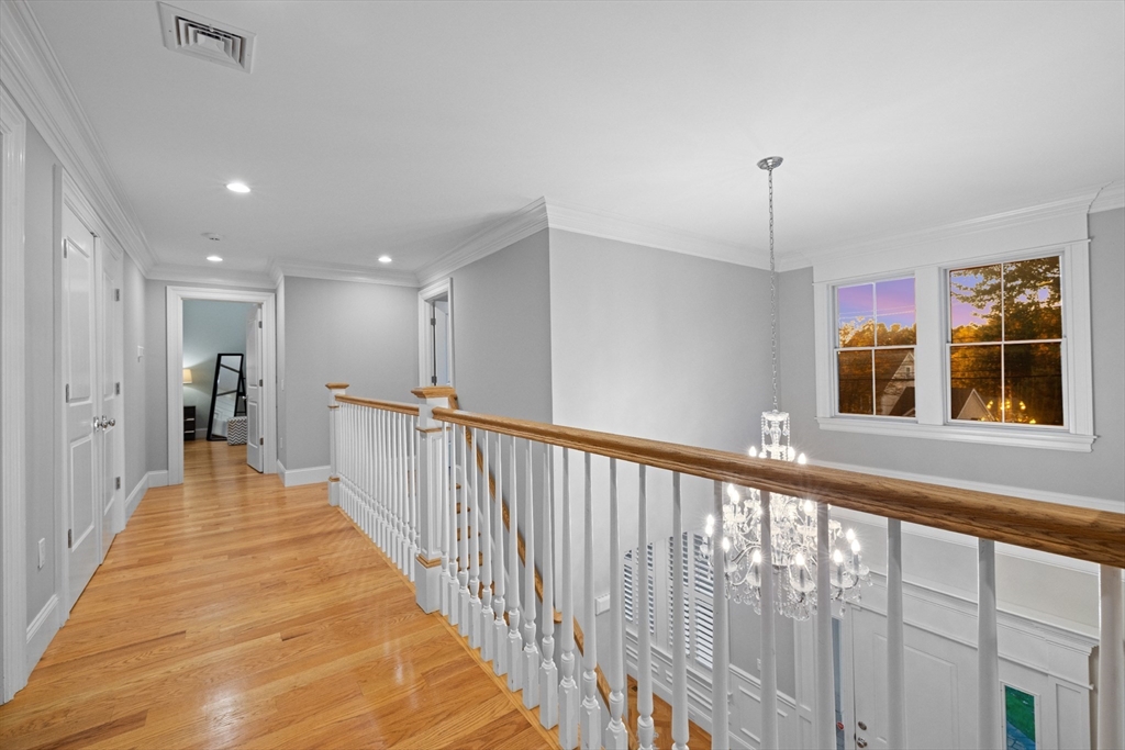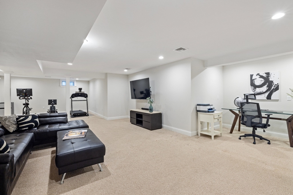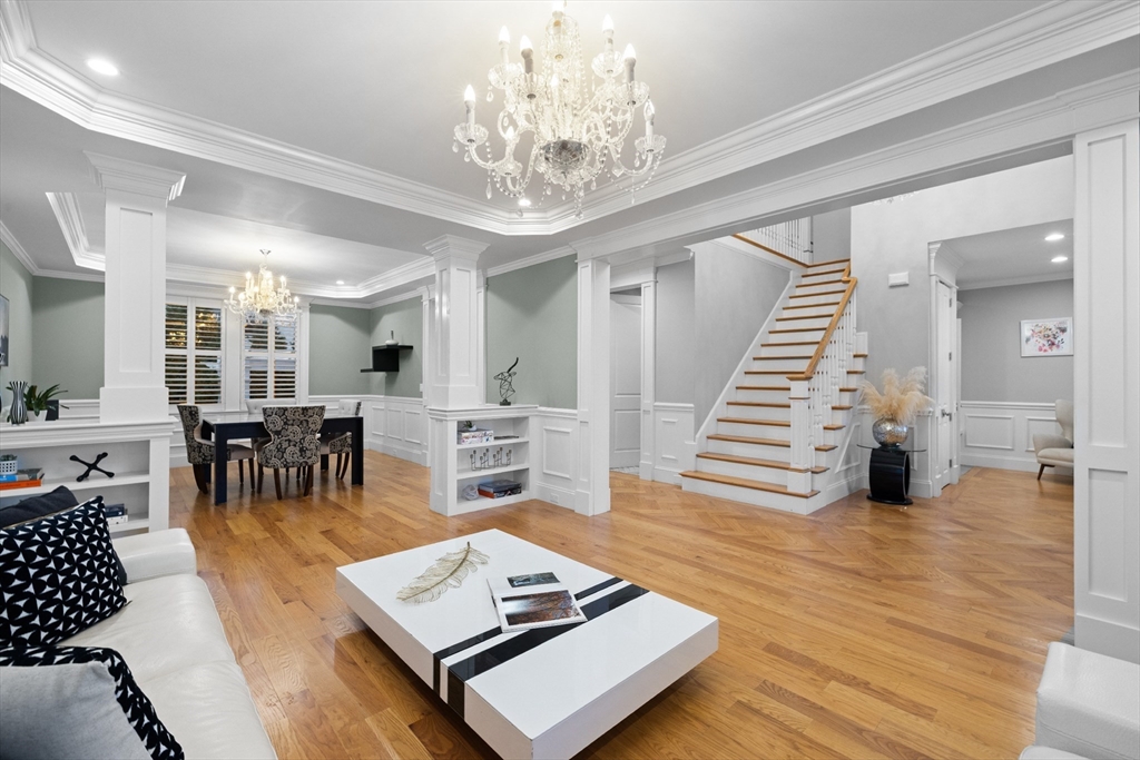 Experience luxury living in Lexington with this beautifully maintained north-facing 2017 Colonial offering 5BR, 5.5BA & exceptional craftsmanship throughout. The 1st floor showcases a mudroom, elegant living & dining rooms with wainscoting, and custom white cabinetry kitchen with island, walk-in pantry & Thermador appliances, opening to a sun-filled gas fireplaced family room with coffered ceilings. Crown molding adds timeless character throughout. Step outside to a fenced yard with patio & pergola—add string lights for the perfect entertaining ambiance. Evergreen trees create privacy, and the home’s thoughtful setback ensures a peaceful interior retreat. The 2nd floor hosts 4BRs with ensuite baths, including a primary suite with a spa-like soaking tub, radiant heated floors, glass shower & double vanity. The finished lower level offers a playroom, 5th BR & full bath. Solar panels, ample storage & proximity to Rte.128 & Lexington Center—move in & celebrate the holidays in style!