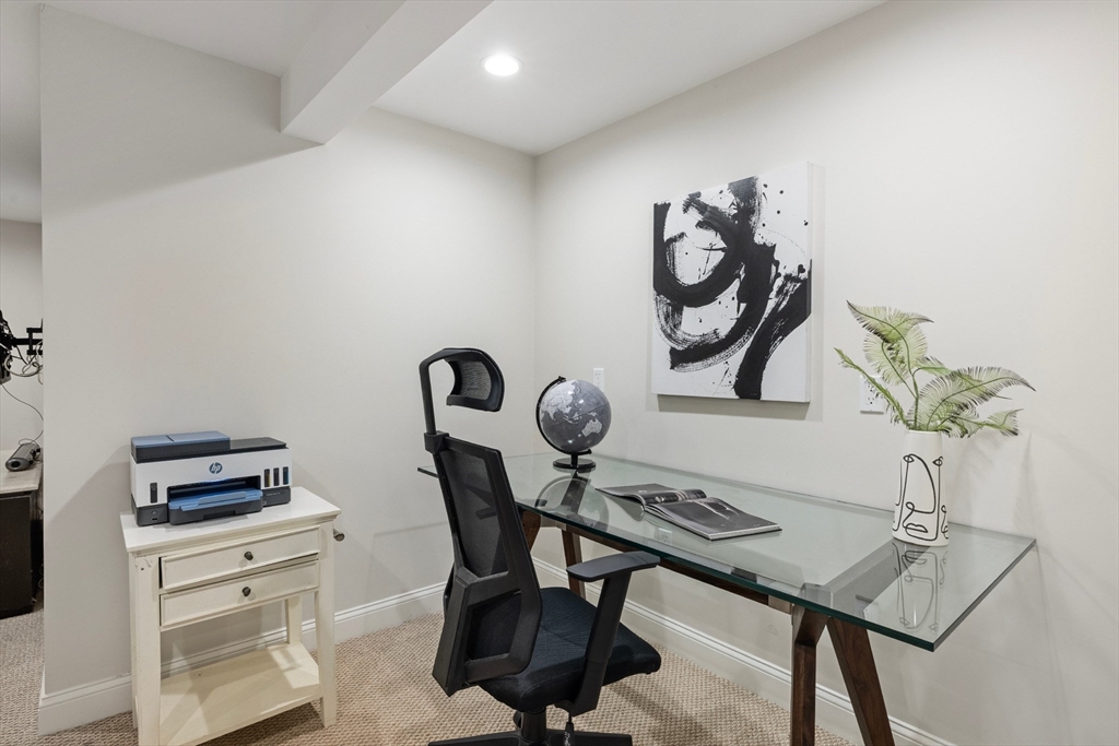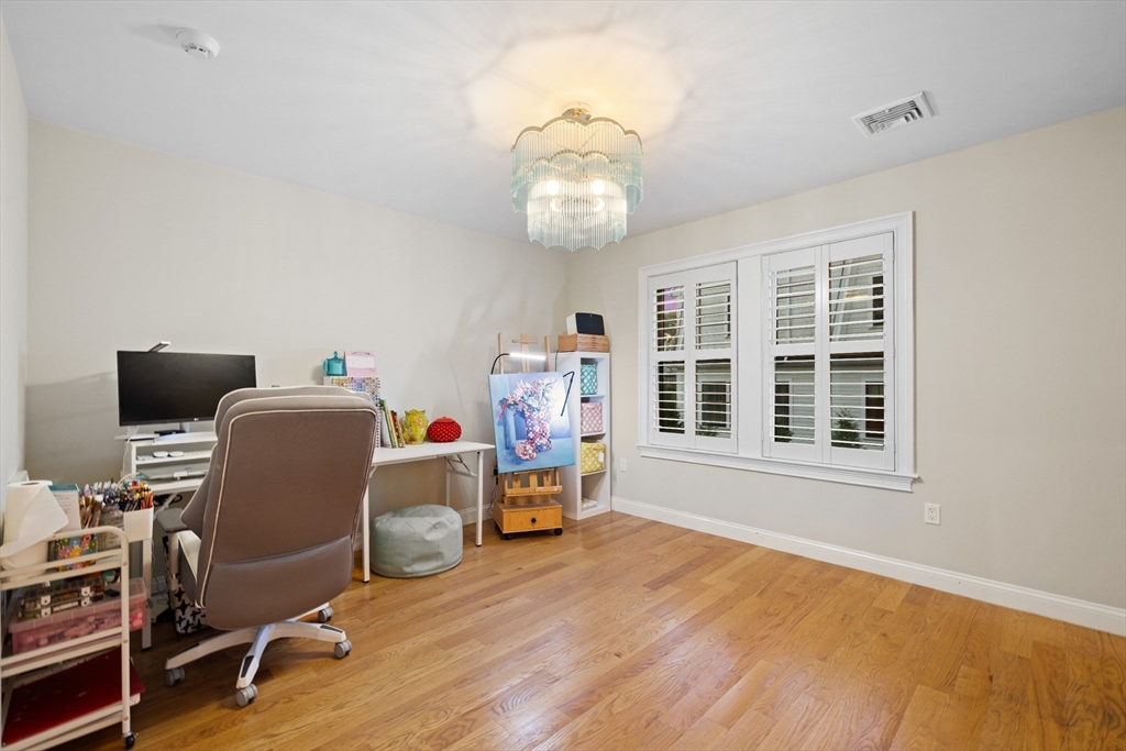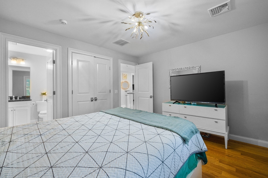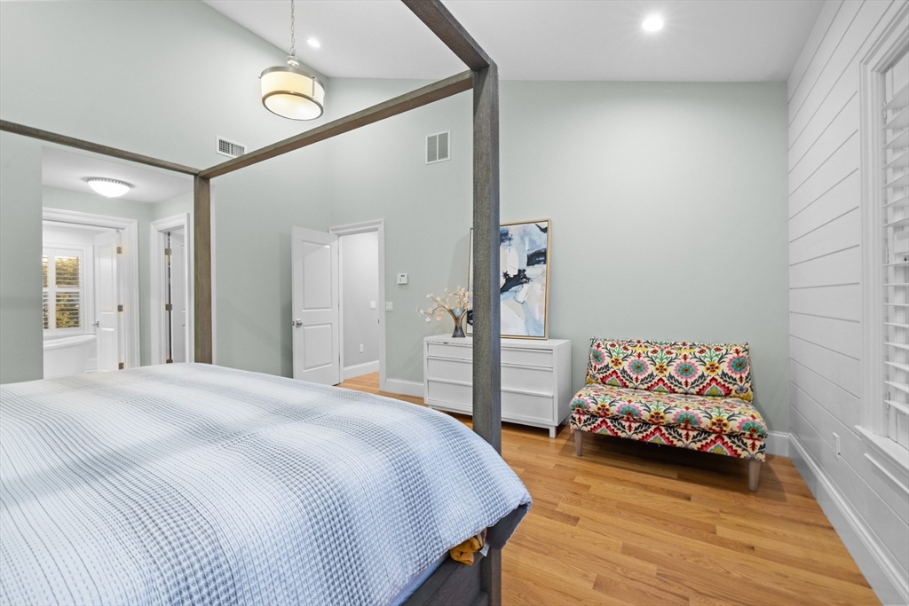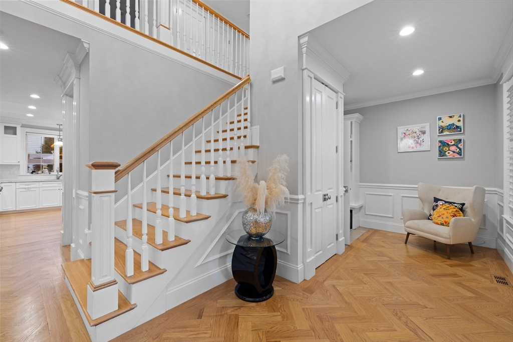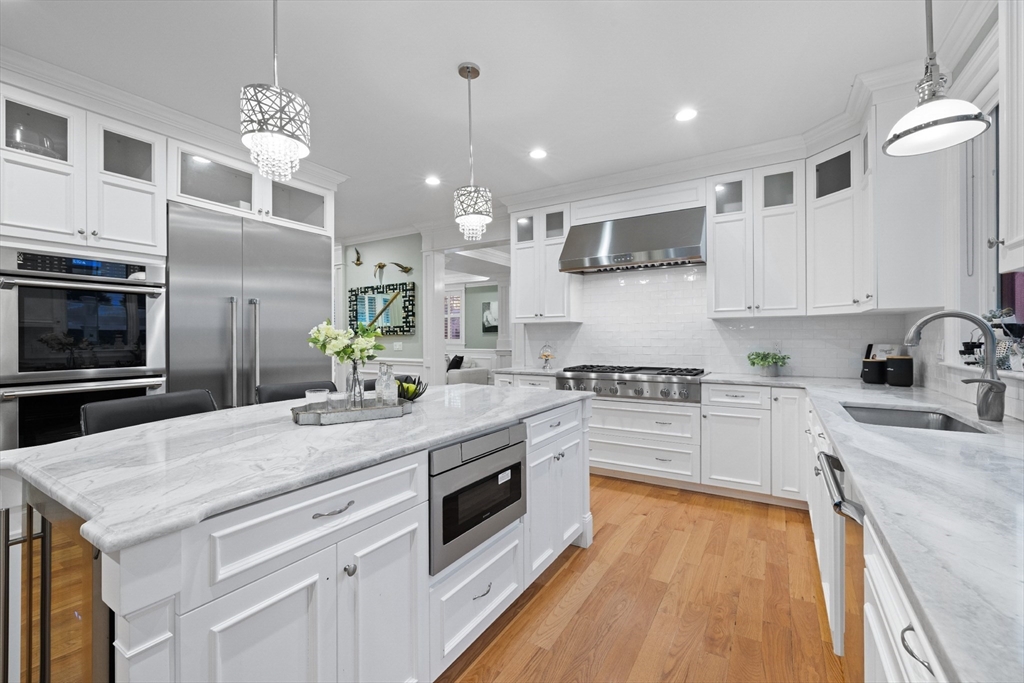 Experience luxury living in Lexington with this beautifully maintained north-facing 2017 Colonial offering 5BR, 5.5BA & exceptional craftsmanship throughout. The 1st floor showcases a mudroom, elegant living & dining rooms with wainscoting, and custom white cabinetry kitchen with island, walk-in pantry & Thermador appliances, opening to a sun-filled gas fireplaced family room with coffered ceilings. Crown molding adds timeless character throughout. Step outside to a fenced yard with patio & pergola—add string lights for the perfect entertaining ambiance. Evergreen trees create privacy, and the home’s thoughtful setback ensures a peaceful interior retreat. The 2nd floor hosts 4BRs with ensuite baths, including a primary suite with a spa-like soaking tub, radiant heated floors, glass shower & double vanity. The finished lower level offers a playroom, 5th BR & full bath. Solar panels, ample storage & proximity to Rte.128 & Lexington Center—move in & celebrate the holidays in style!