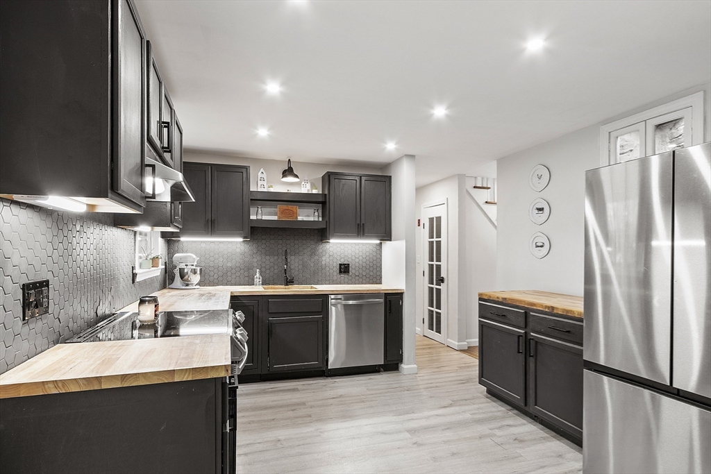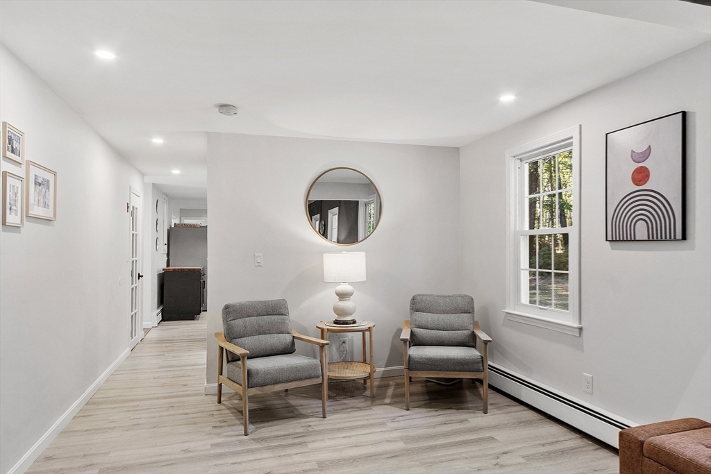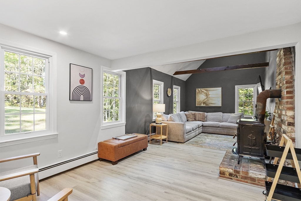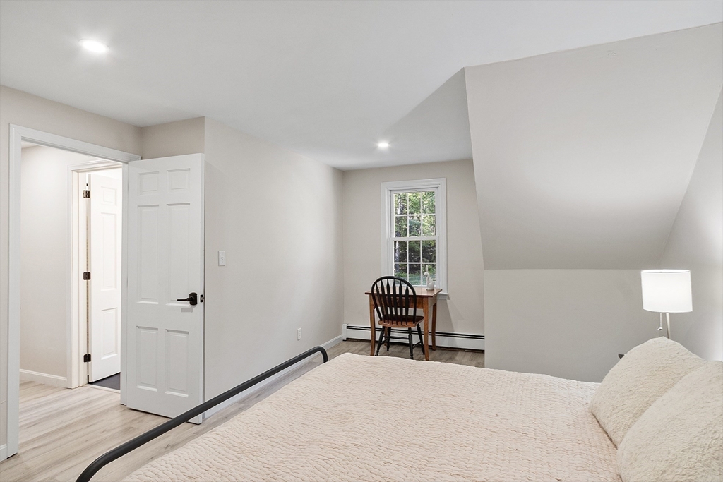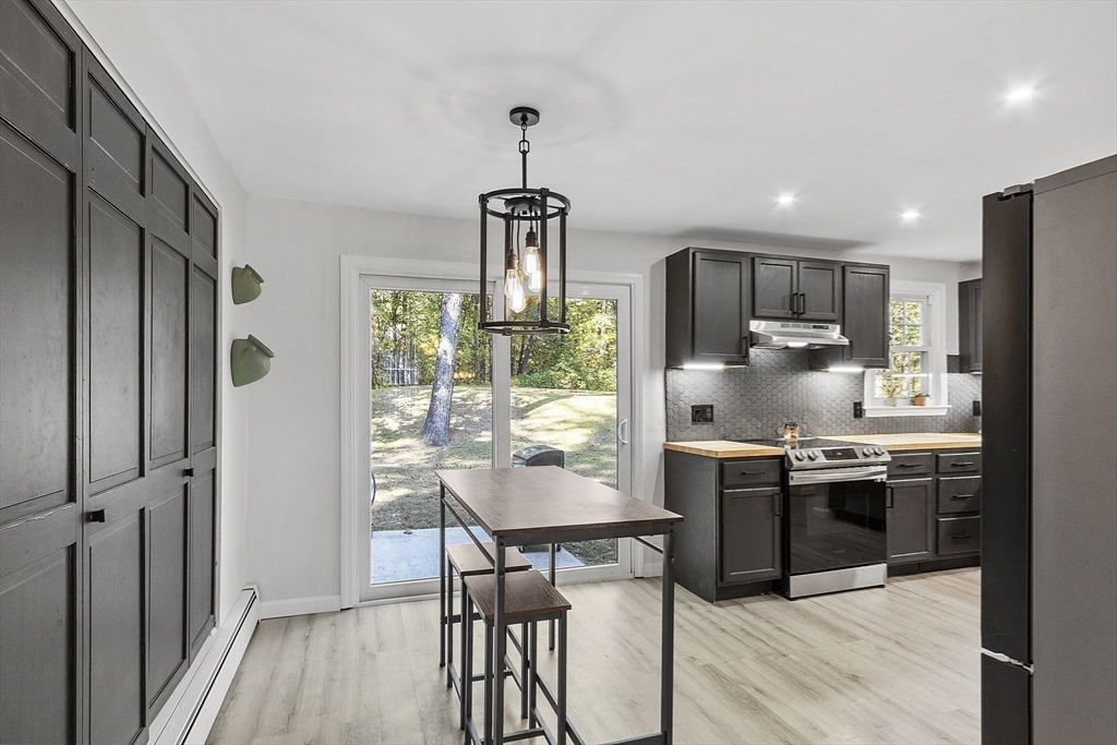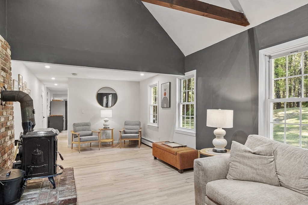 OH's Sat&Sun 12-3. This charming 3 Bd 2 Ba home offers a mix of comfort & natural beauty, situated on a 1+ acre wooded lot in a cul-de-sac neighborhood. Private setting yet close to shopping, schools, Rte 2 & Fitchburg State. At over 2000 sqft, this spacious cape feels open & bright & has many updates. The kitchen features butcher block counters, tile backsplash, SS appliances & abundant cabinets. Enjoy the casual breakfast area or entertaining in the dining room w/ hardwood floors & beautiful fireplace. The large living room addition feat. cathedral ceilings, rustic beams, skylight, wood stove & office space. The main level also boasts a roomy Bd & full Ba, perfect for one-level living. 2nd level has 2 sizable Bd's w/ lots of closets & upgraded Full Ba. Partially finished walkout basement adds more space for entertainment, the built-in bar makes it great for sunday games. Bonus features: Vinyl siding,Buderus heater,vinyl windows,mudroom off 2-car garage,new paved driveway w/xtra space