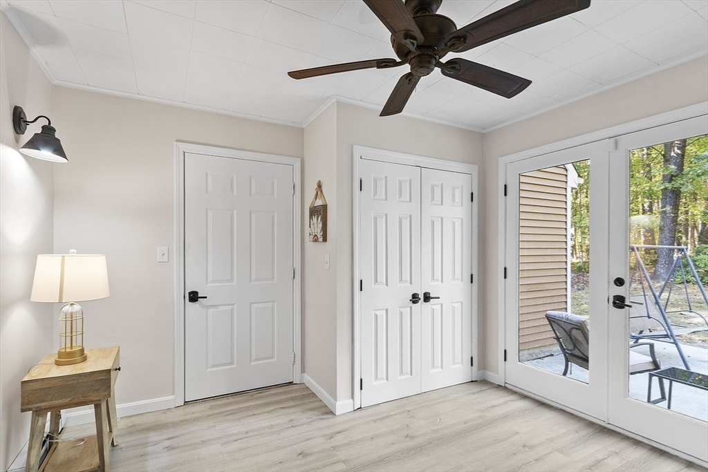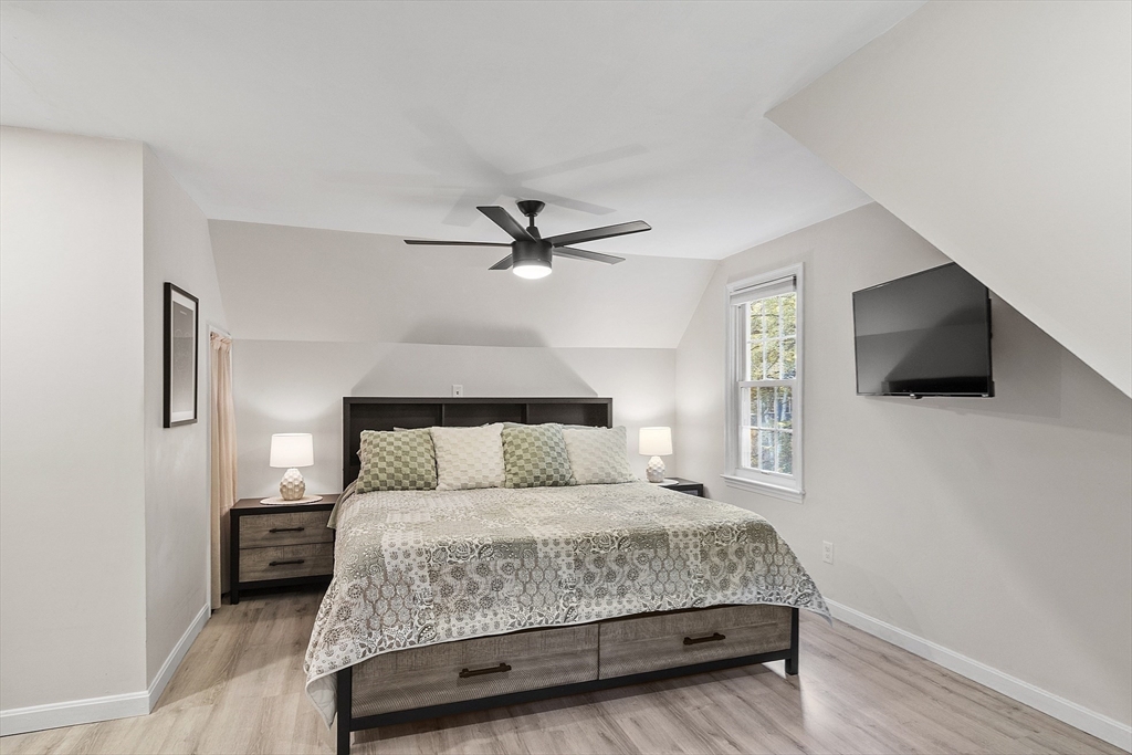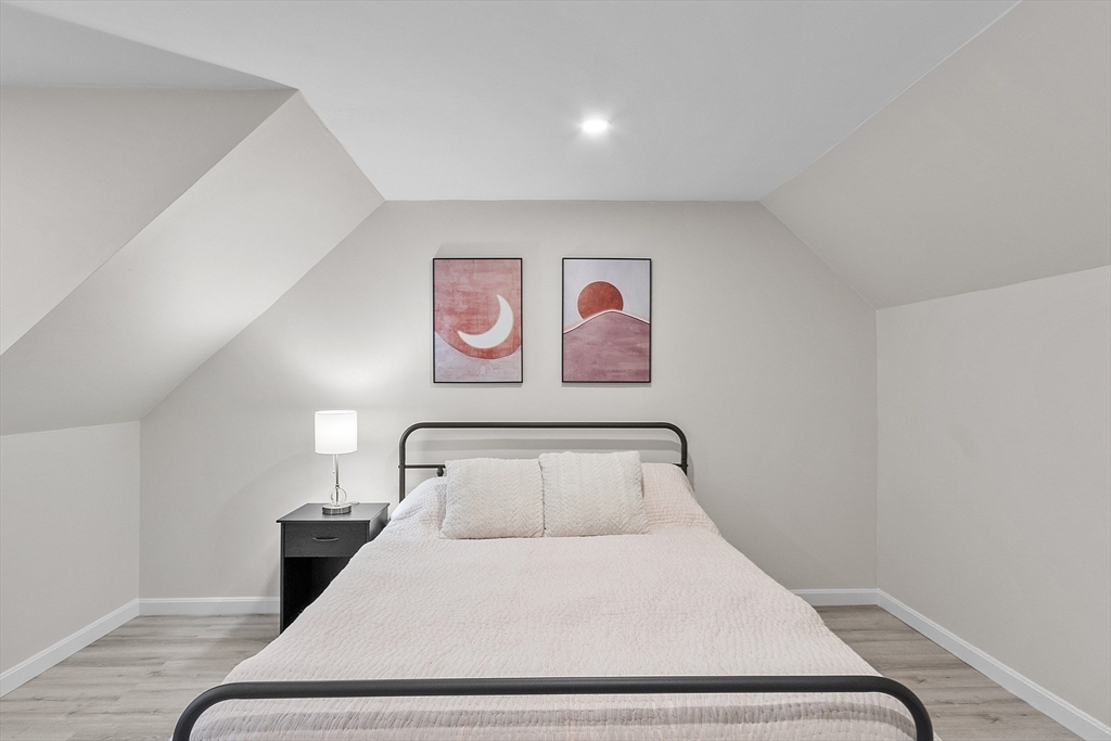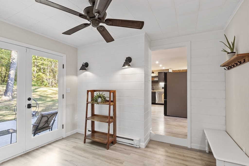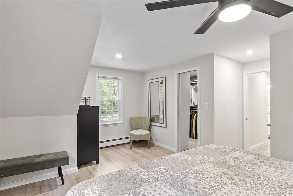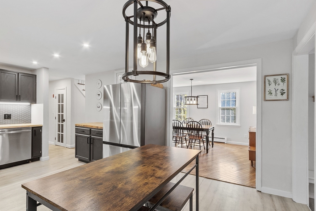 OH's Sat&Sun 12-3. This charming 3 Bd 2 Ba home offers a mix of comfort & natural beauty, situated on a 1+ acre wooded lot in a cul-de-sac neighborhood. Private setting yet close to shopping, schools, Rte 2 & Fitchburg State. At over 2000 sqft, this spacious cape feels open & bright & has many updates. The kitchen features butcher block counters, tile backsplash, SS appliances & abundant cabinets. Enjoy the casual breakfast area or entertaining in the dining room w/ hardwood floors & beautiful fireplace. The large living room addition feat. cathedral ceilings, rustic beams, skylight, wood stove & office space. The main level also boasts a roomy Bd & full Ba, perfect for one-level living. 2nd level has 2 sizable Bd's w/ lots of closets & upgraded Full Ba. Partially finished walkout basement adds more space for entertainment, the built-in bar makes it great for sunday games. Bonus features: Vinyl siding,Buderus heater,vinyl windows,mudroom off 2-car garage,new paved driveway w/xtra space