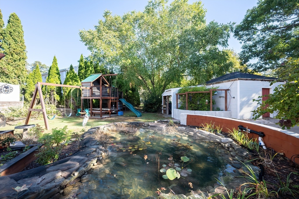Welcome to this delightful 3 bed, 1-bath bungalow perfectly situated in a prime central location. Enjoy morning coffee on the front porch and unwind in the serene screened-in room overlooking your private koi pond and spacious corner lot. Entertain in a true outdoor oasis or just enjoy the privacy. Ample storage for workshop and garden enthusiasts. Inside, freshly painted and open living areas create an easy living atmosphere. This home offers the perfect blend of charm and convenience with vintage details, bright living spaces, and plenty of outdoor room to relax or entertain. Don’t miss this rare gem—you won't believe the tranquility of this property right in the heart of Attleboro. It's a must see!