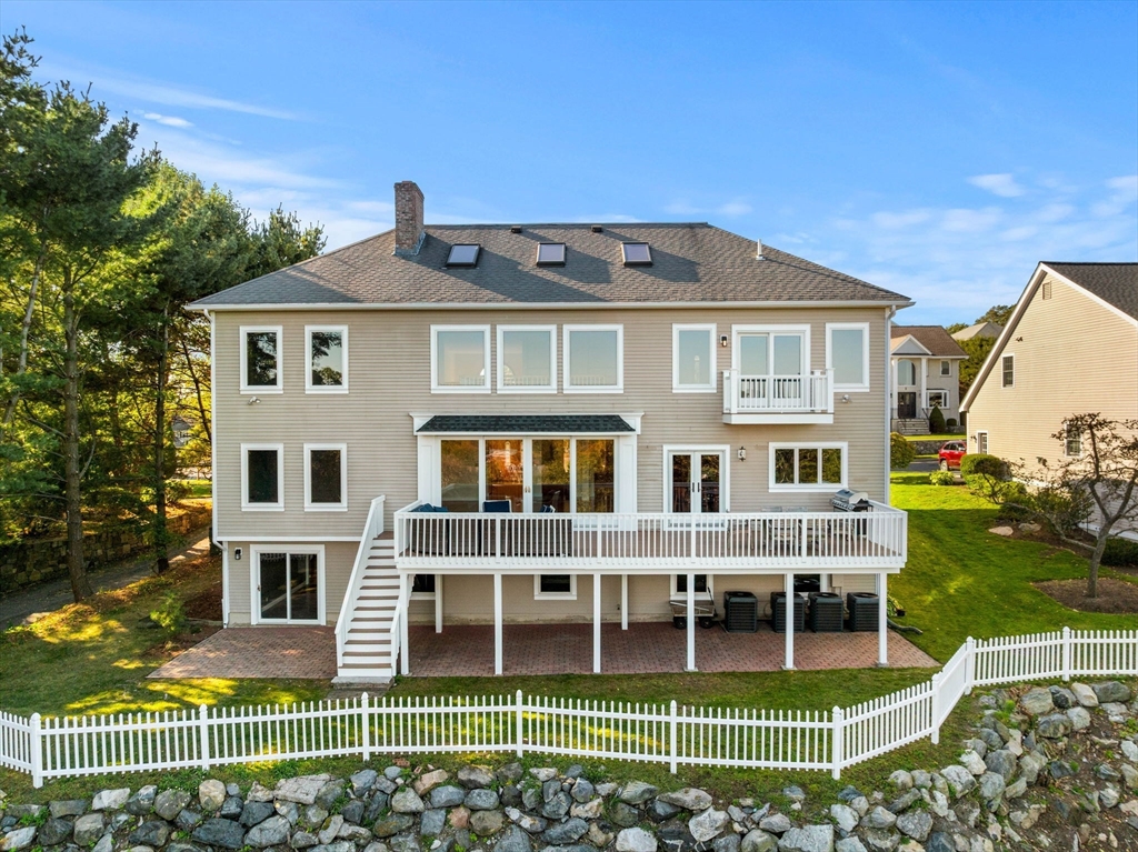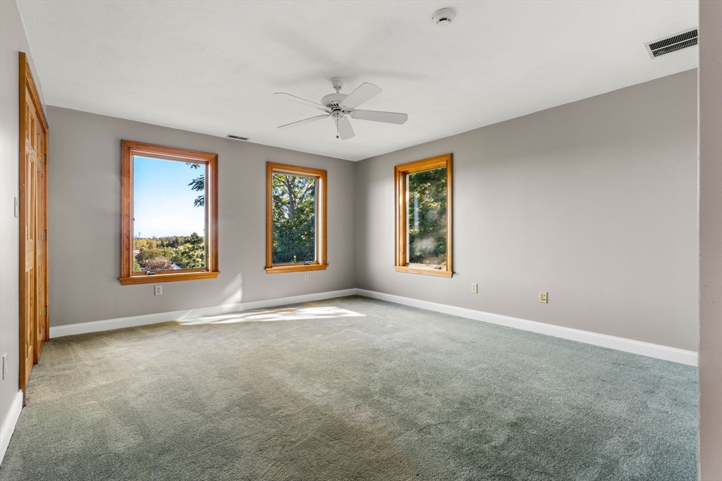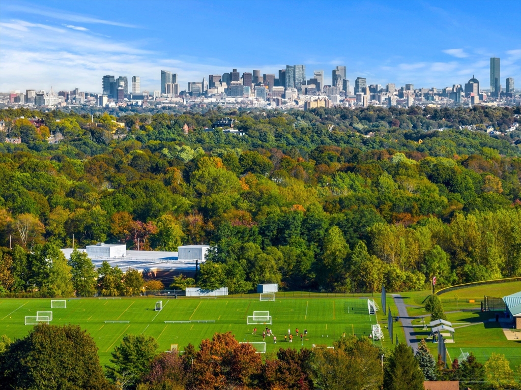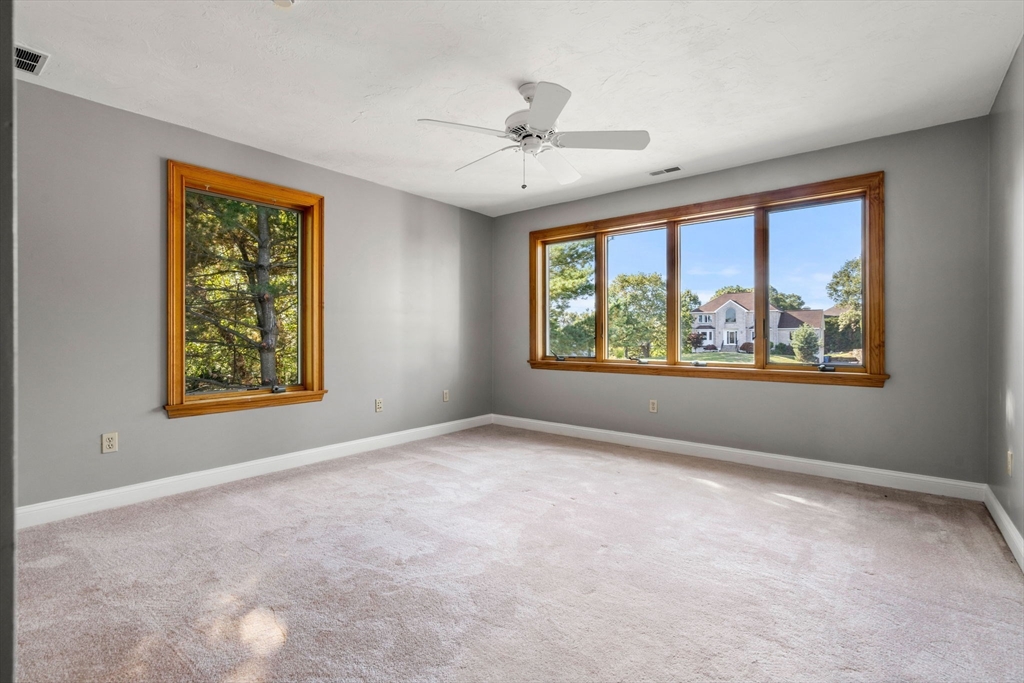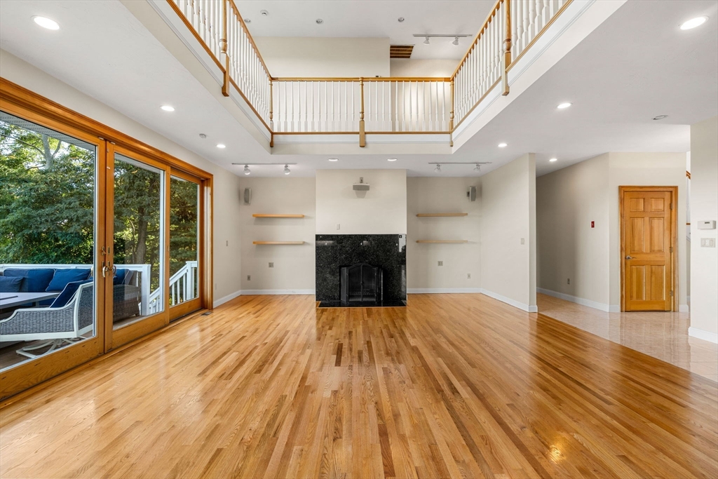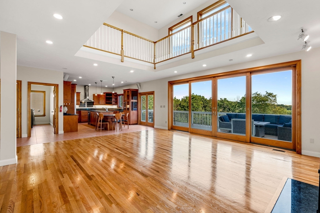Rare offering in Prestigious Pigeon Hill Estates captures breathtaking direct skyline views of Boston! Perfectly set on a cul-de-sac, this custom-built Colonial features soaring ceilings, brick front, spacious rear deck ideal for entertaining, walk-out lower level, 2-car garage & amazing views from every rear-facing room. Enter the dramatic 2-story foyer leading to the grand family room w/ floor-to-ceiling windows and traditional fireplace. The open layout flows seamlessly into the kitchen, with French doors opening to a large deck overlooking Boston. The 1st floor also offers a living room, dining room, office/br, full bath, laundry & garage access. Upstairs, the primary suite features French doors to a private balcony, spa-like marble bath, dual vanities, whirlpool tub, and two walk-in closets. Two additional bedrooms share a full bath, while a 4th bedroom includes an en-suite. Finished walk-out lower level offers endless options & a walk-up 3rd level allows expansion.