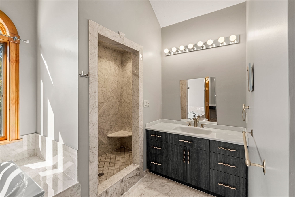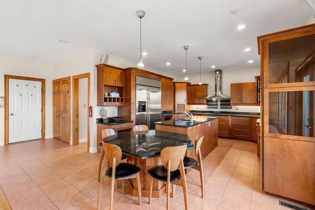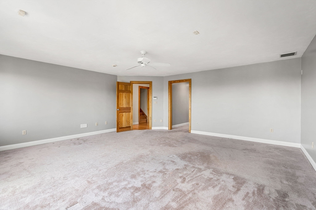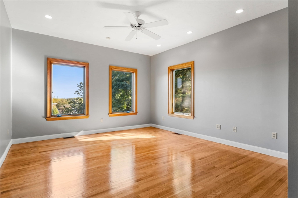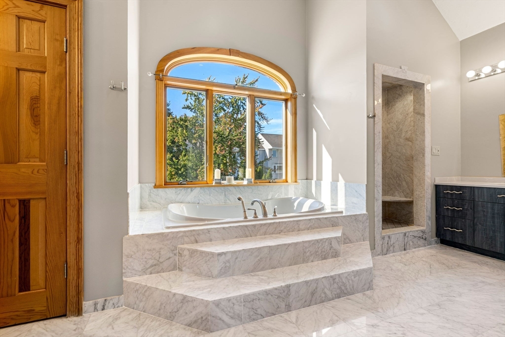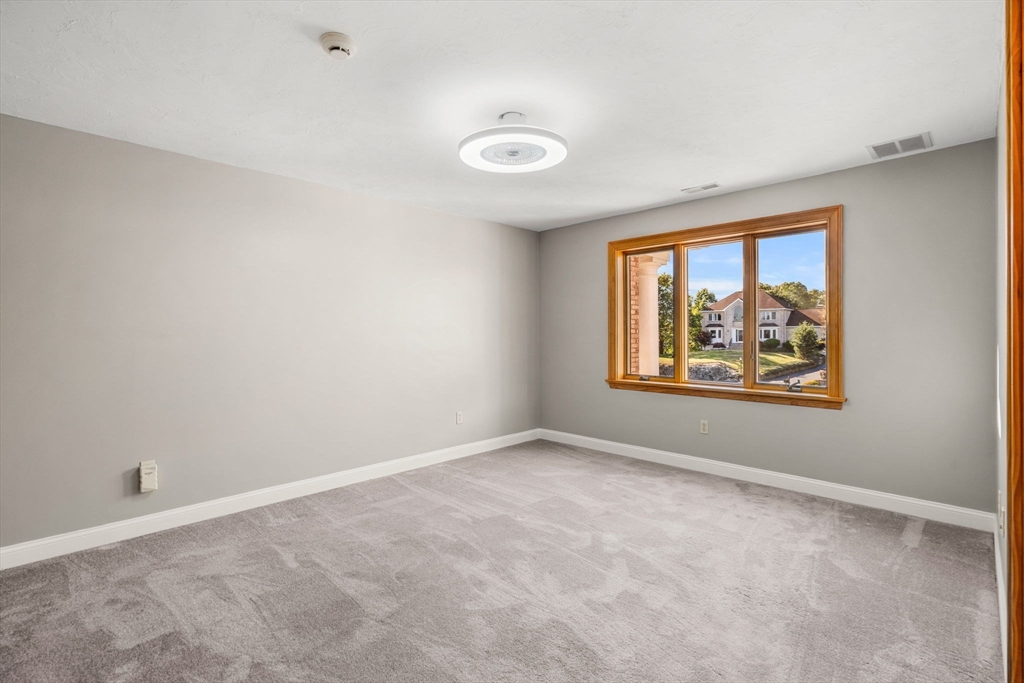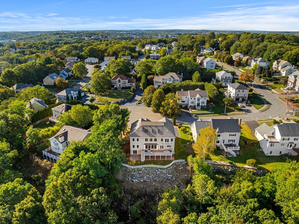 Rare offering in Prestigious Pigeon Hill Estates captures breathtaking direct skyline views of Boston! Perfectly set on a cul-de-sac, this custom-built Colonial features soaring ceilings, brick front, spacious rear deck ideal for entertaining, walk-out lower level, 2-car garage & amazing views from every rear-facing room. Enter the dramatic 2-story foyer leading to the grand family room w/ floor-to-ceiling windows and traditional fireplace. The open layout flows seamlessly into the kitchen, with French doors opening to a large deck overlooking Boston. The 1st floor also offers a living room, dining room, office/br, full bath, laundry & garage access. Upstairs, the primary suite features French doors to a private balcony, spa-like marble bath, dual vanities, whirlpool tub, and two walk-in closets. Two additional bedrooms share a full bath, while a 4th bedroom includes an en-suite. Finished walk-out lower level offers endless options & a walk-up 3rd level allows expansion.